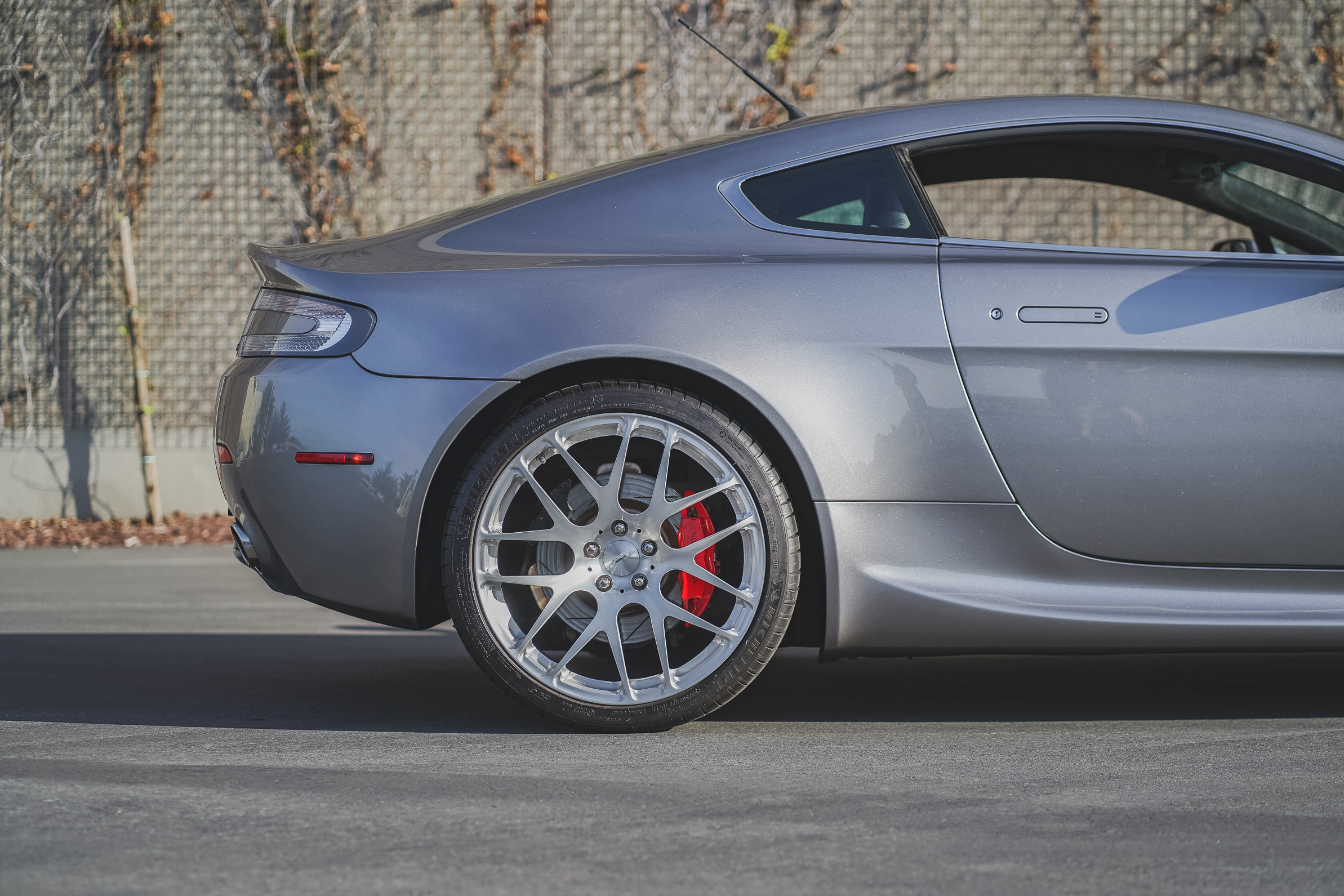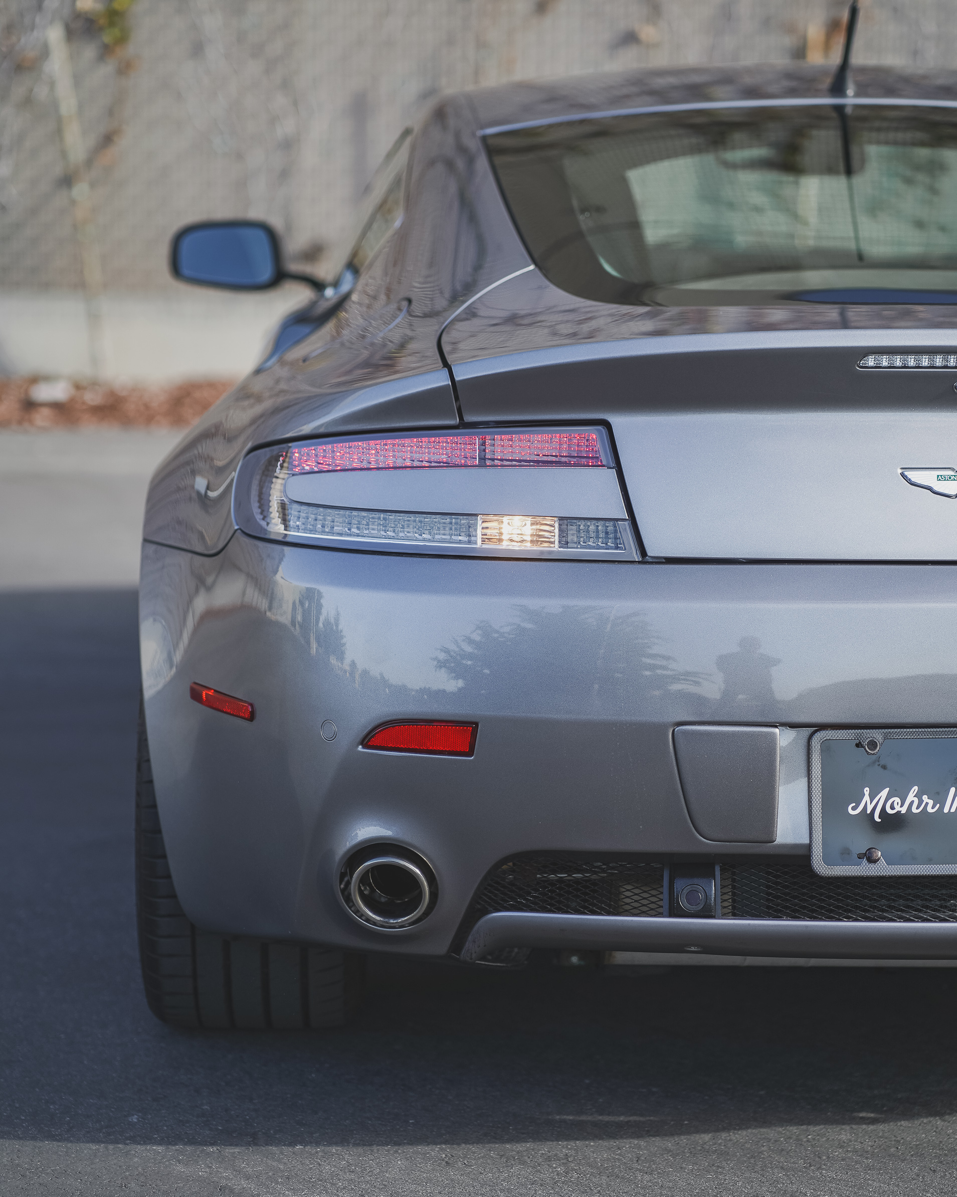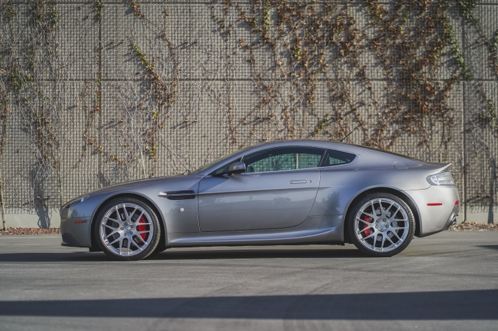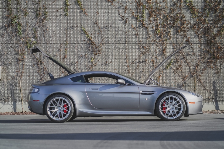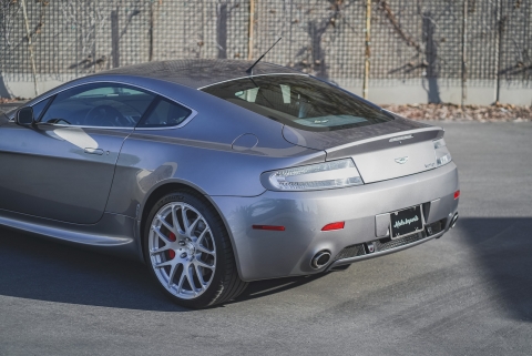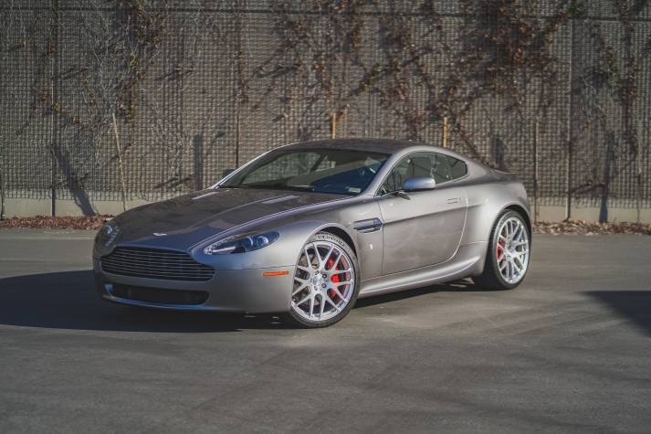This 2007 Aston Martin V8 Vantage coupe is finished in Tungston Silver over black and is powered by a 4.3-liter V8 paired with a six-speed Sportshift automated manual transmission. Features include aftermarket 20? wheels, N430-style rocker extensions, clear taillight lenses, red brake calipers, rear parking sensors, dual exhaust outlets, power-adjustable seats, a pop-up navigation screen, and automatic climate control. The car was delivered new to Palm Beach Motorcars in Florida and was acquired by the current owner in 2014. This V8 Vantage has 24k miles and is now offered on dealer consignment with factory literature and a clean California title in the owner’s name.