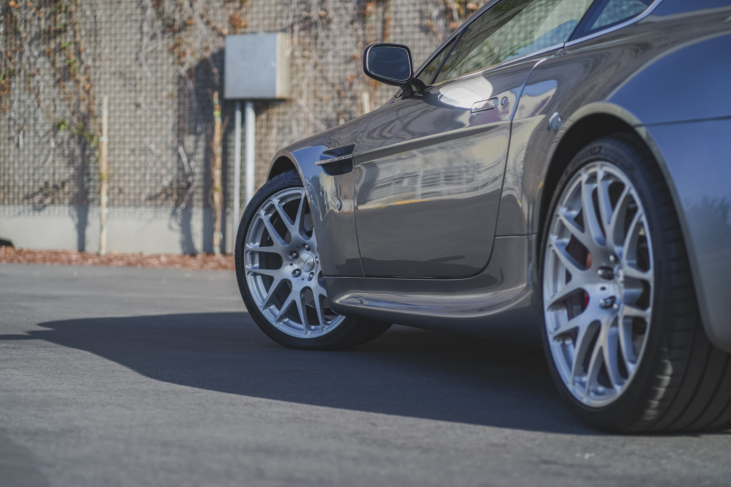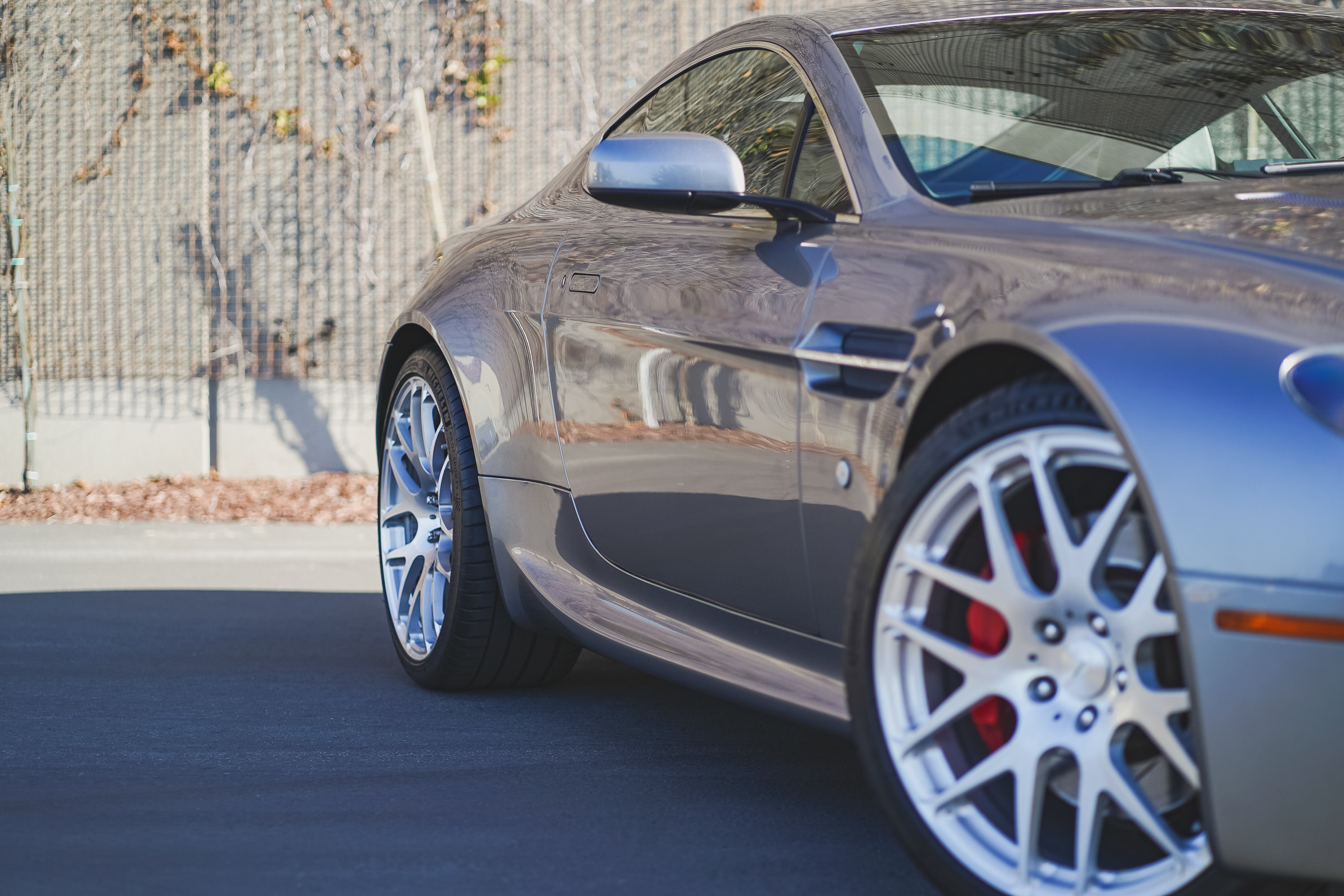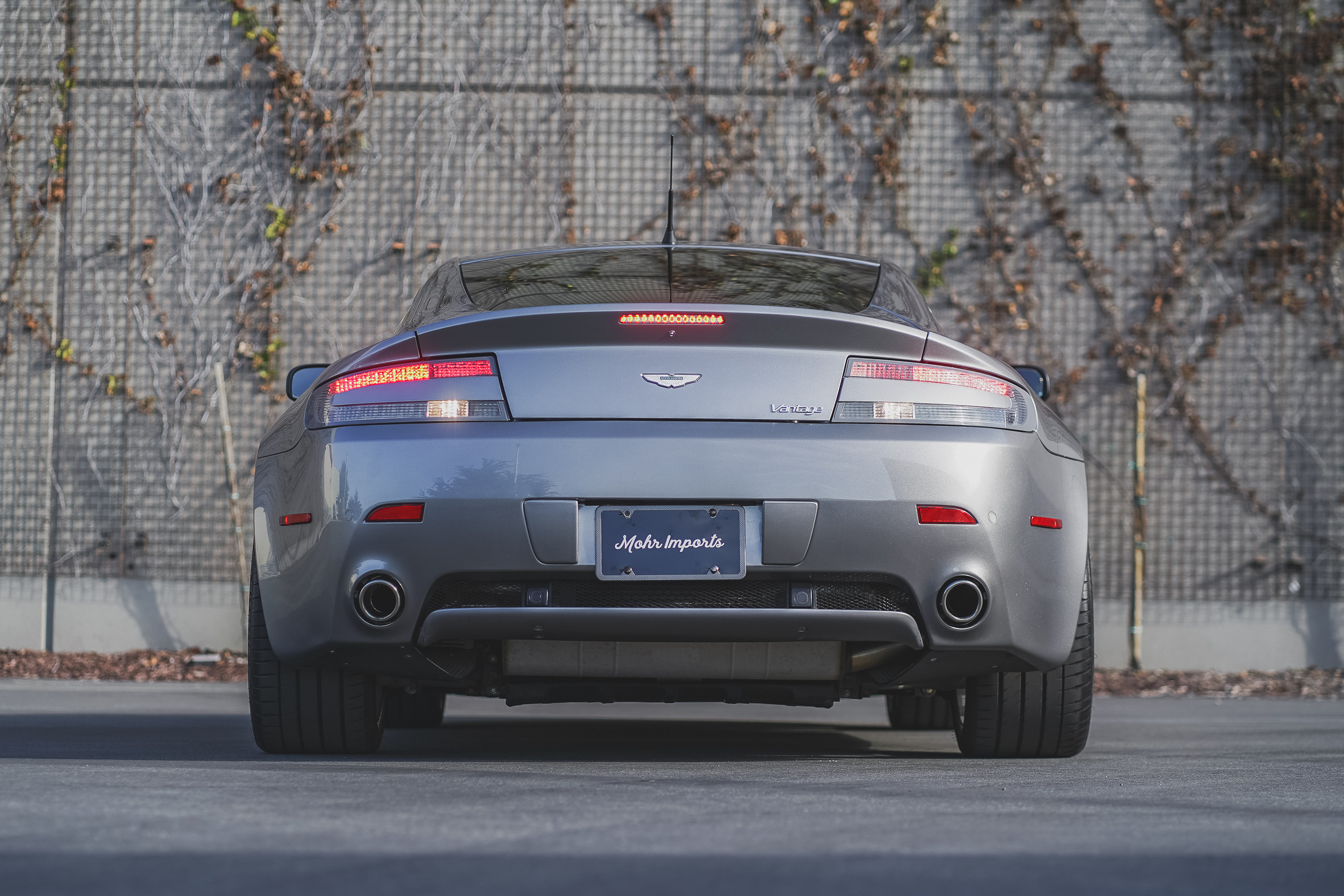 This 2007 Aston Martin V8 Vantage coupe is finished in Tungston Silver over black and is powered by a 4.3-liter V8 paired with a six-speed Sportshift automated manual transmission. Features include aftermarket 20? wheels, N430-style rocker extensions, clear taillight lenses, red brake calipers, rear parking sensors, dual exhaust outlets, power-adjustable seats, a pop-up navigation screen, and automatic climate control. The car was delivered new to Palm Beach Motorcars in Florida and was acquired by the current owner in 2014. This V8 Vantage has 24k miles and is now offered on dealer consignment with factory literature and a clean California title in the owner’s name.