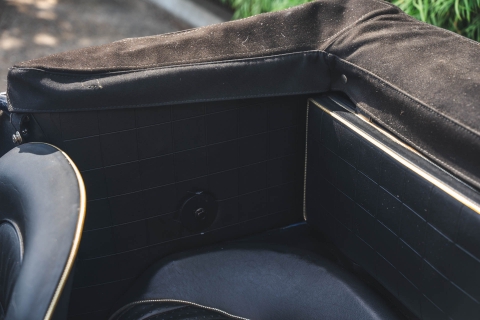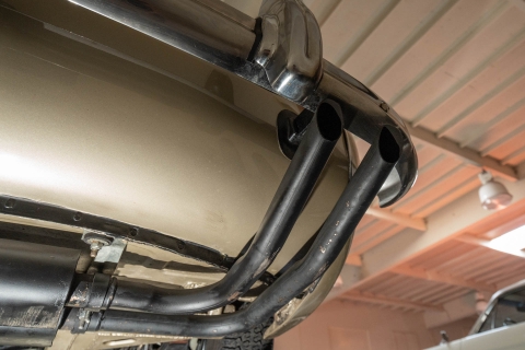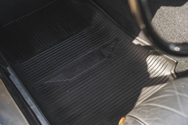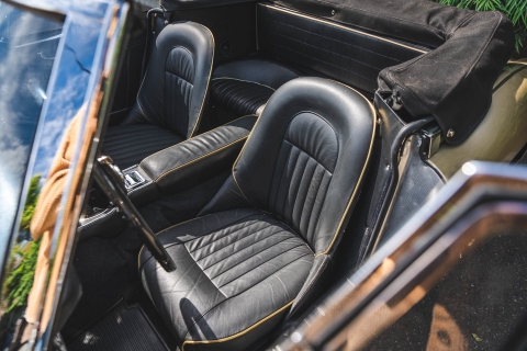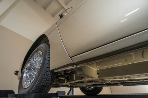 The 2.9-liter inline-six featured dual SU HD8 carburetors from the factory for a rating of 150 horsepower and 173 lb-ft of torque. Work in 2022 included installing a spin-on oil filter, a gear reduction starter, and a replacement battery as well as repairing the radiator and choke system.