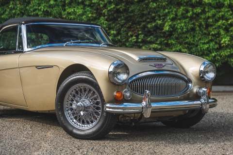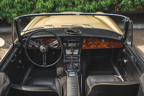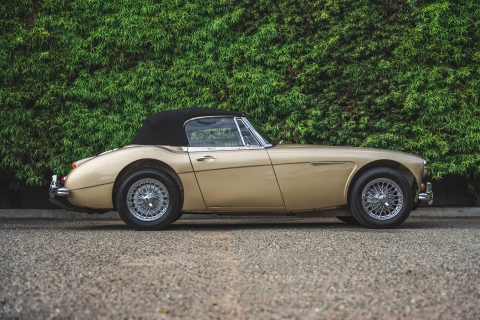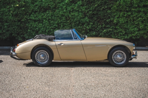 This 1967 Austin-Healey 3000 BJ8 Mk III has been repainted El Paso Beige Metallic over black vinyl and is powered by a 2.9-liter inline-six paired with a four-speed manual transmission. Equipment includes a black soft top, 15? knock-off wire wheels, front disc brakes, a top boot, a tonneau cover, a hood scoop, and front bucket seats. The car was refurbished in the early 2000s and was acquired by the current owner in 2021. This 3000 Mk III is now offered as part of Mohr Imports’ Monterey Car Week Collection on dealer consignment with a British Motor Industry Heritage Trust certificate, recent service records, and a clean California title.