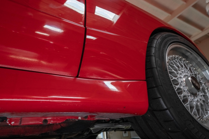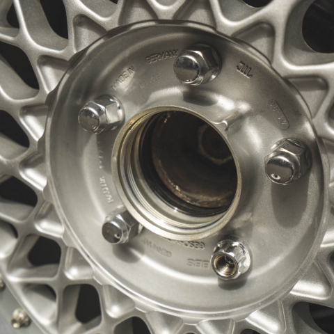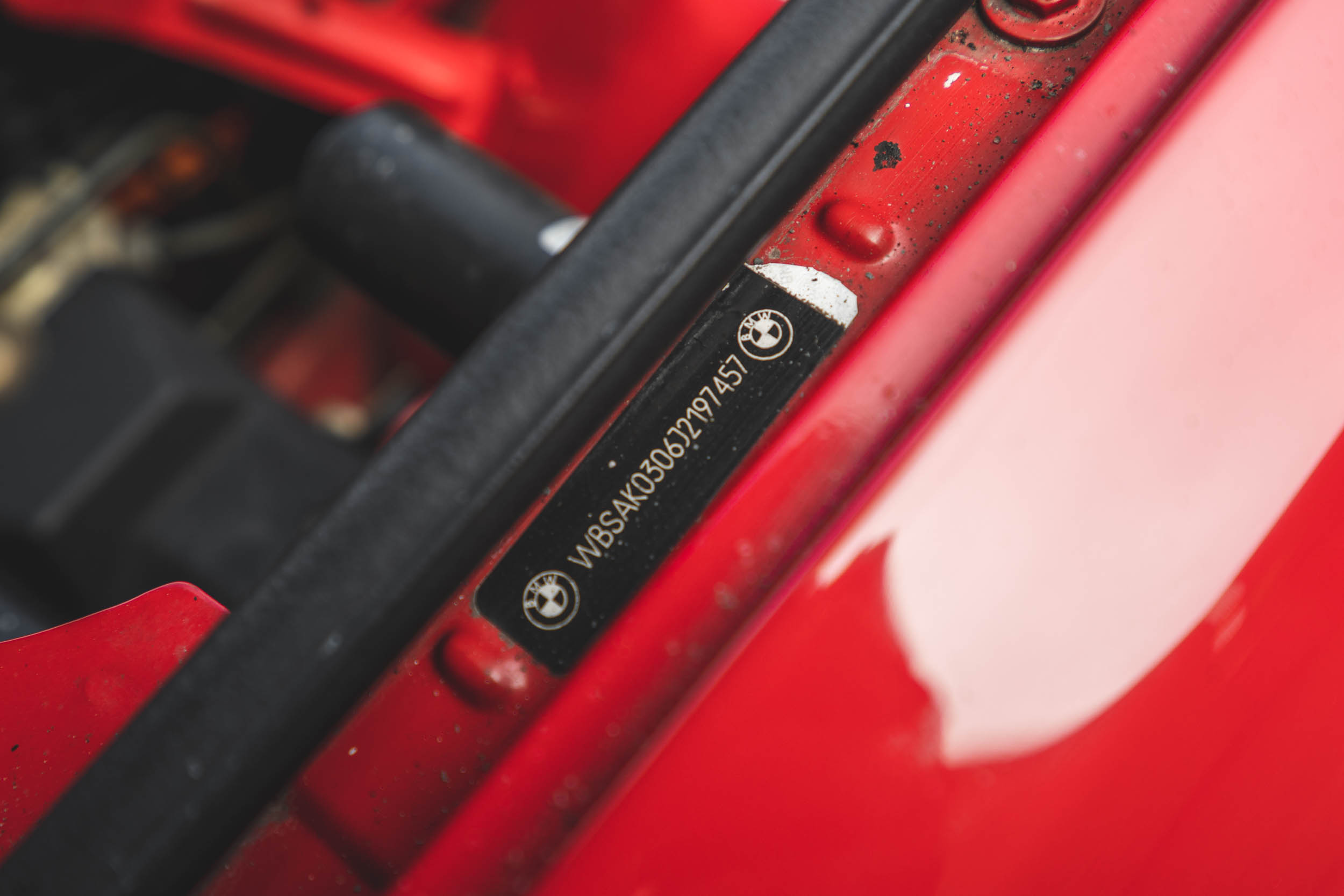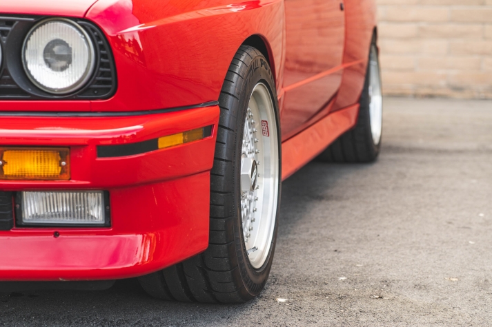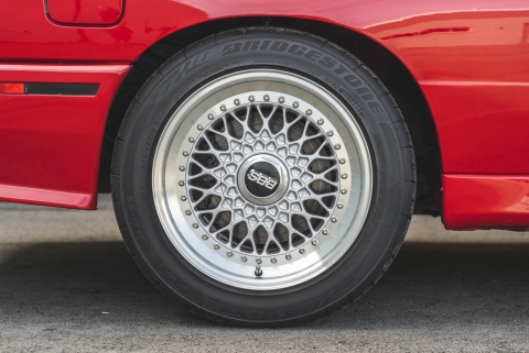 The 16? BBS basketweave wheels feature BMW center caps and are mounted with 245/45 Bridgestone Potenza RE-11 tires. The MacPherson strut/semi-trailing arm suspension was revised for the M3 with a thicker rear anti-roll bar as well as shorter and stiffer springs.