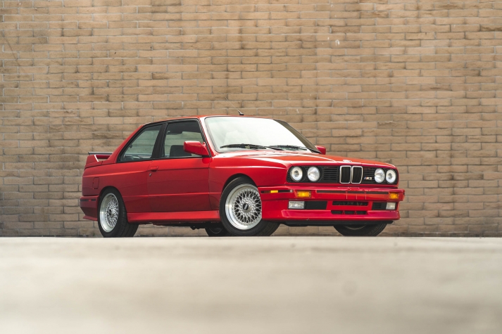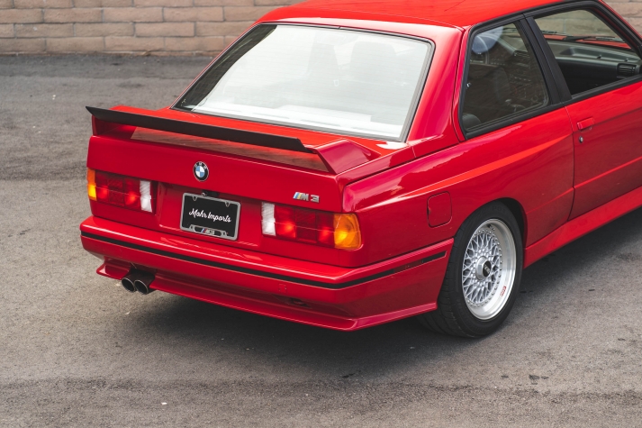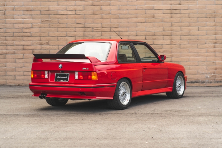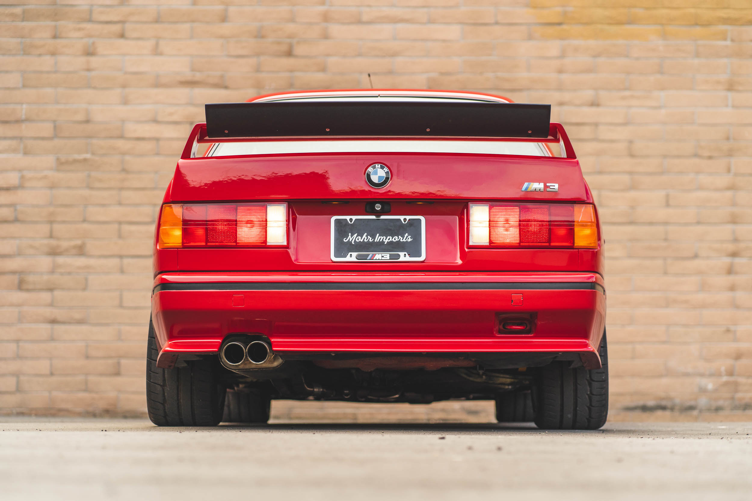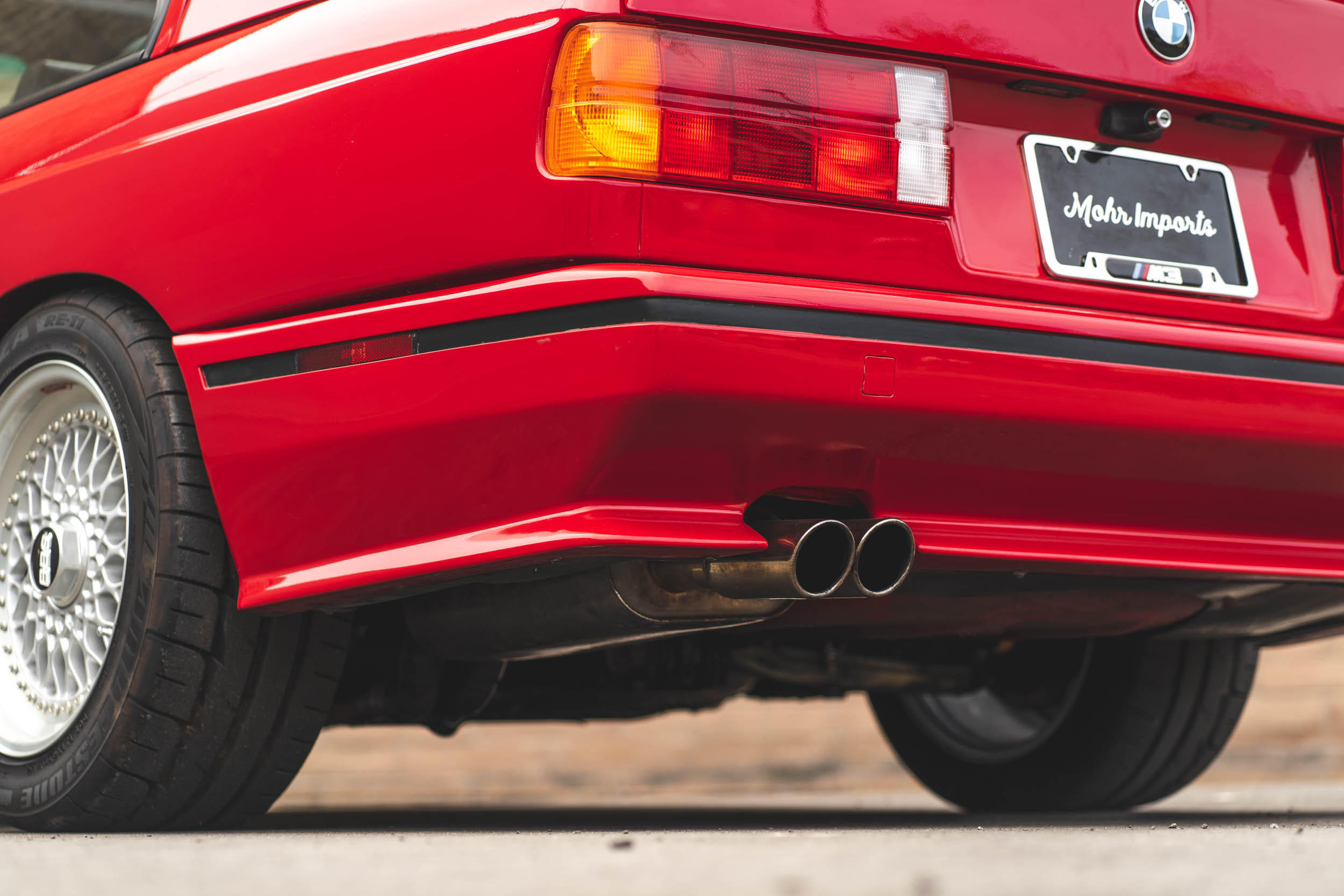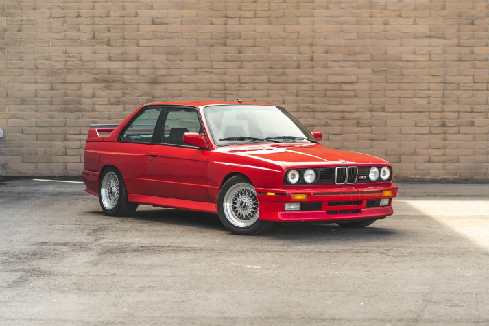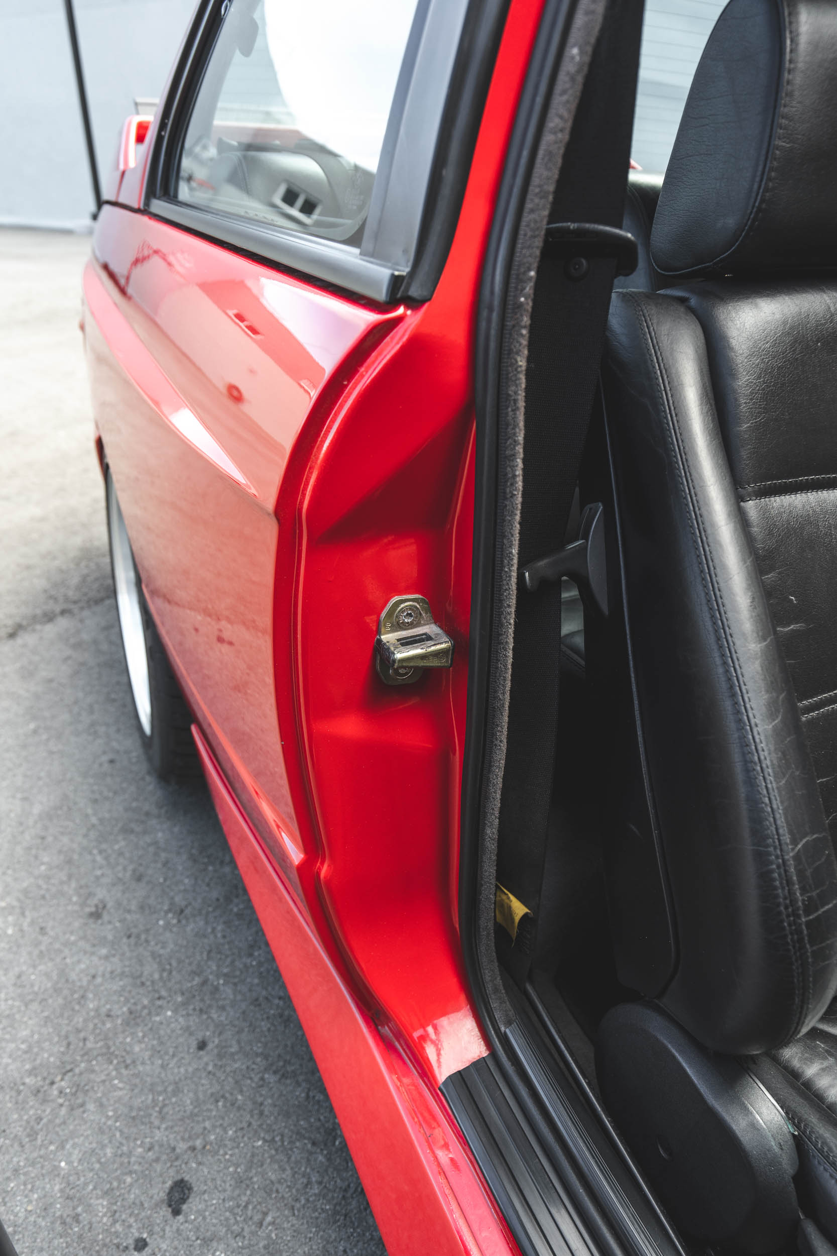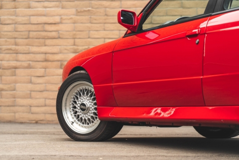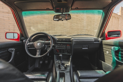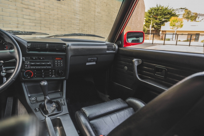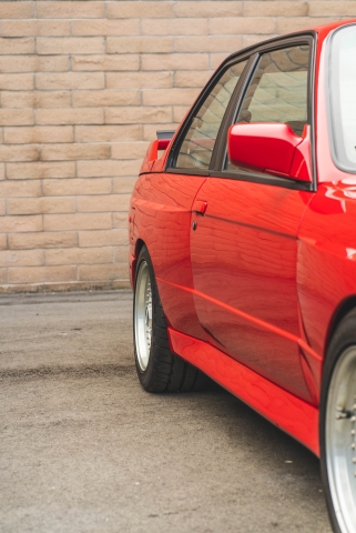This 1988 BMW M3 is powered by a 2.3-liter S14 inline-four paired with a five-speed manual transmission and a limited-slip differential, and it is finished in Cinnabar Red over black leather. Equipment includes 16? BBS basketweave wheels, a strut-tower brace, a sunroof, an extended rear spoiler, fog lights, front sport seats, a CD stereo, air conditioning, and an onboard computer. The car was first registered in Oklahoma, and it also spent time in Georgia and Minnesota prior to its acquisition in August 2014 by the seller, who relocated it to California. This E30 M3 shows 198k miles and is now offered on dealer consignment with literature and a California title.