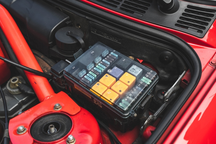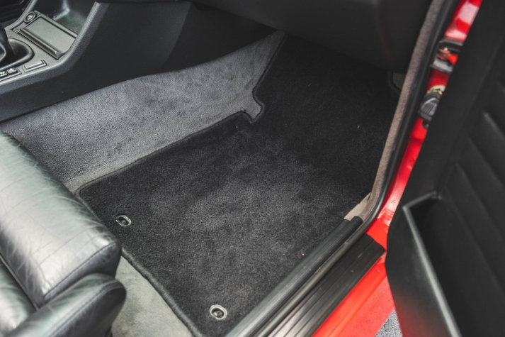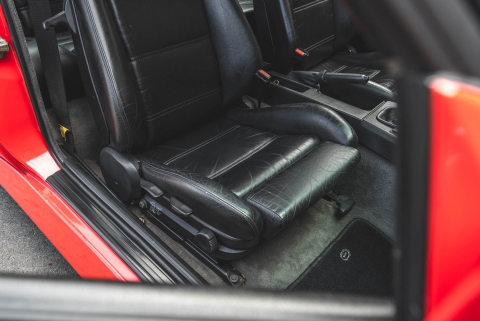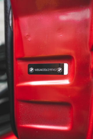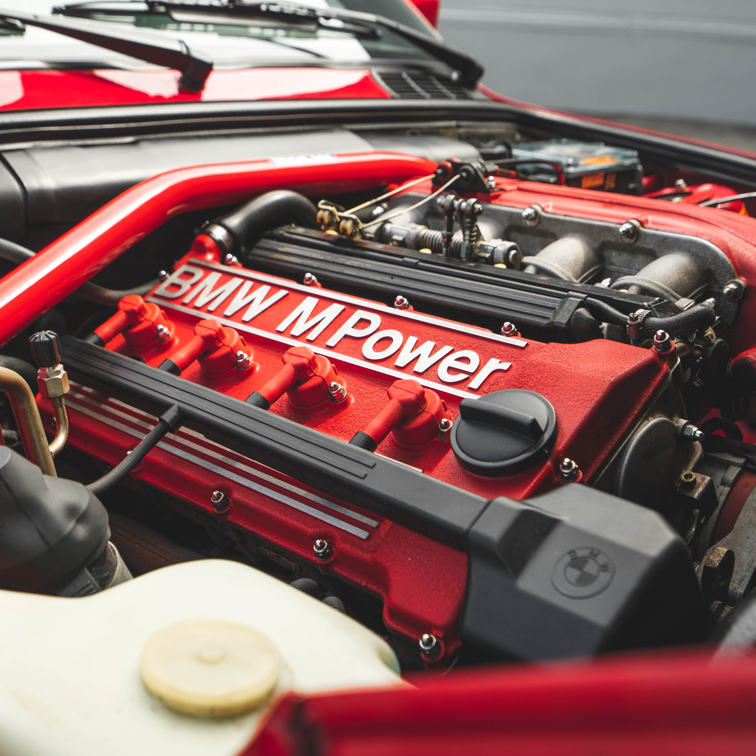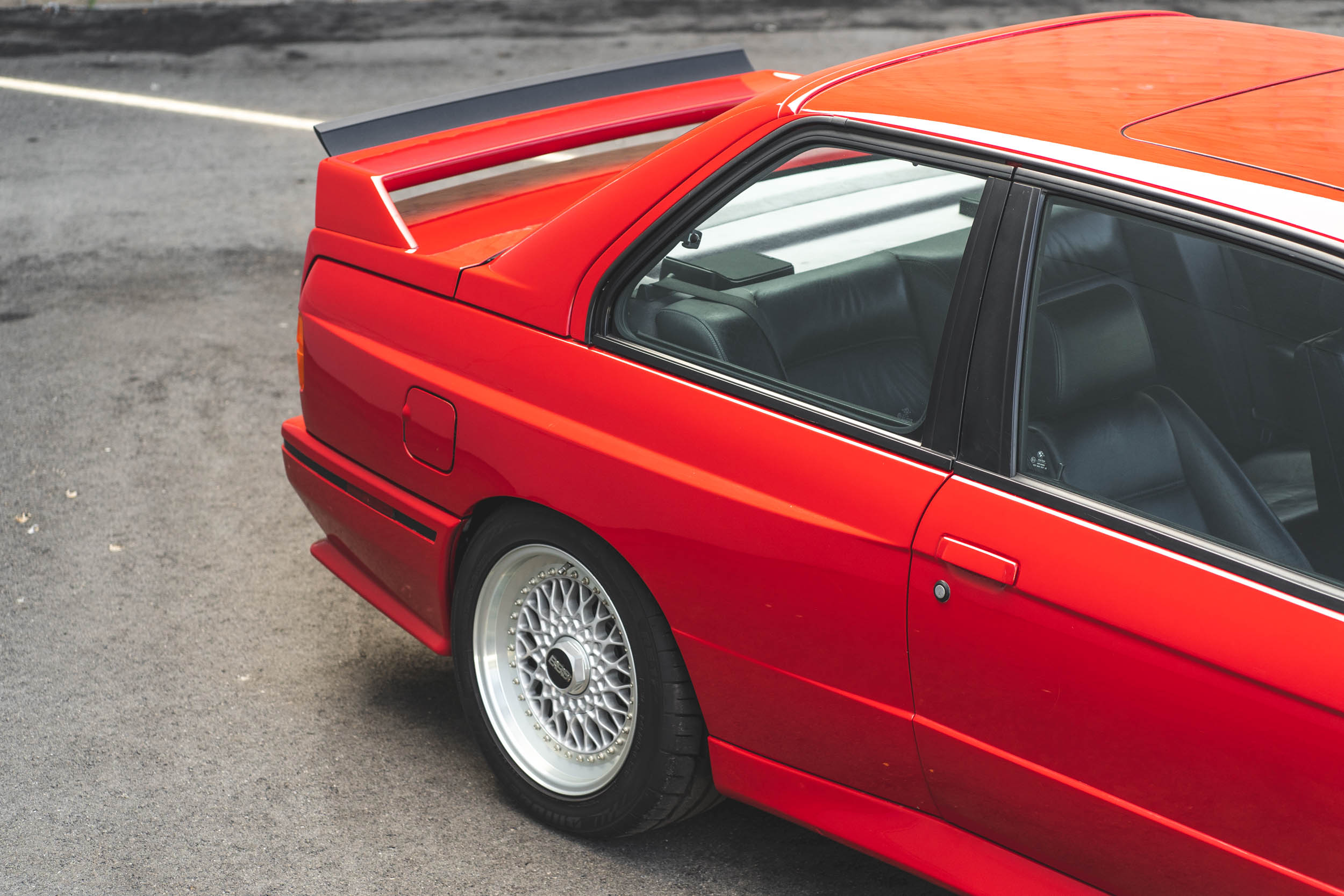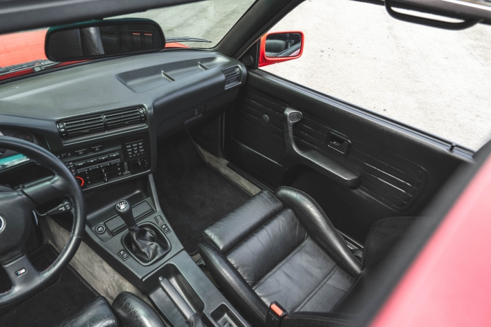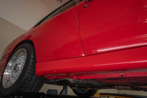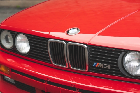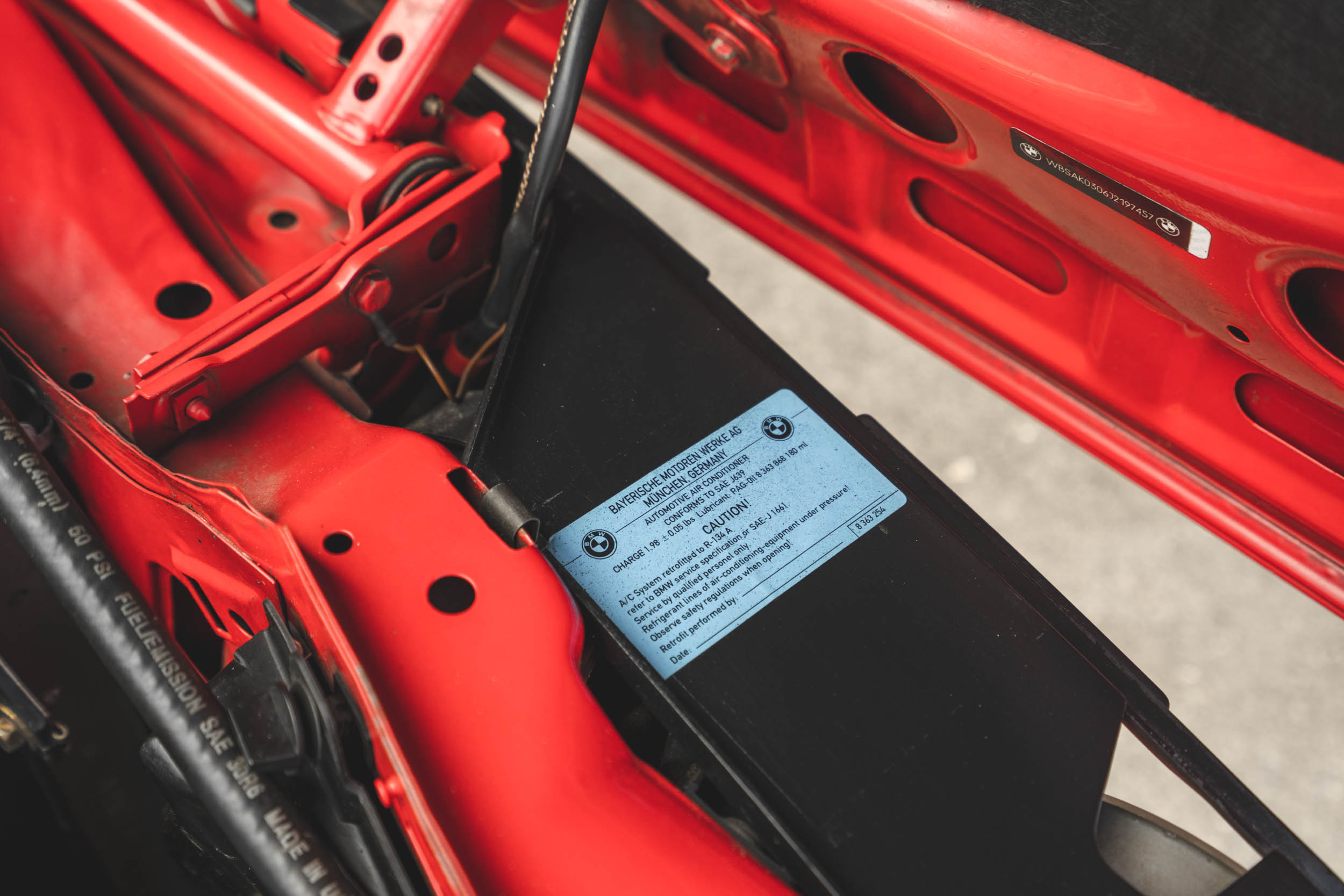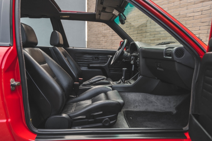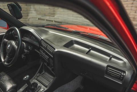 This 1988 BMW M3 is powered by a 2.3-liter S14 inline-four paired with a five-speed manual transmission and a limited-slip differential, and it is finished in Cinnabar Red over black leather. Equipment includes 16? BBS basketweave wheels, a strut-tower brace, a sunroof, an extended rear spoiler, fog lights, front sport seats, a CD stereo, air conditioning, and an onboard computer. The car was first registered in Oklahoma, and it also spent time in Georgia and Minnesota prior to its acquisition in August 2014 by the seller, who relocated it to California. This E30 M3 shows 198k miles and is now offered on dealer consignment with literature and a California title.