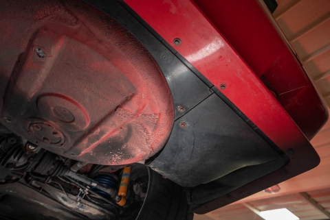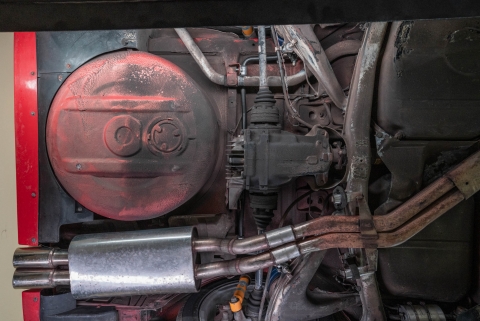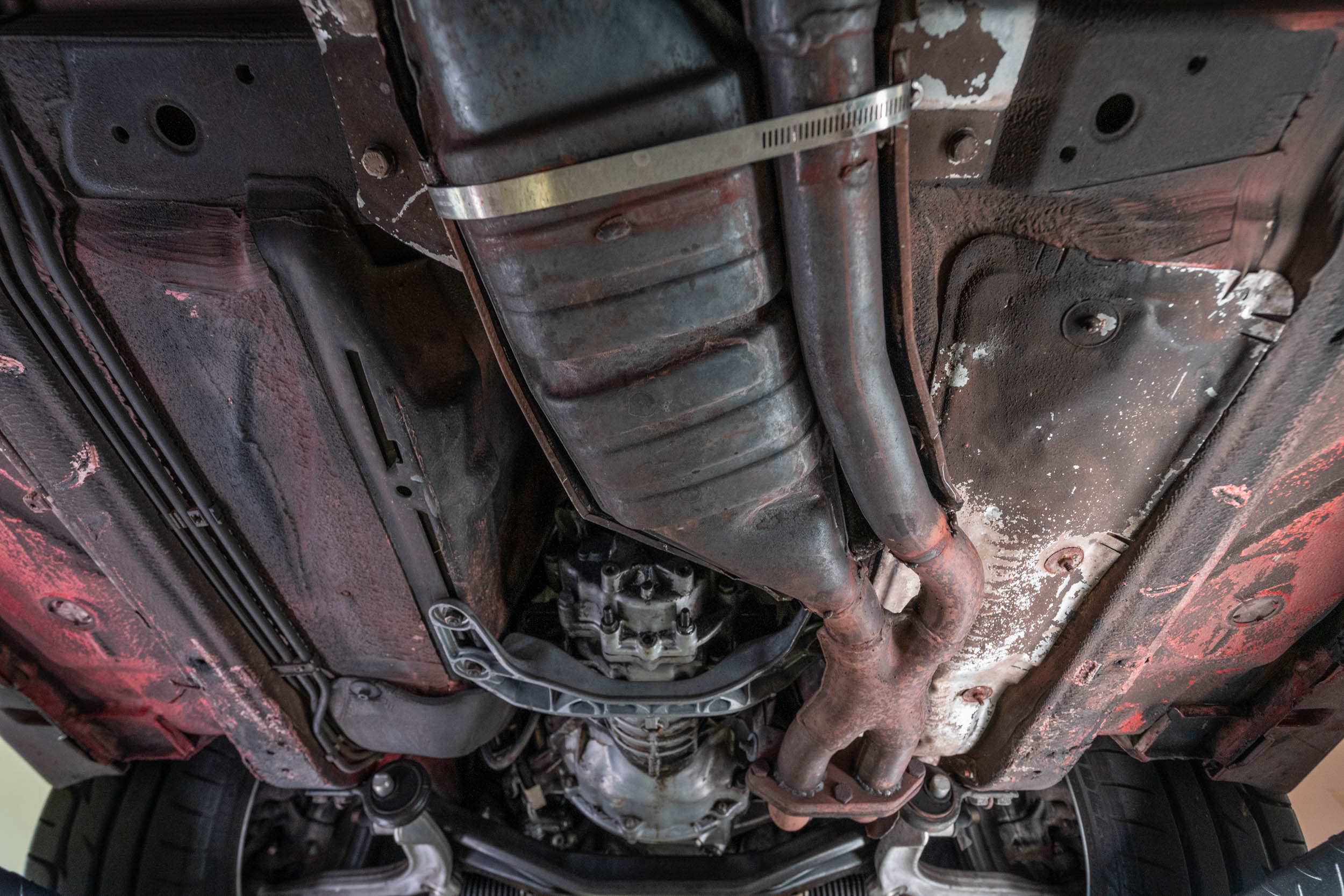 Power is sent to the rear wheels through a Getrag five-speed manual transmission and a limited-slip differential. Additional underside photographs are shown in the gallery below.