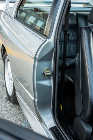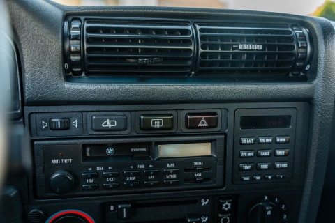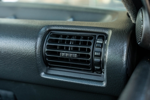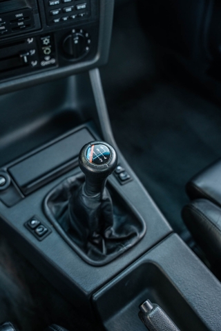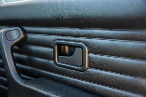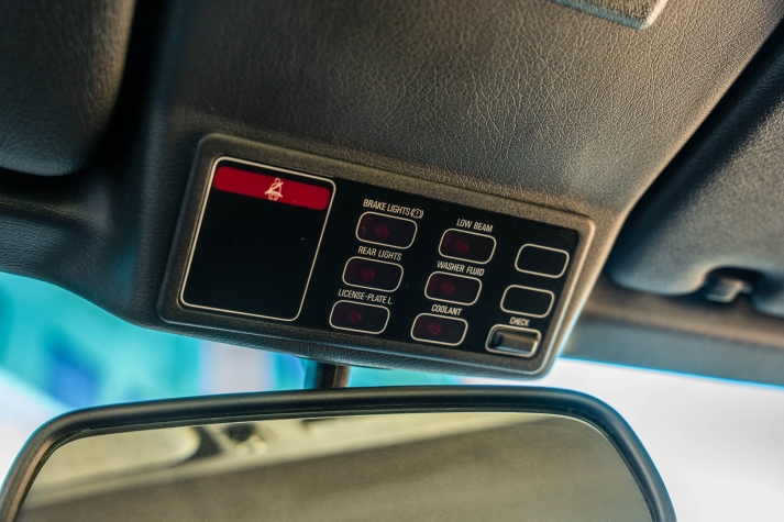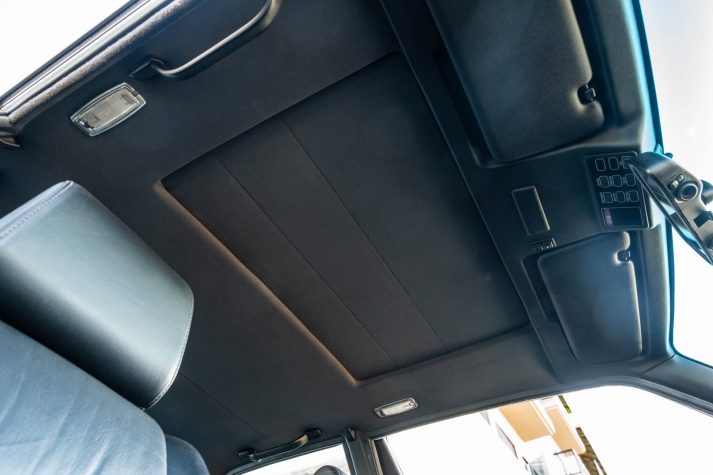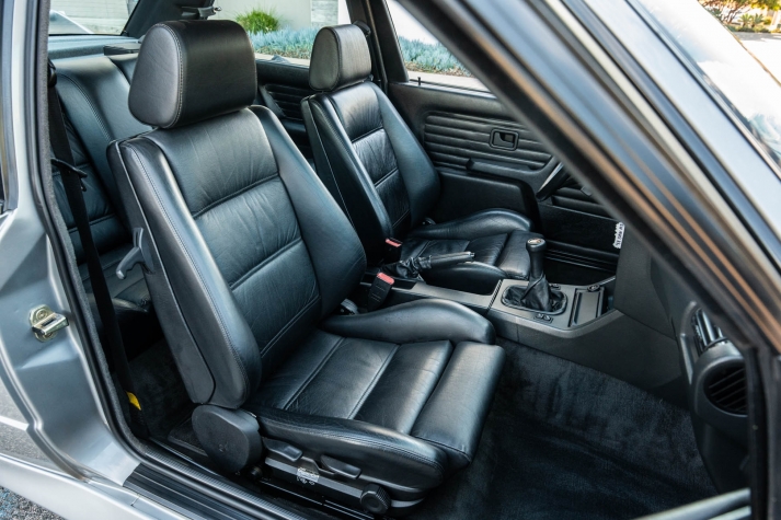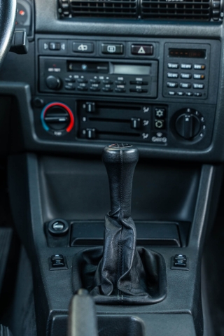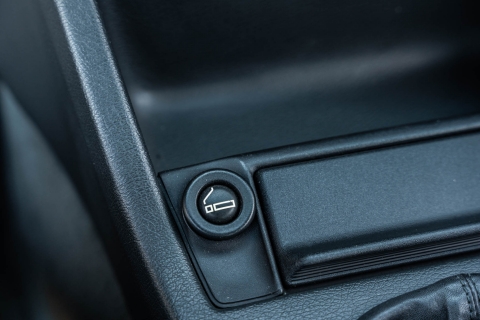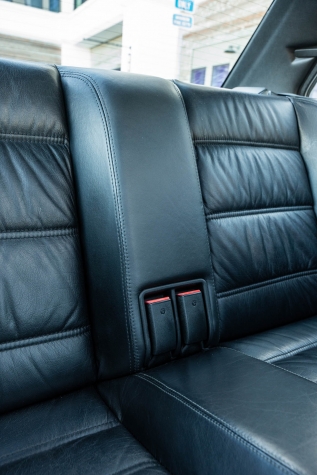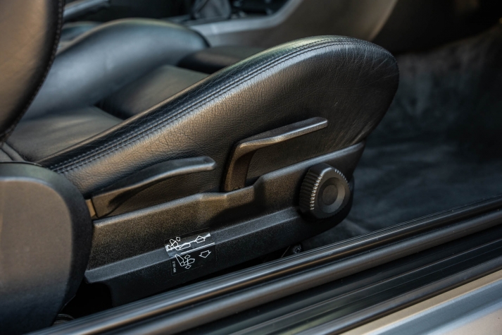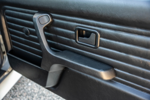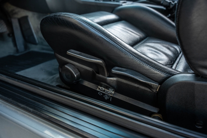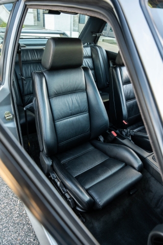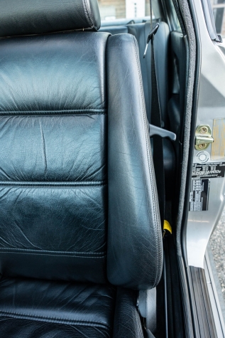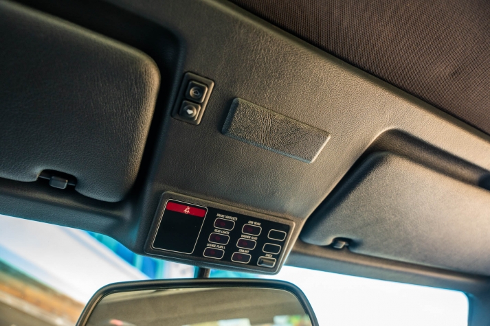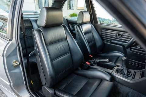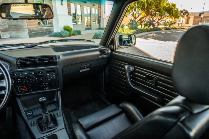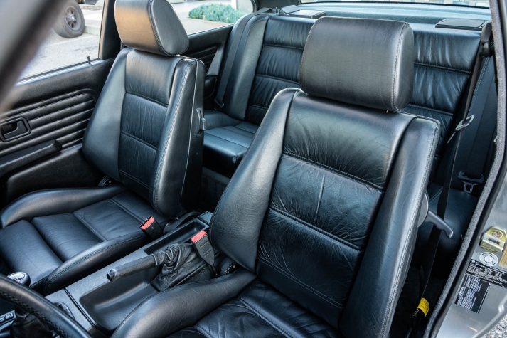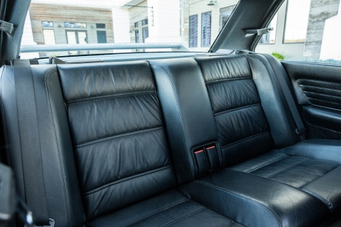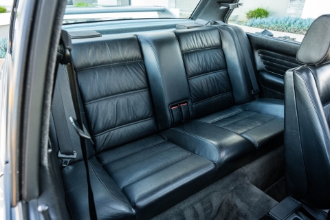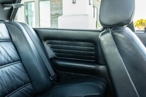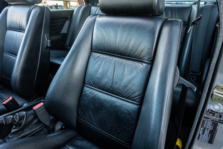 The cabin features manually adjustable front sport seats as well as a rear bench upholstered in black Bison leather. The front seat struts were replaced and the air conditioning system was converted to utilize R134a refrigerant in April 2021, while the final stage resistor was replaced in July 2024. Amenities include an onboard computer, an AM/FM/cassette stereo, cruise control, and power windows, mirrors, and locks.