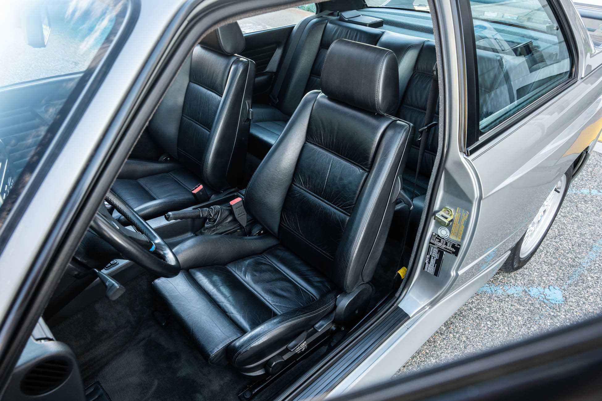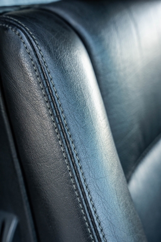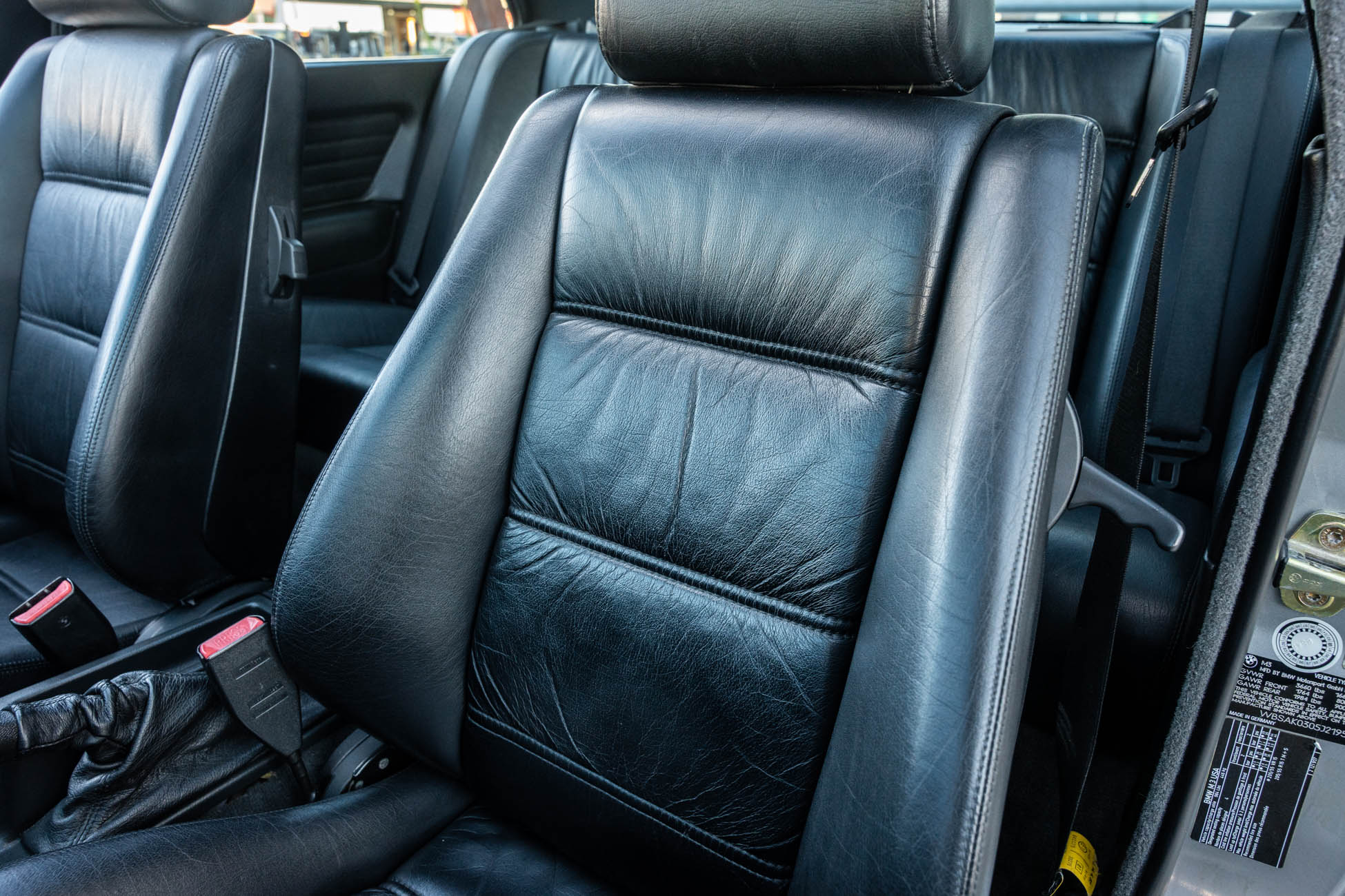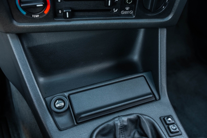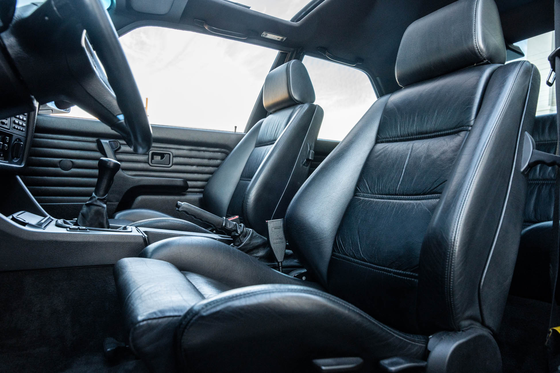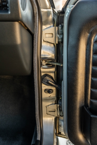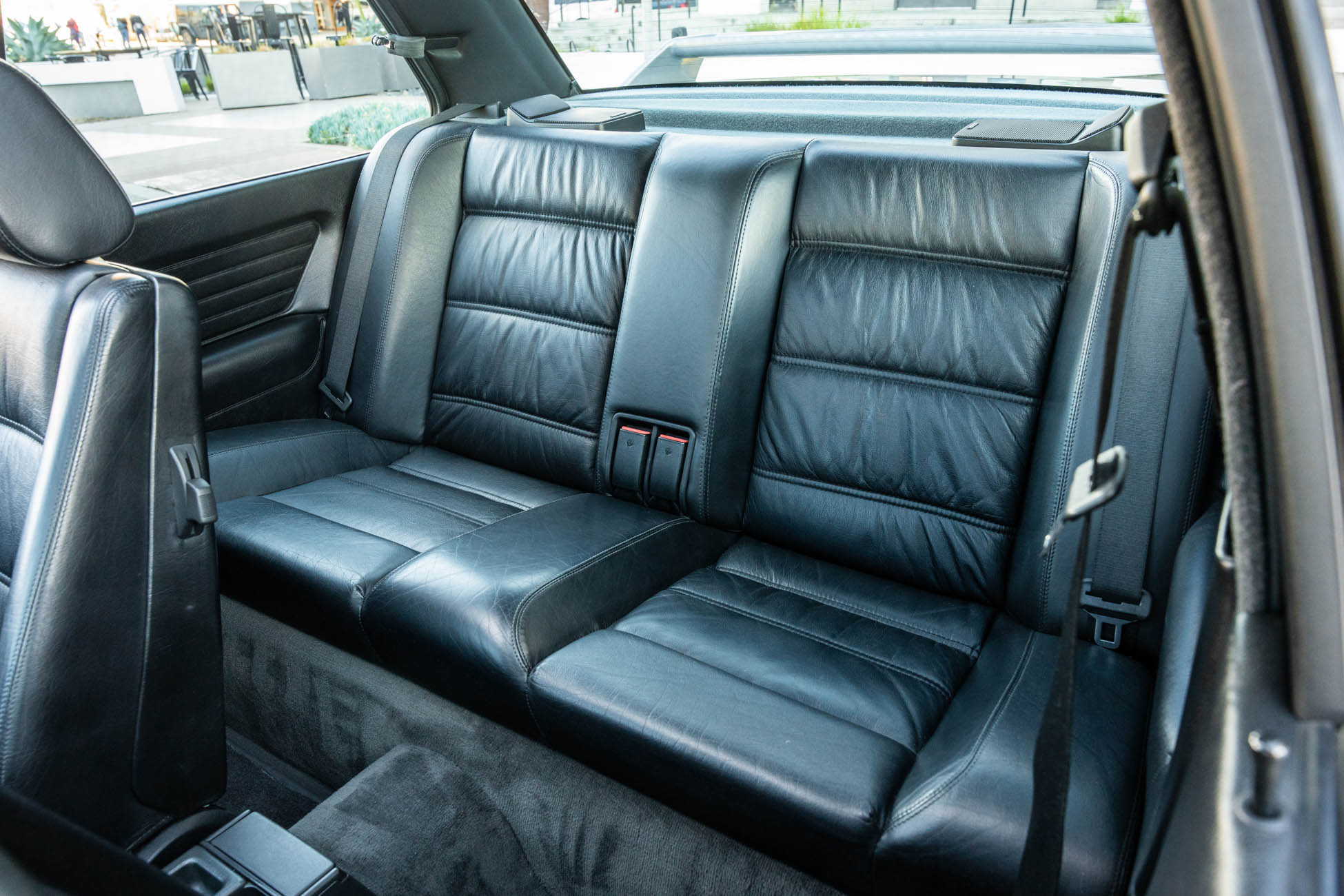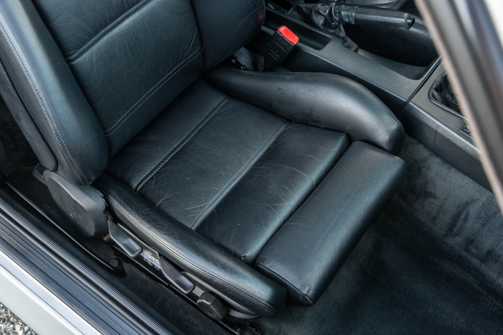The cabin features manually adjustable front sport seats as well as a rear bench upholstered in black Bison leather. The front seat struts were replaced and the air conditioning system was converted to utilize R134a refrigerant in April 2021, while the final stage resistor was replaced in July 2024. Amenities include an onboard computer, an AM/FM/cassette stereo, cruise control, and power windows, mirrors, and locks.