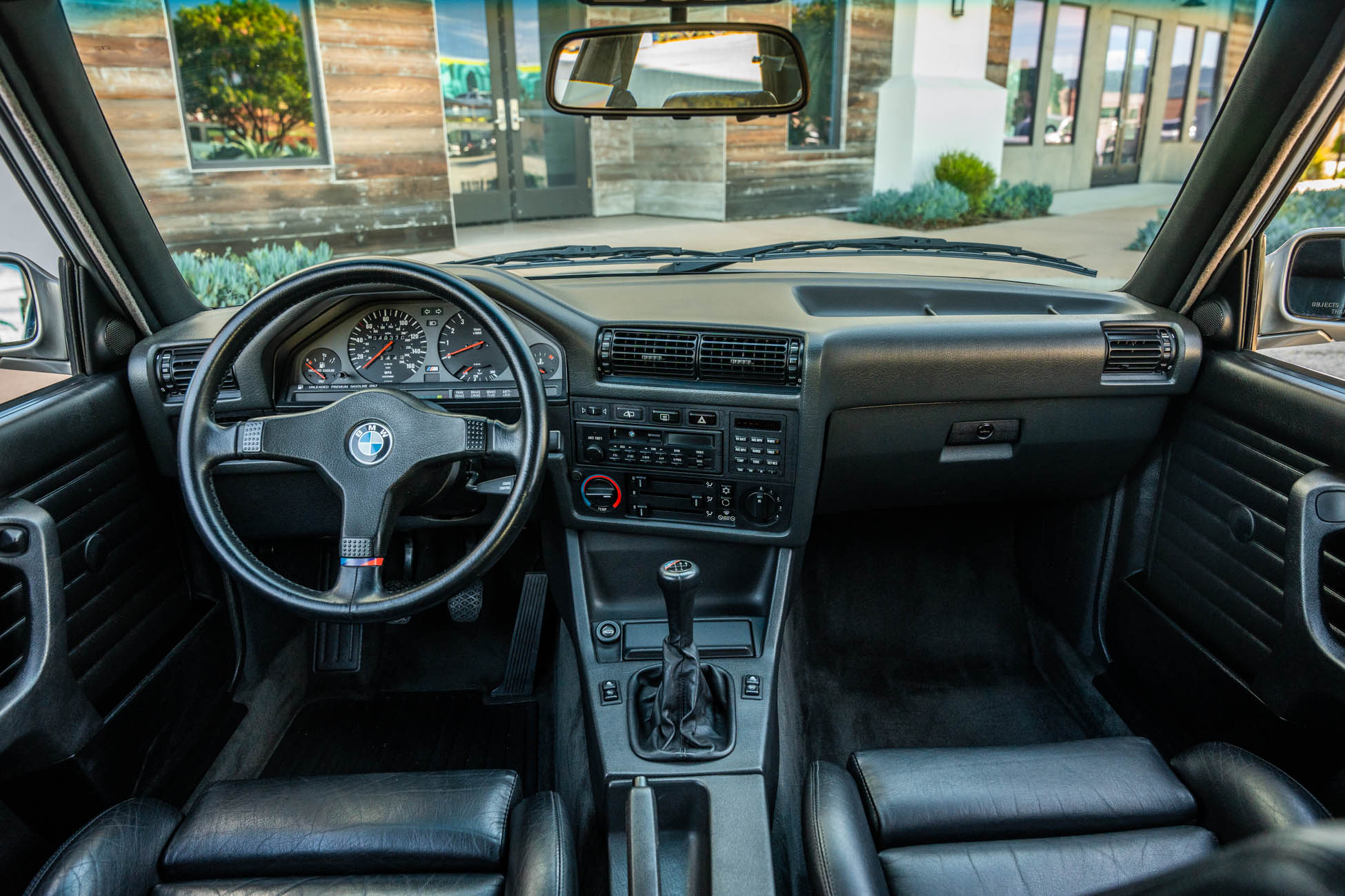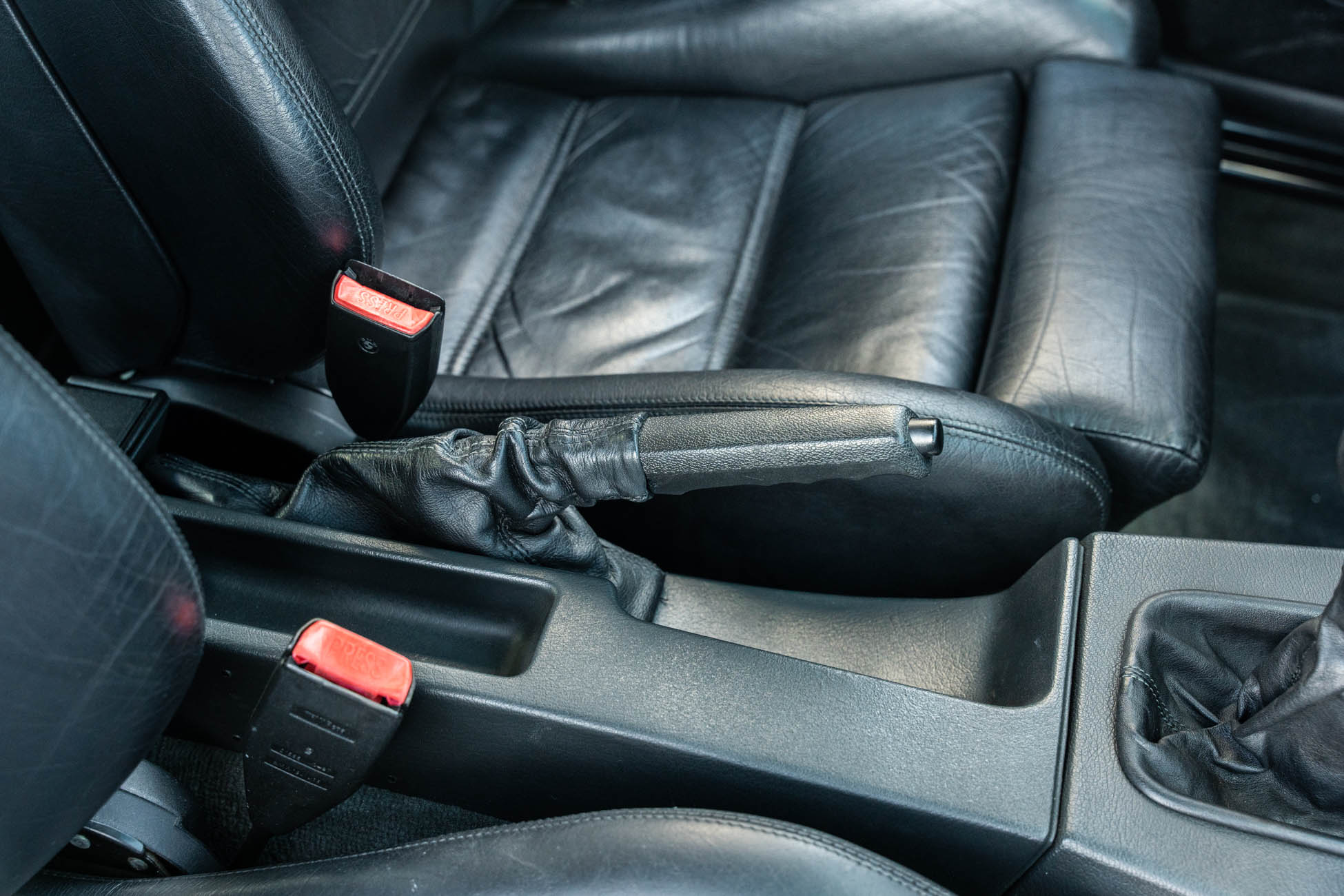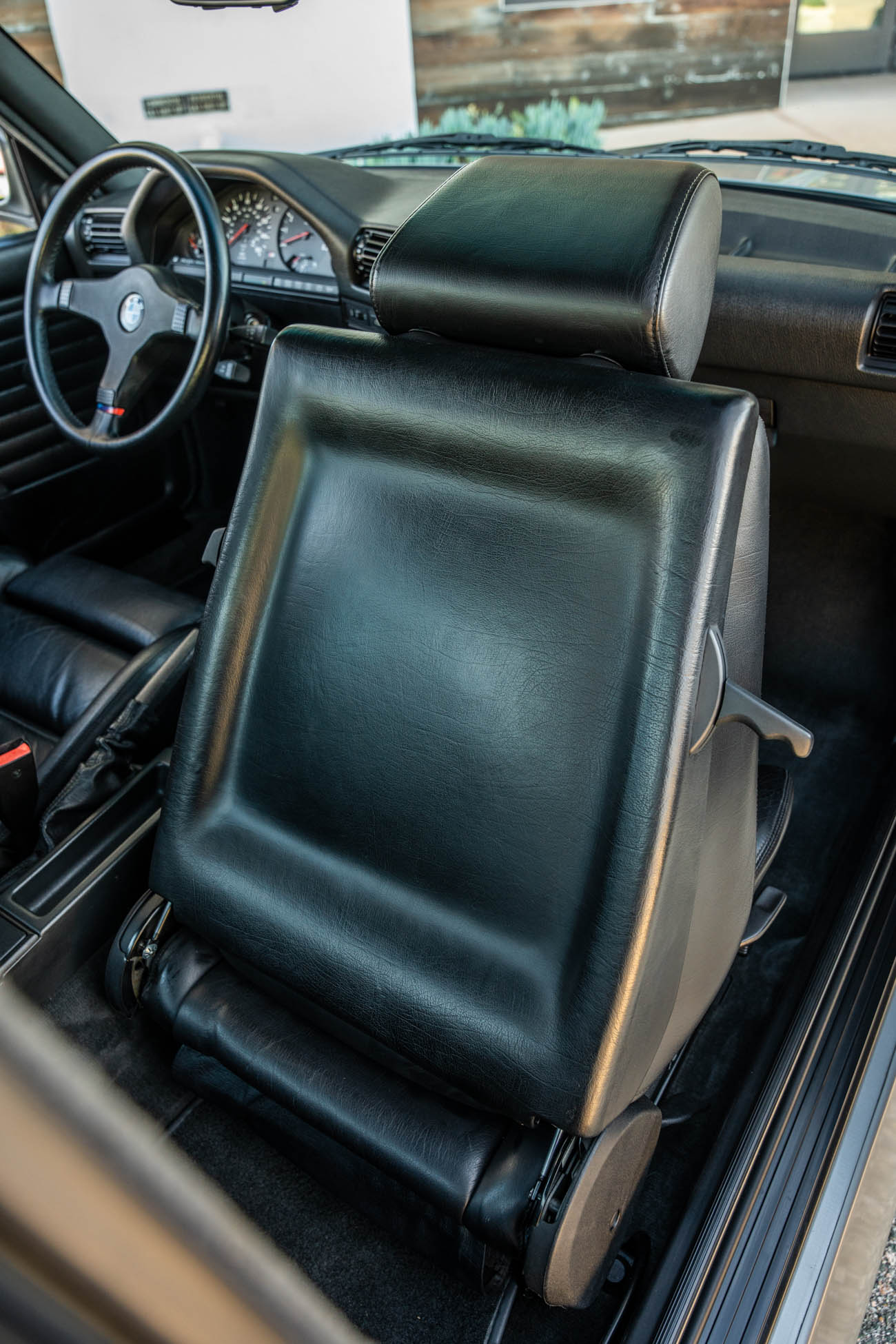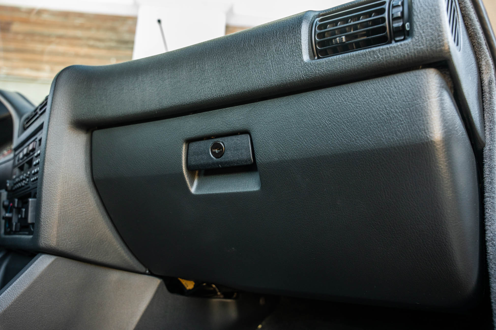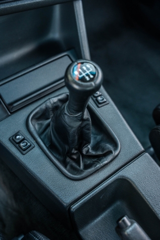 The cabin features manually adjustable front sport seats as well as a rear bench upholstered in black Bison leather. The front seat struts were replaced and the air conditioning system was converted to utilize R134a refrigerant in April 2021, while the final stage resistor was replaced in July 2024. Amenities include an onboard computer, an AM/FM/cassette stereo, cruise control, and power windows, mirrors, and locks.