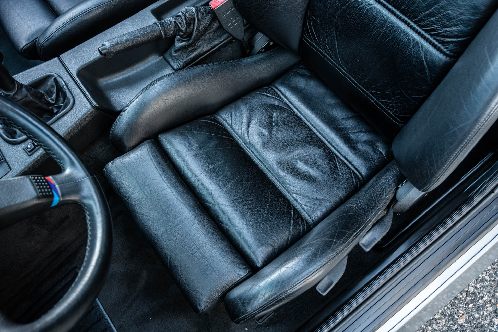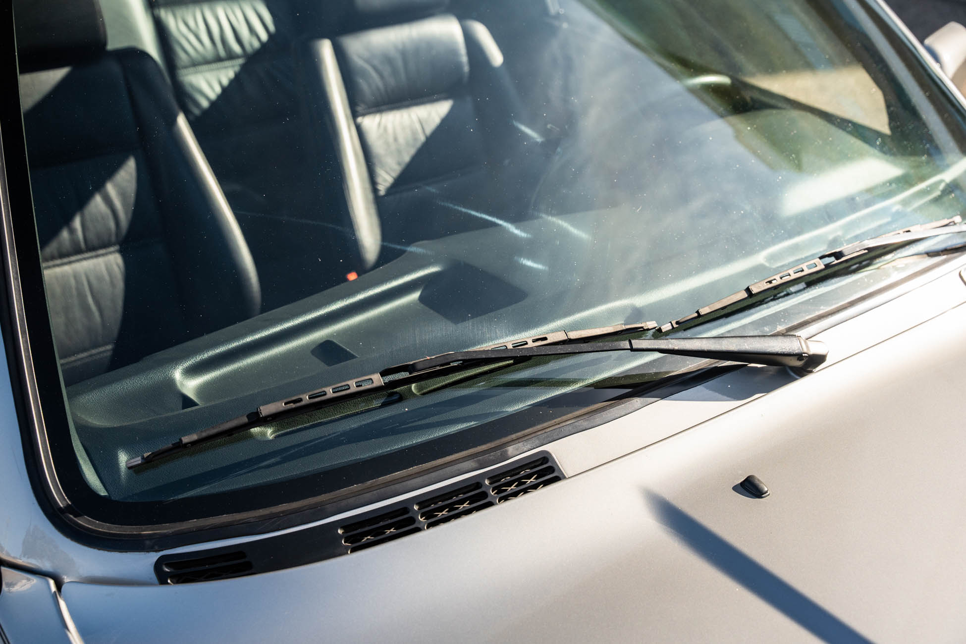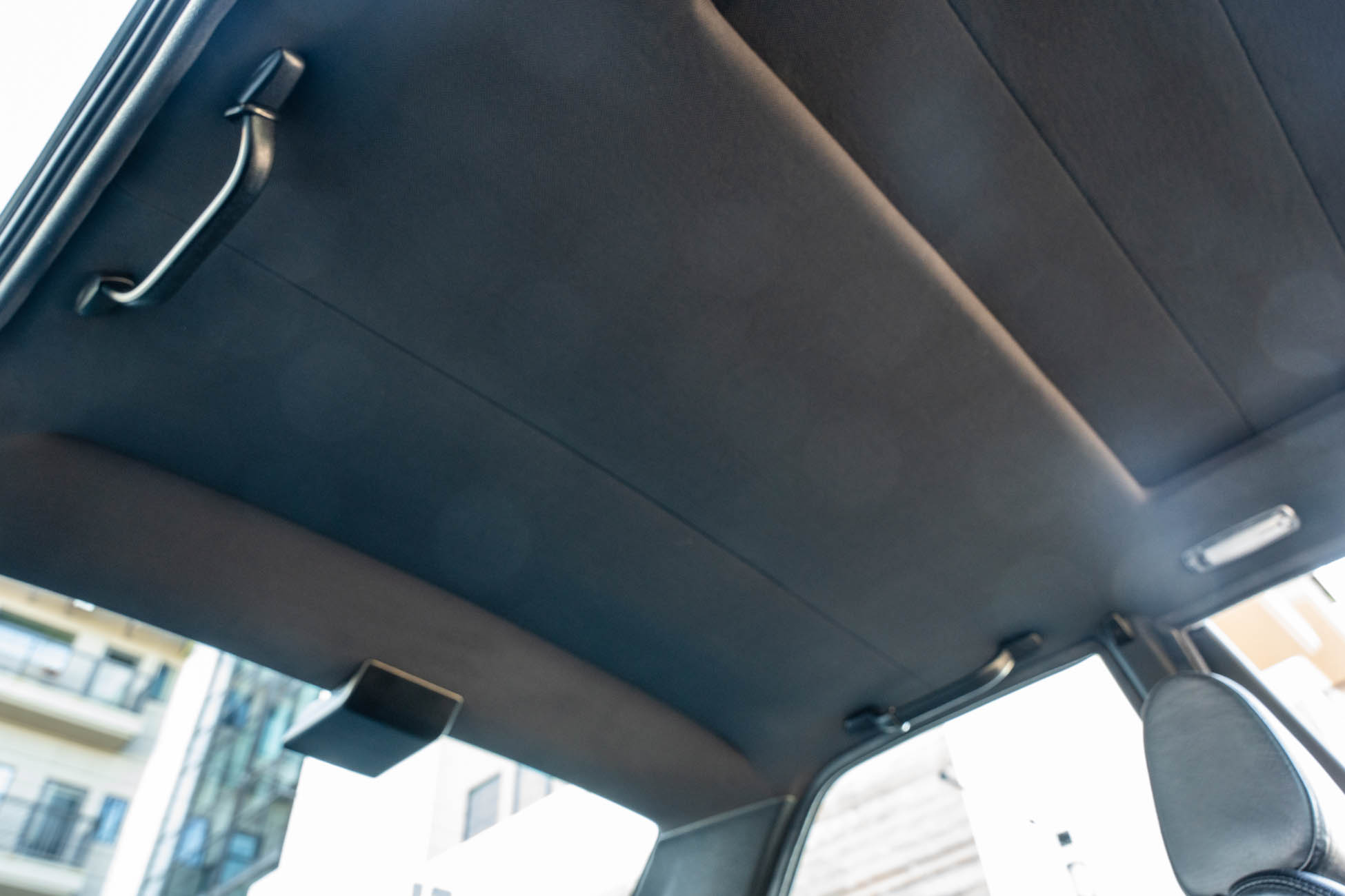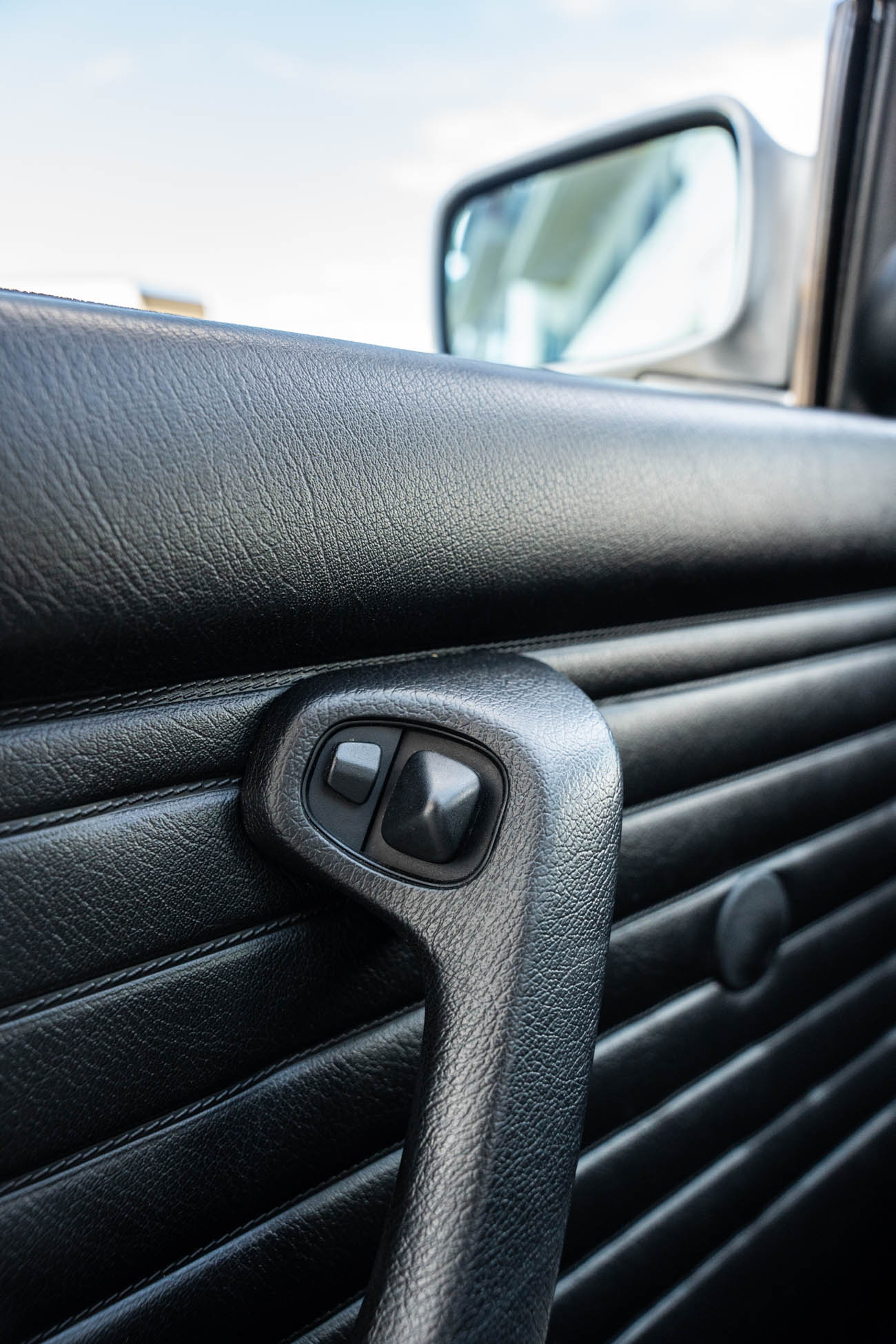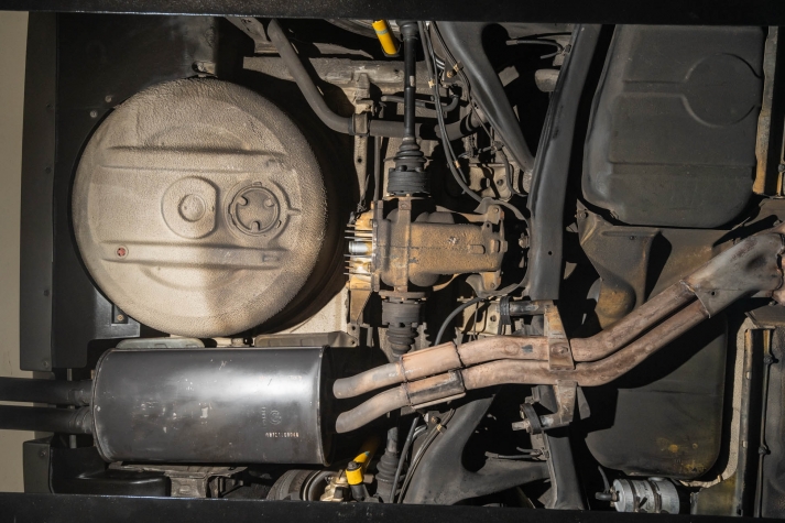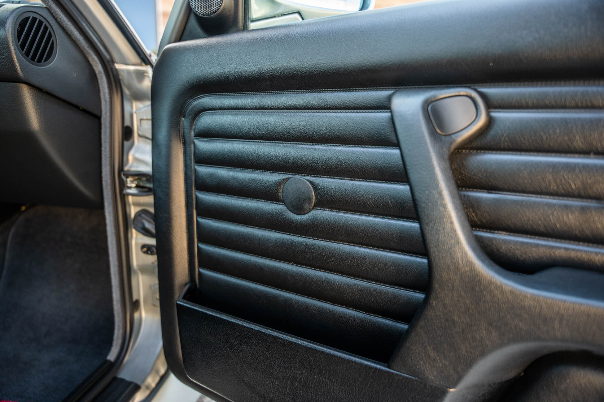 The cabin features manually adjustable front sport seats as well as a rear bench upholstered in black Bison leather. The front seat struts were replaced and the air conditioning system was converted to utilize R134a refrigerant in April 2021, while the final stage resistor was replaced in July 2024. Amenities include an onboard computer, an AM/FM/cassette stereo, cruise control, and power windows, mirrors, and locks.