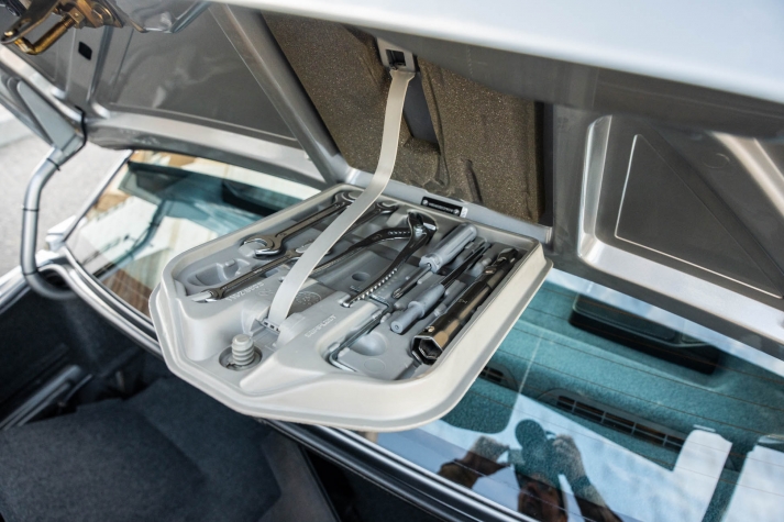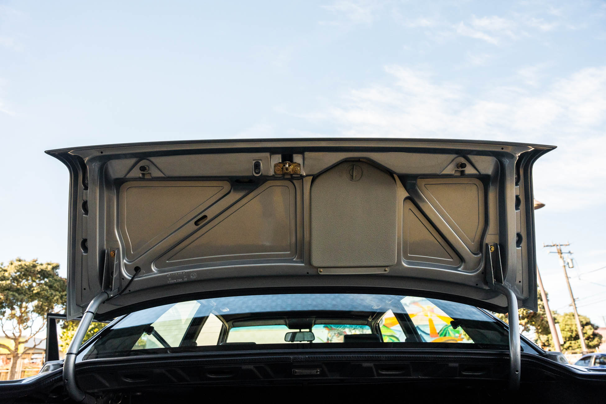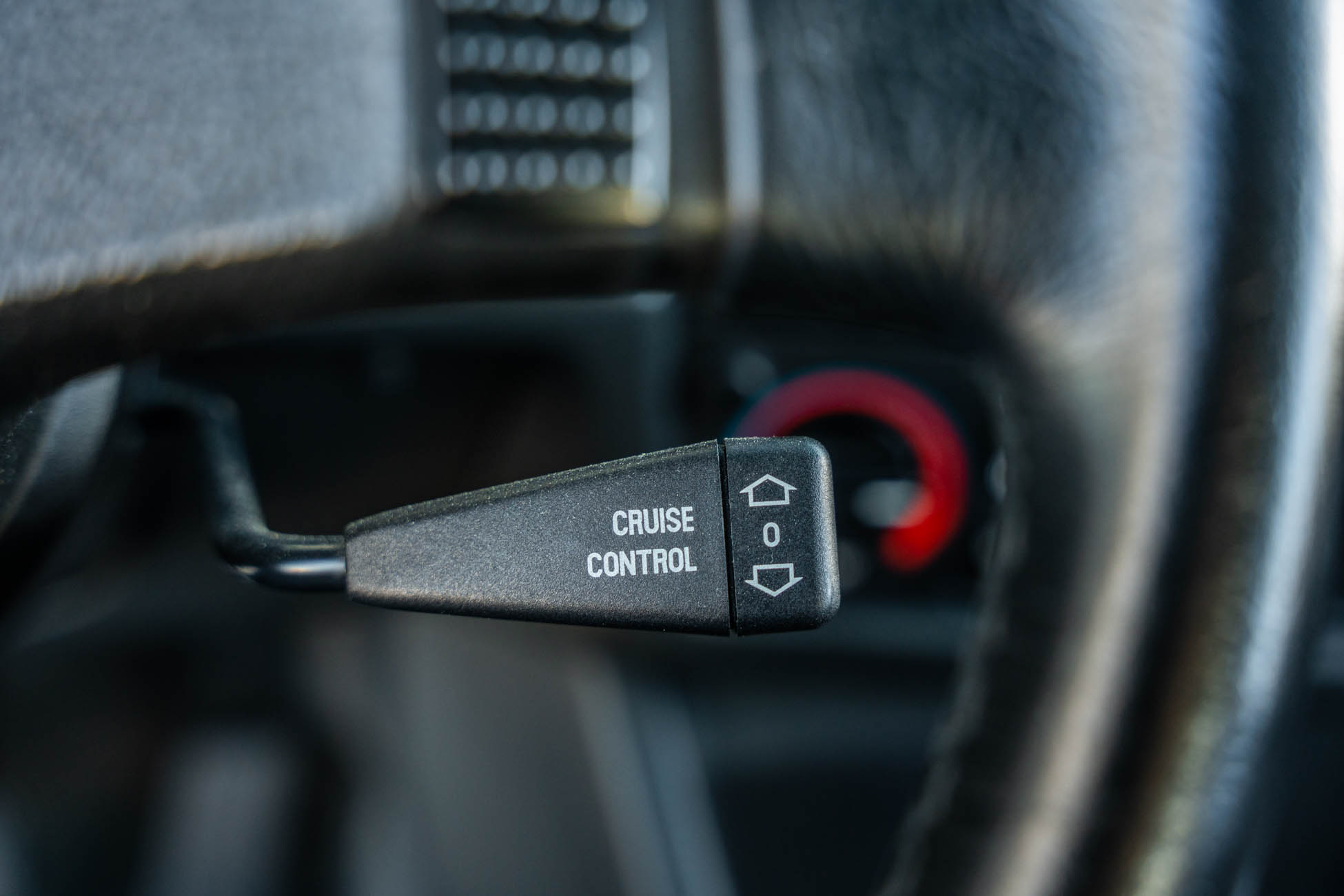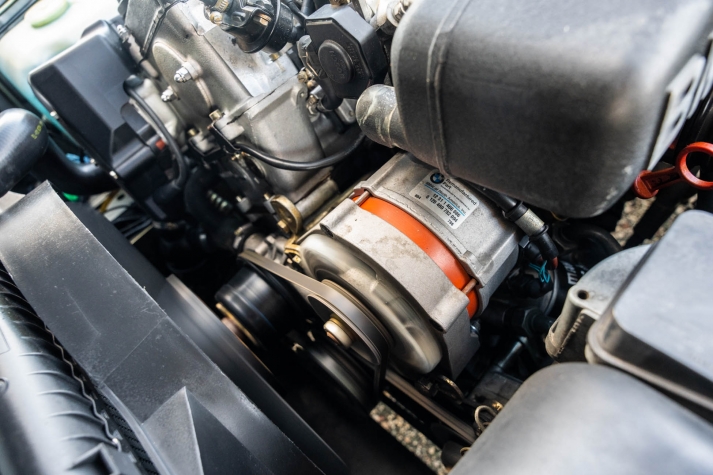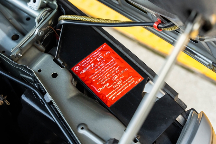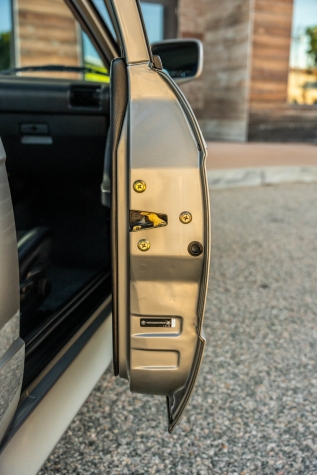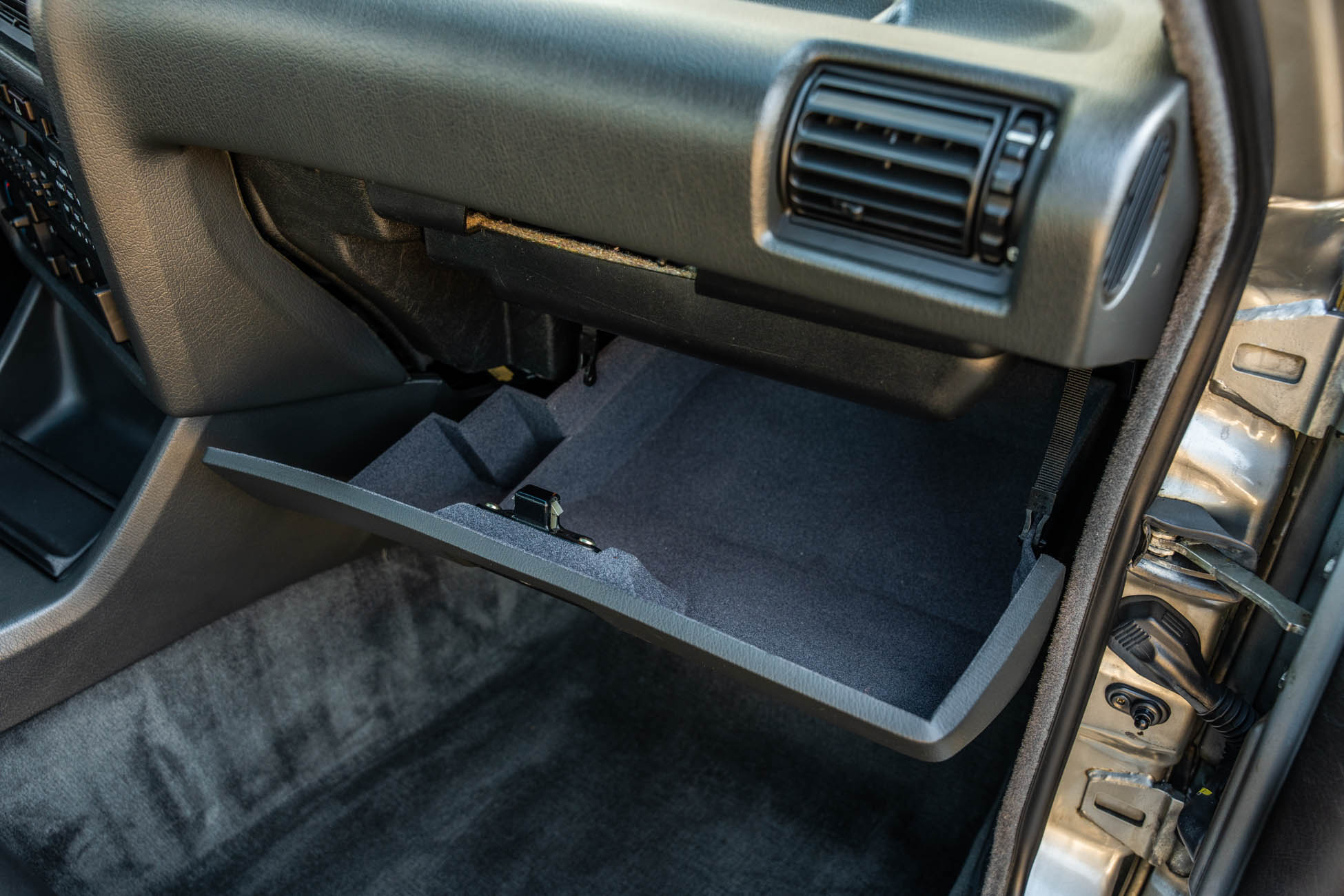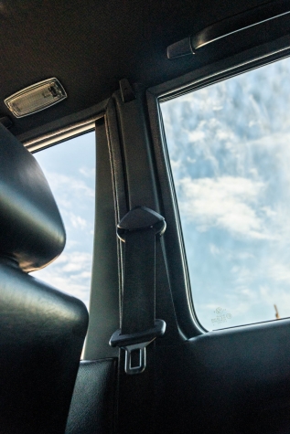 The cabin features manually adjustable front sport seats as well as a rear bench upholstered in black Bison leather. The front seat struts were replaced and the air conditioning system was converted to utilize R134a refrigerant in April 2021, while the final stage resistor was replaced in July 2024. Amenities include an onboard computer, an AM/FM/cassette stereo, cruise control, and power windows, mirrors, and locks.