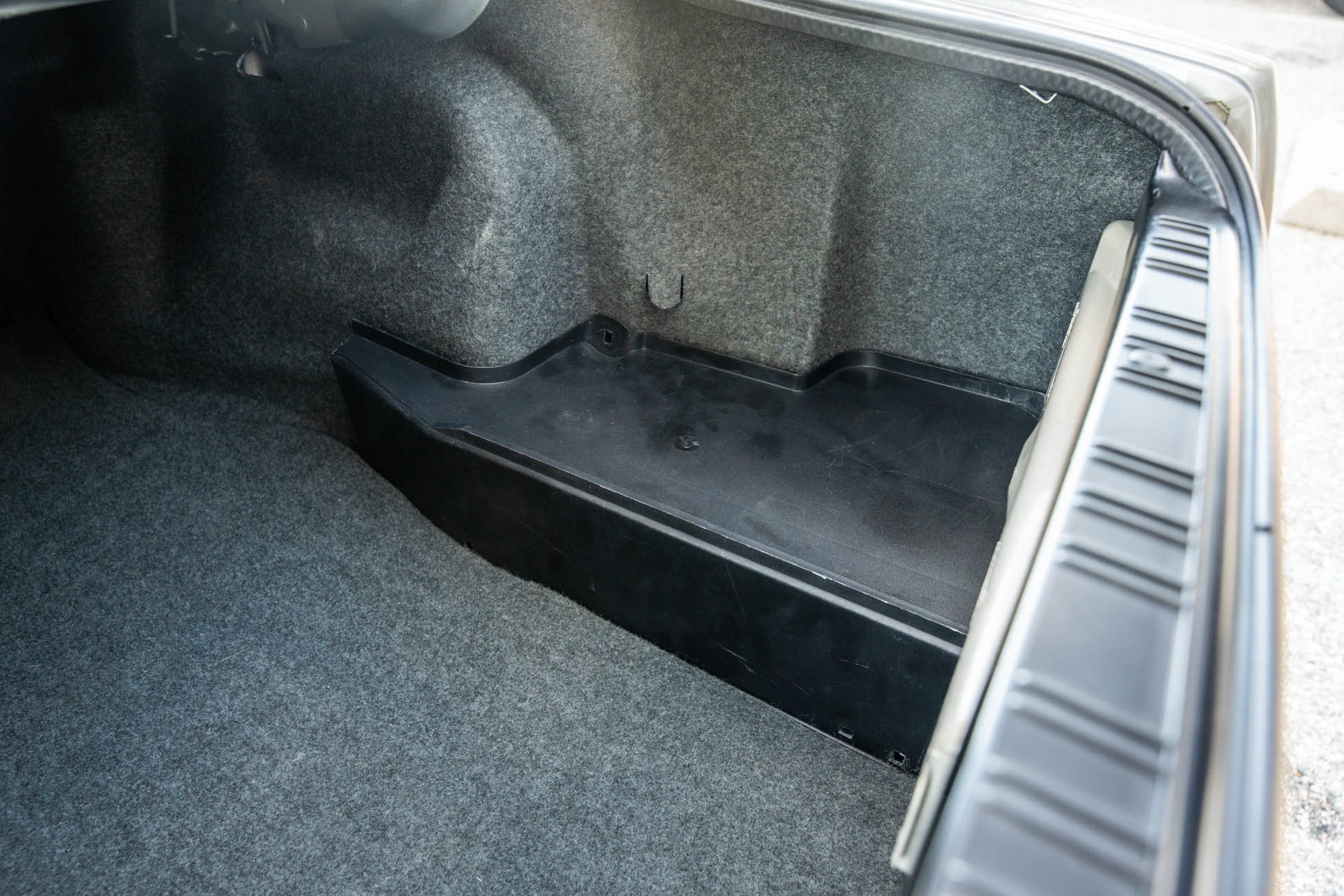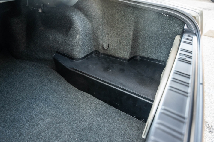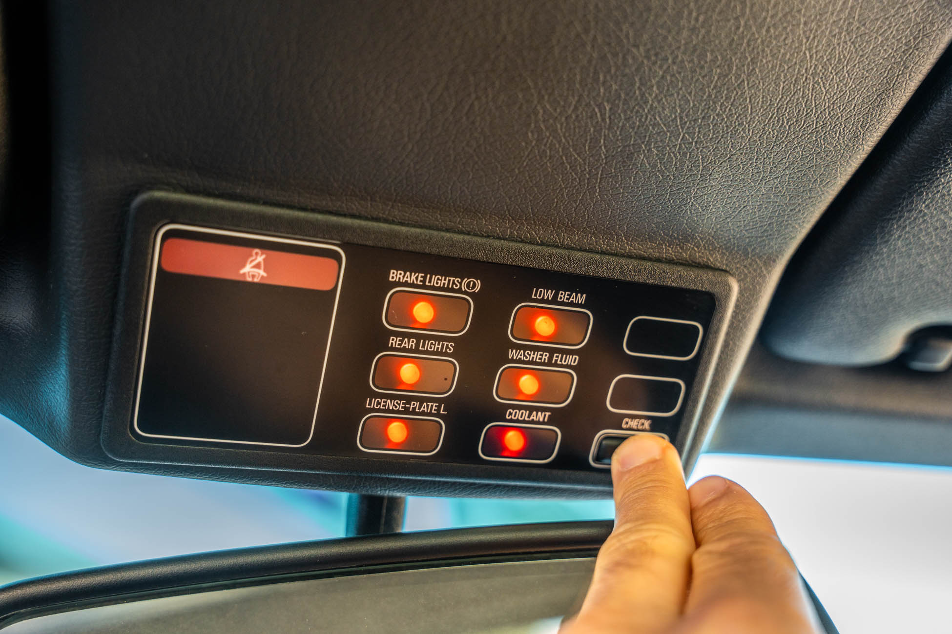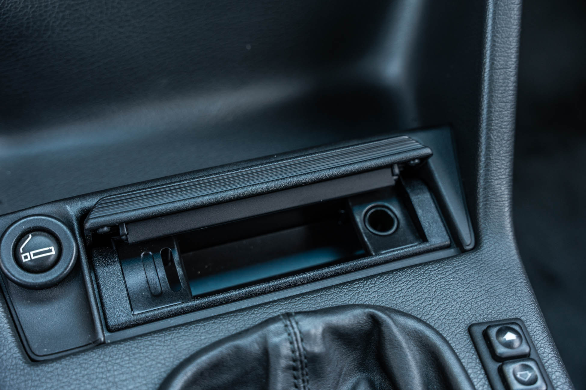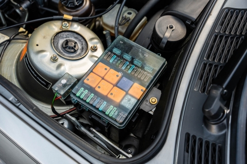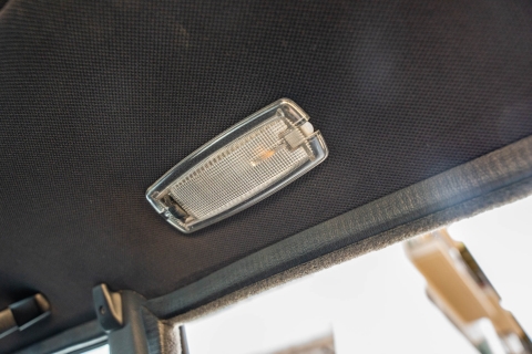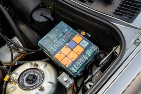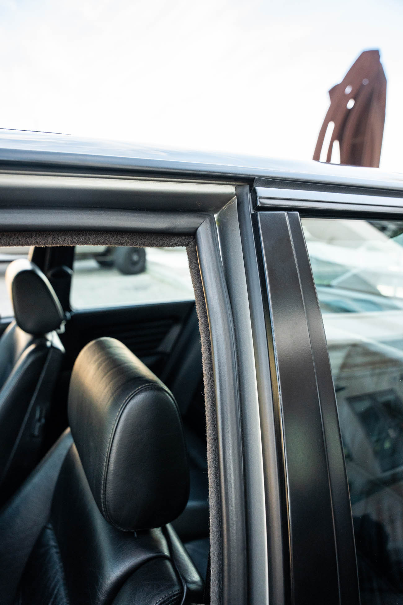 The cabin features manually adjustable front sport seats as well as a rear bench upholstered in black Bison leather. The front seat struts were replaced and the air conditioning system was converted to utilize R134a refrigerant in April 2021, while the final stage resistor was replaced in July 2024. Amenities include an onboard computer, an AM/FM/cassette stereo, cruise control, and power windows, mirrors, and locks.