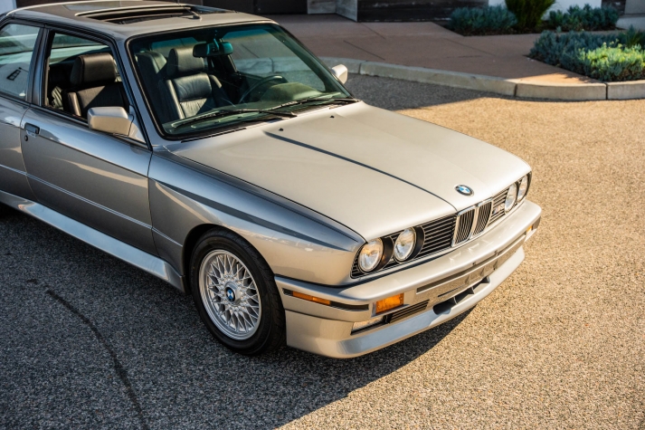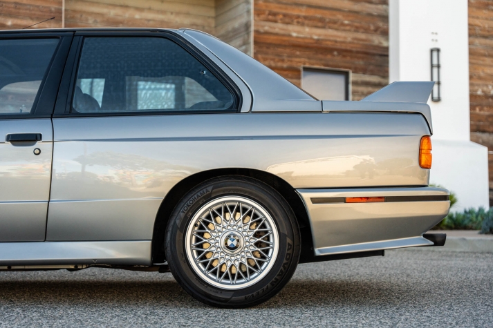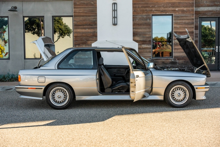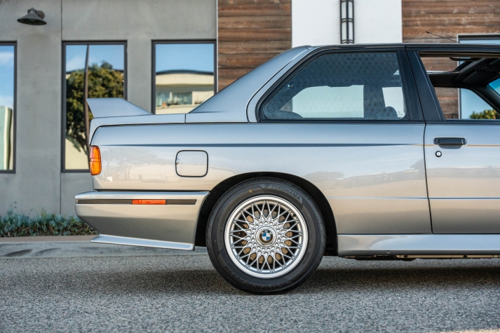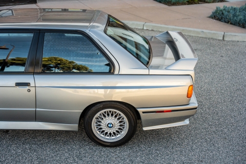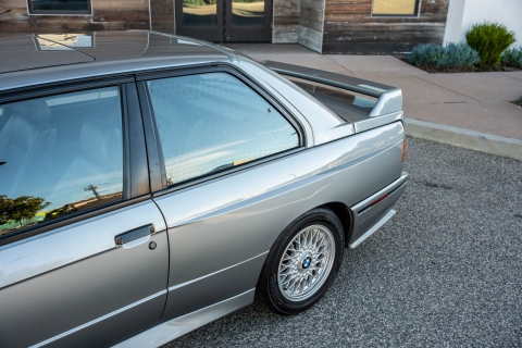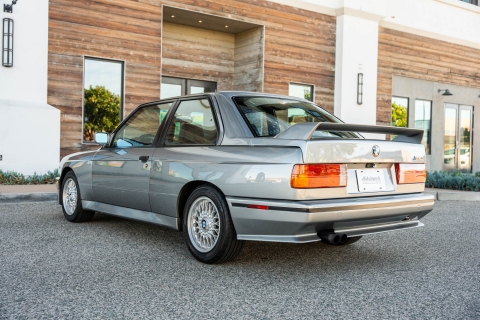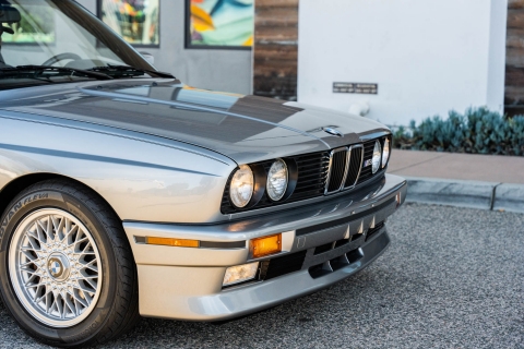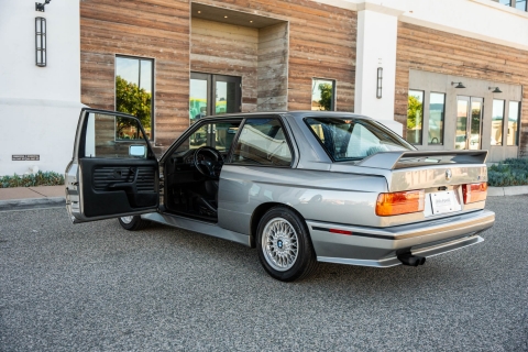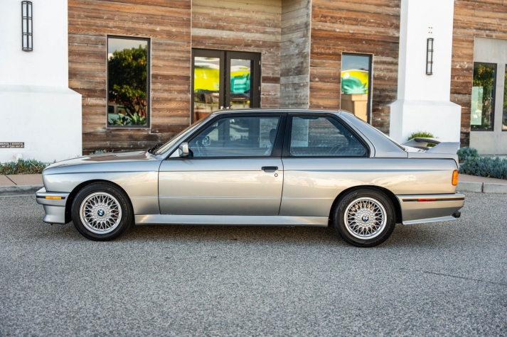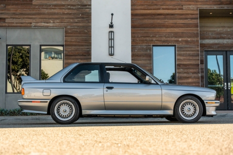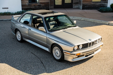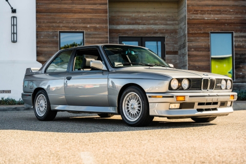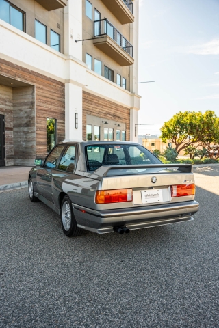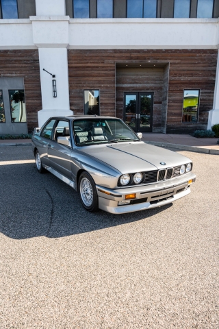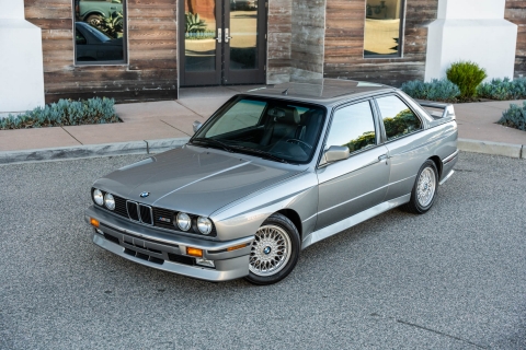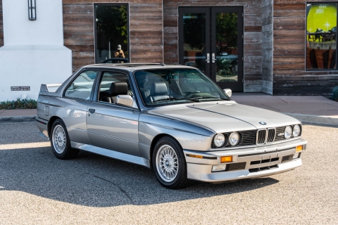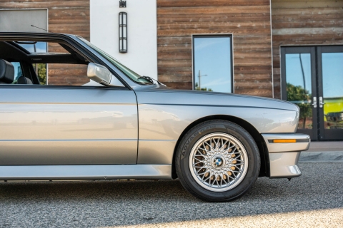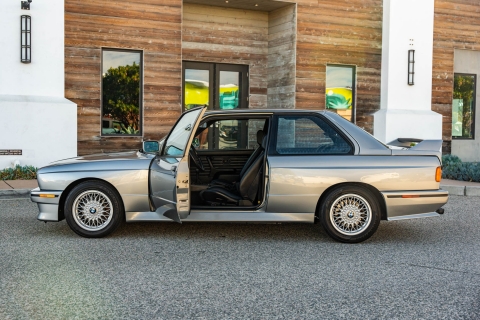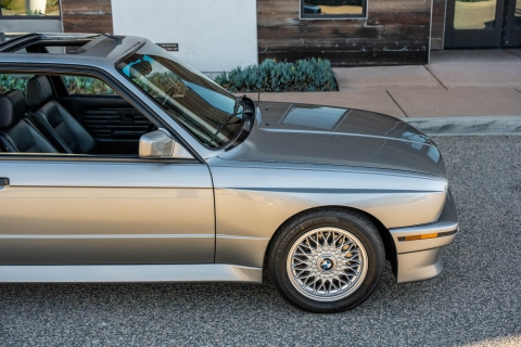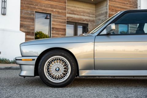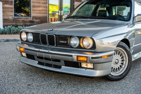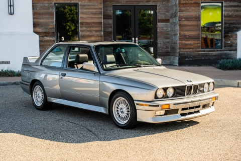 This 1988 BMW M3 is one of approximately 5,300 examples produced for the North American market between 1987 and 1990. Finished in Salmon Silver Metallic over black Bison leather, the car is powered by a 2.3-liter S14B23 inline-four mated to a five-speed manual transmission and a limited-slip differential. Additional equipment includes 15? basketweave wheels, a sunroof, a rear spoiler, fog lights, a Turner Motorsports front subframe reinforcement kit, front sport seats, an AM/FM/cassette stereo, air conditioning, and an onboard computer. Acquired by its current owner in 2025, this E30 M3 shows 49k miles and is now offered on dealer consignment in California with a BMW Classic Birth Certificate, manufacturer’s literature, touch-up paint, partial service records, a clean Carfax report, and a clean Illinois title.