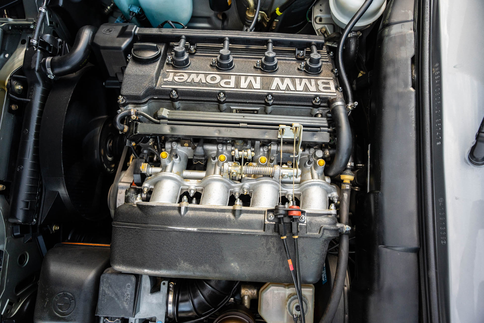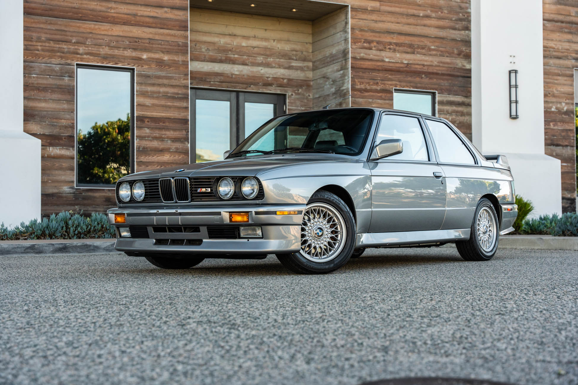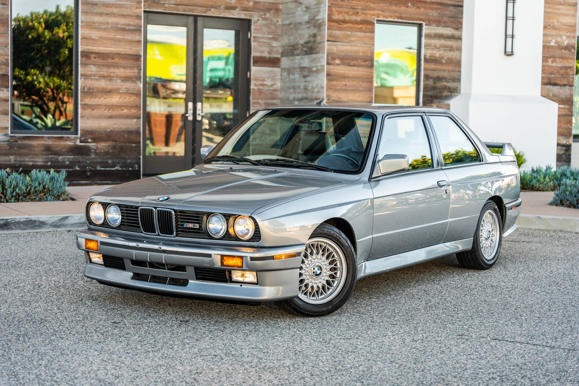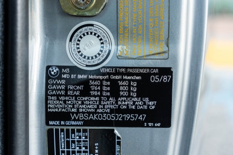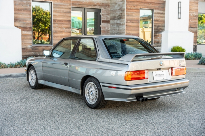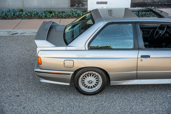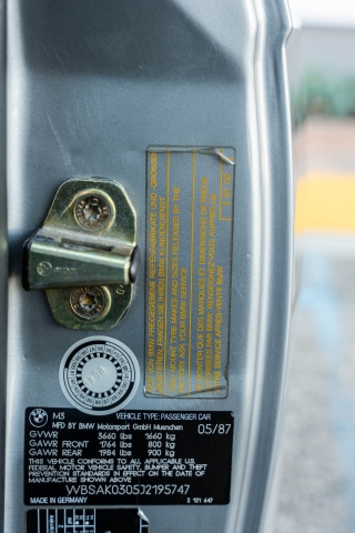 This 1988 BMW M3 is one of approximately 5,300 examples produced for the North American market between 1987 and 1990. Finished in Salmon Silver Metallic over black Bison leather, the car is powered by a 2.3-liter S14B23 inline-four mated to a five-speed manual transmission and a limited-slip differential. Additional equipment includes 15? basketweave wheels, a sunroof, a rear spoiler, fog lights, a Turner Motorsports front subframe reinforcement kit, front sport seats, an AM/FM/cassette stereo, air conditioning, and an onboard computer. Acquired by its current owner in 2025, this E30 M3 shows 49k miles and is now offered on dealer consignment in California with a BMW Classic Birth Certificate, manufacturer’s literature, touch-up paint, partial service records, a clean Carfax report, and a clean Illinois title.