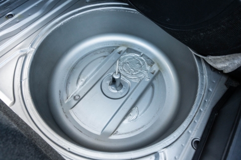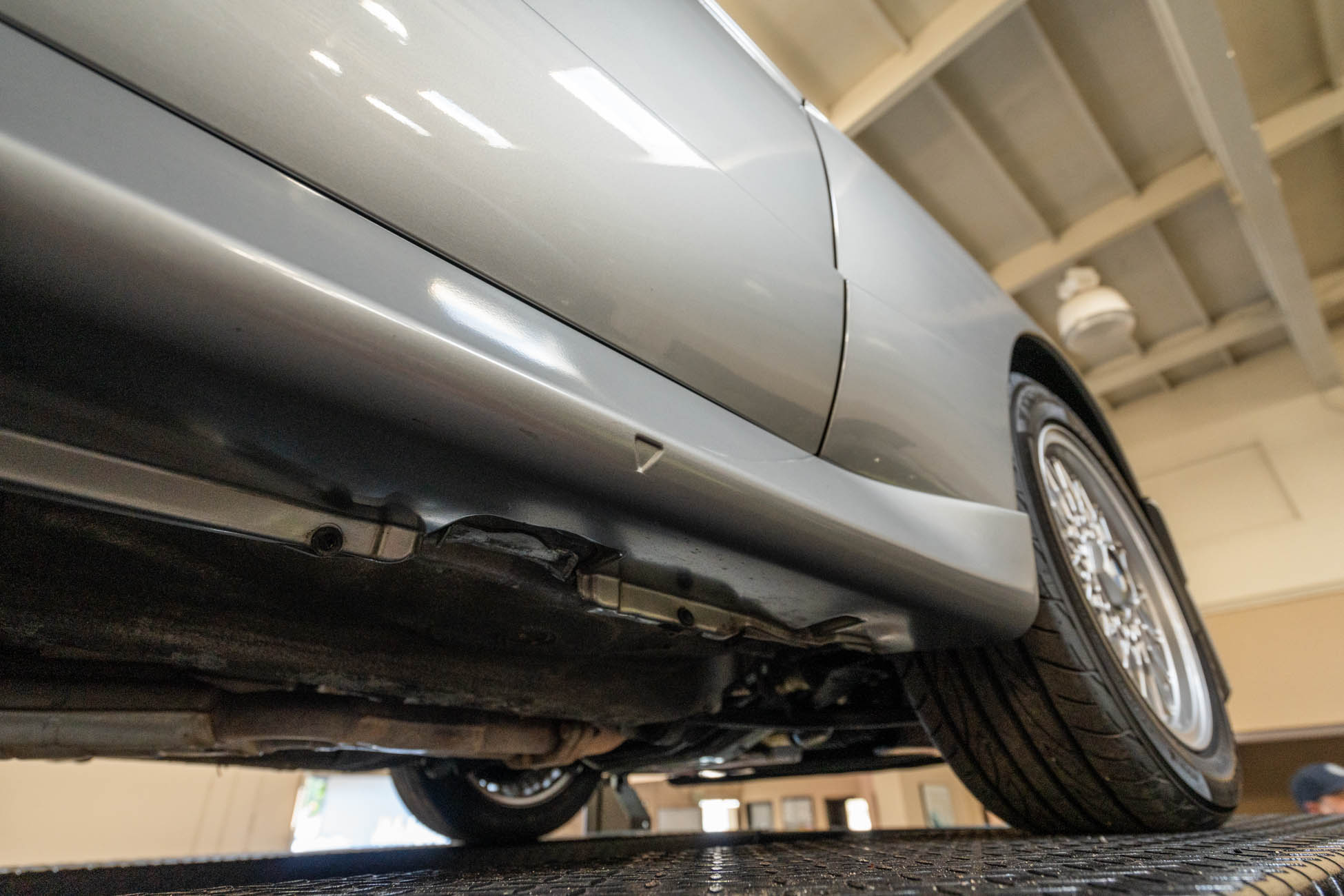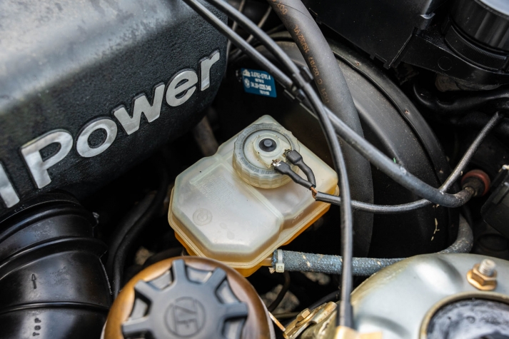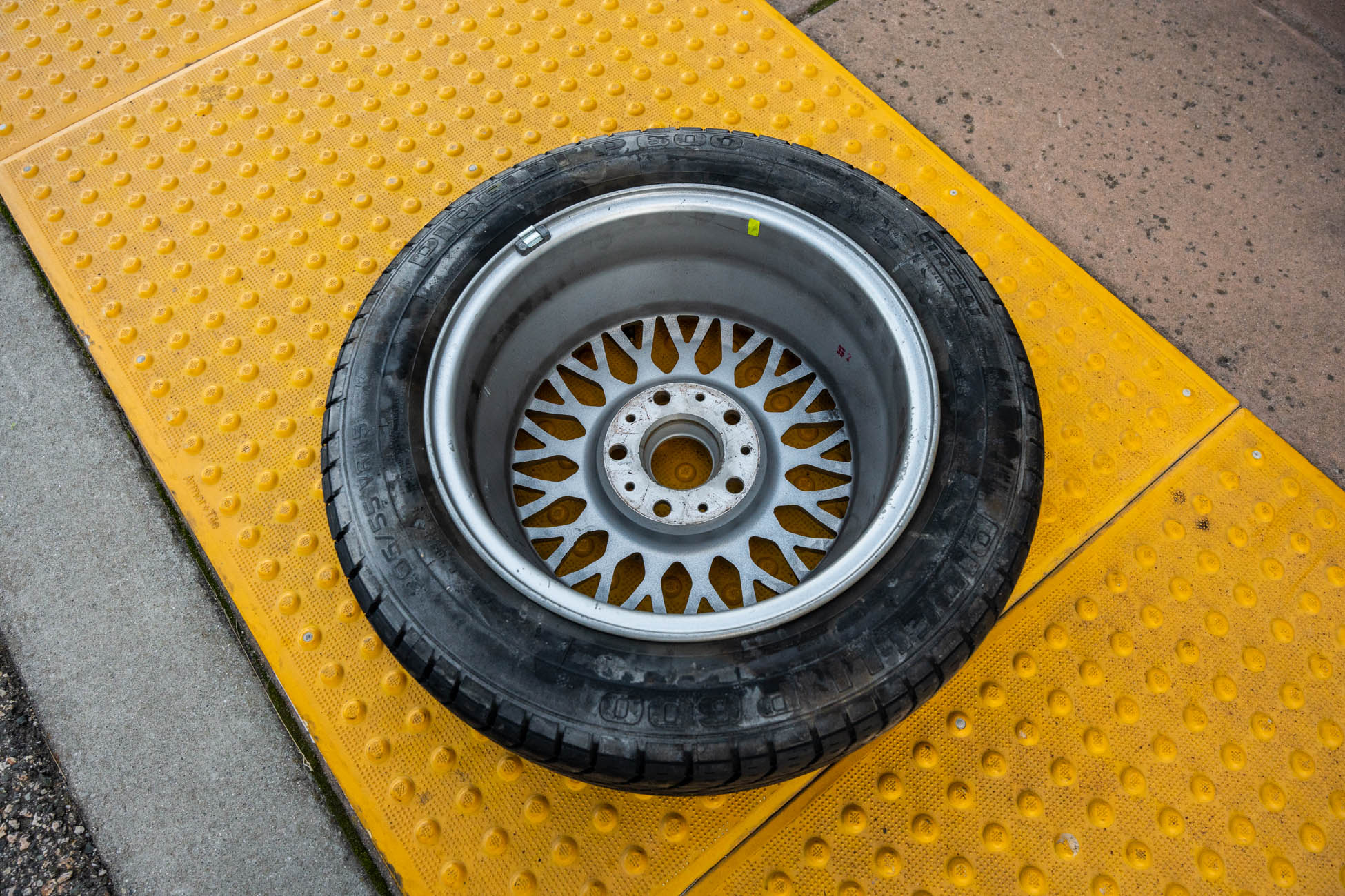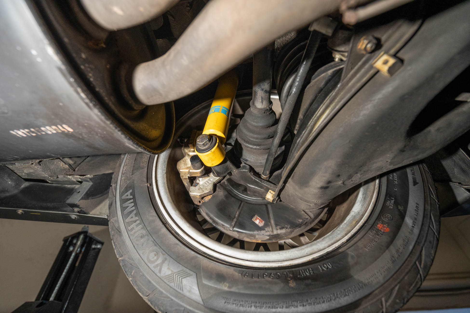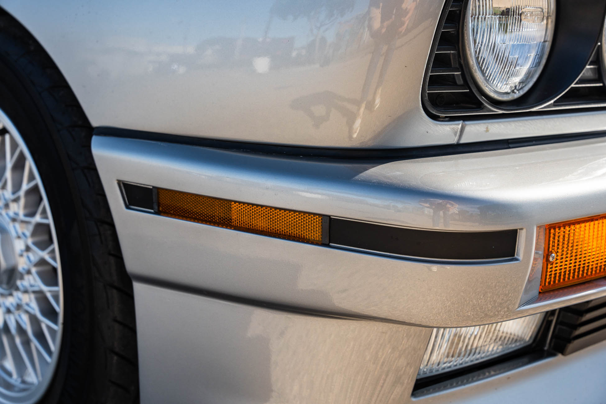 The 15? basketweave wheels feature BMW center caps and are wrapped in 205/55 Yokohama Advantage Fleva tires. A Turner Motorsports front subframe reinforcement kit was installed in April 2021, and the MacPherson strut/semi-trailing arm suspension was revised for the M3 with a thicker rear anti-roll bar as well as shorter and stiffer springs. The brake fluid was flushed in June 2024.