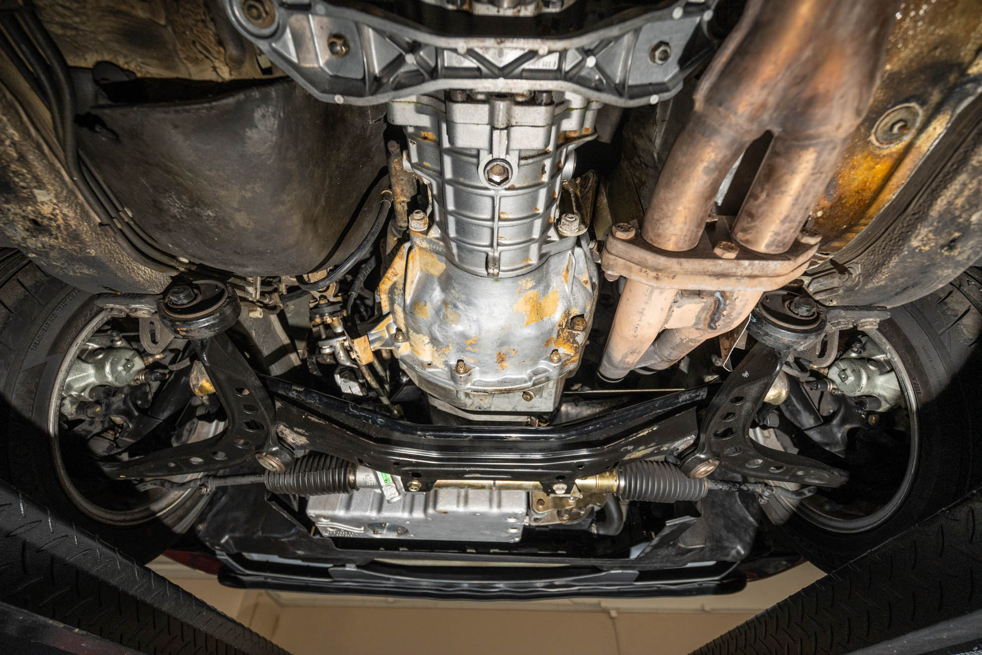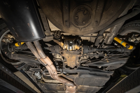 Power is sent to the rear wheels through a Getrag five-speed manual transmission and a limited-slip differential. The muffler hanger was replaced in April 2021, and the fluids were changed in June 2024.