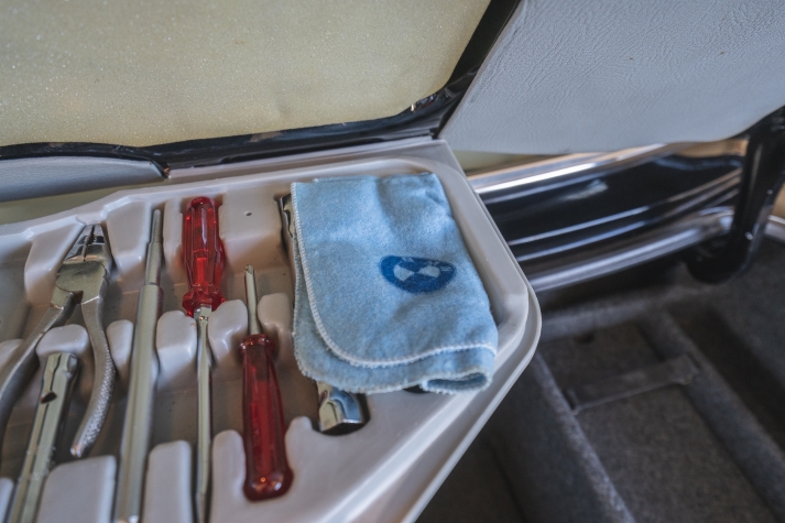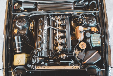 The four-spoke airbag steering wheel frames a 170-mph speedometer, a tachometer, and auxiliary gauges. The six-digit odometer shows just over 110k miles, approximately 2k of which were added during current ownership. The selling dealer notes an inspection light is currently illuminated.The 3.5-liter S38 inline-six features individual throttle bodies and was factory rated at 256 horsepower and 243 lb-ft of torque. Records indicate an oxygen sensor was replaced in February 2020, and a selection of service records included in the sale are shown in the gallery below.
