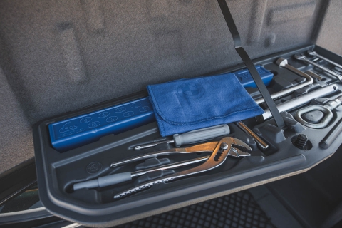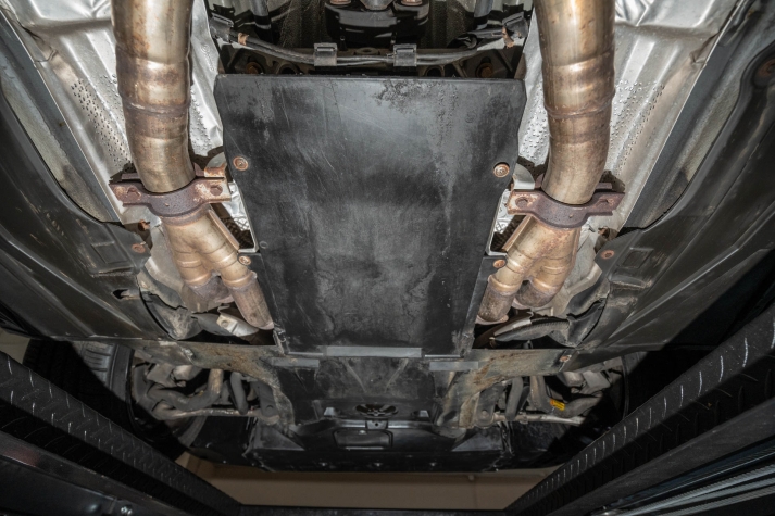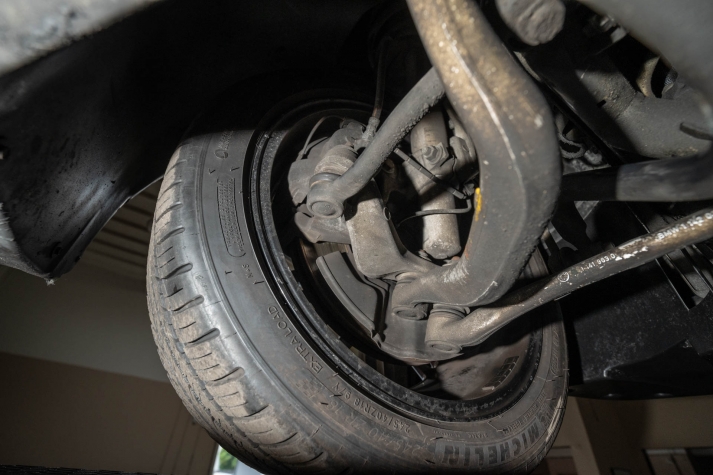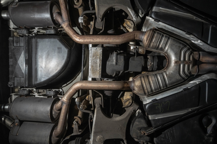 Power is sent to the rear wheels through a Getrag six-speed manual transmission and a limited-slip differential. The clutch and flywheel were replaced in 2021.