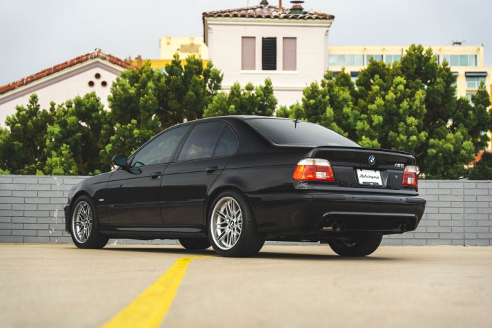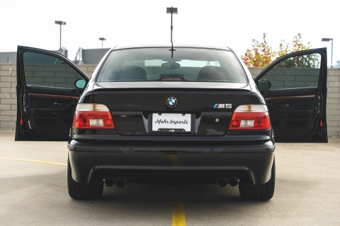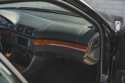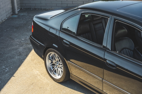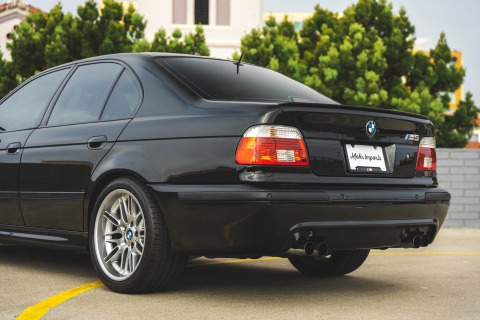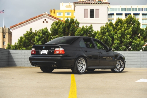 This 2002 BMW M5 spent time in New York and California before the current owner’s acquisition on BaT in January 2024 and now has 40k miles. Subsequent work included repairing the 18? Style 65 wheels, repainting the front bumper cover, and refreshing the xenon headlights. It is powered by a 4.9-liter V8 paired with a six-speed manual transmission and is finished in Jet Black over black Nappa leather upholstery. The car is equipped with a limited-slip differential, a sunroof, fog lights, Park Distance Control, a rear spoiler, heated power-adjustable front seats, dual-zone automatic climate control, wood trim, and navigation. This E39 M5 is now offered in California on dealer consignment with spare parts, service records, a clean Carfax report, and a clean Texas title.