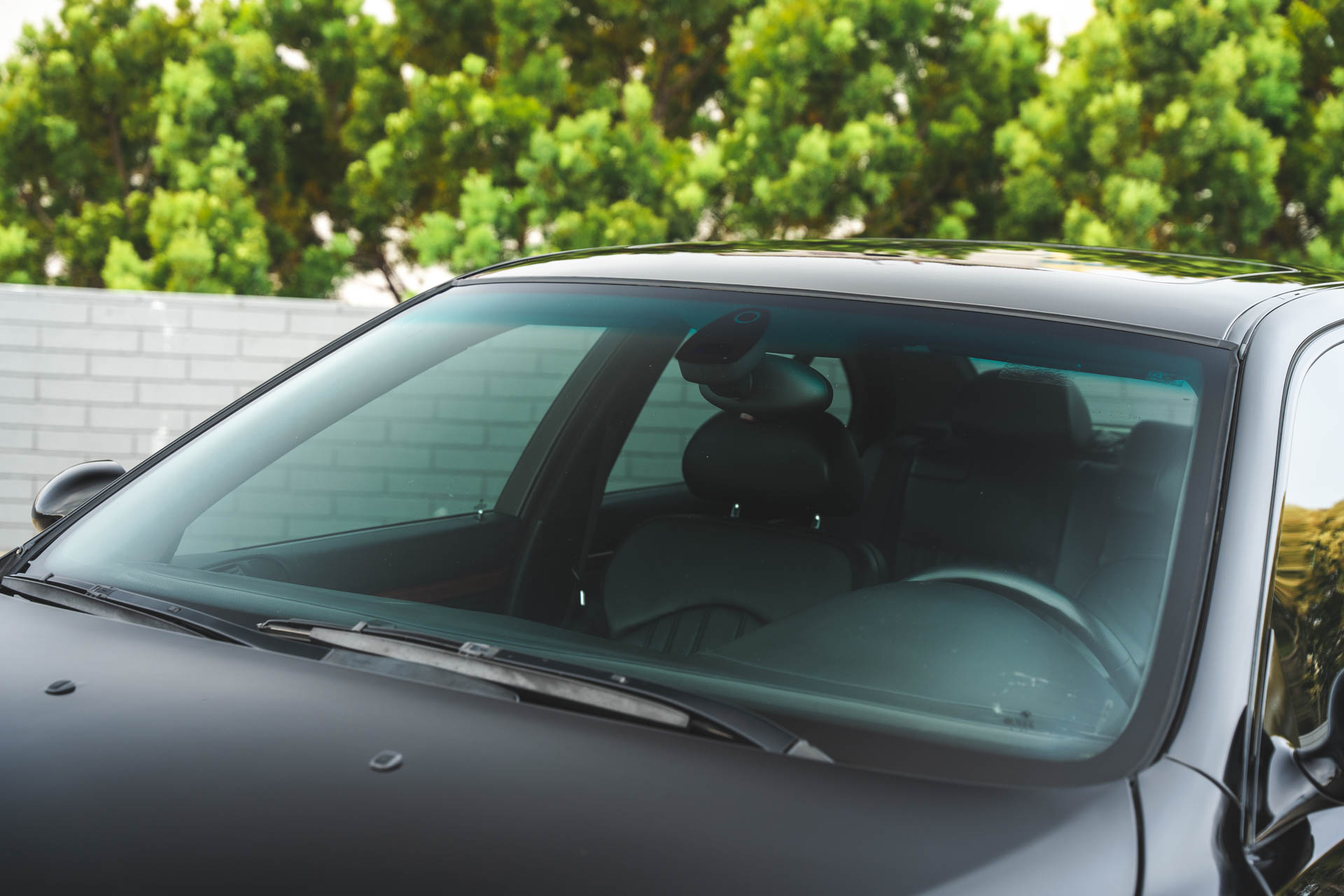 The car is finished in Jet Black with Shadowline trim and features xenon headlights with washers, fog lamps, front and rear parking sensors, a glass sunroof, a trunk lid spoiler, rain-sensing wipers, and quad exhaust outlets. Work in March 2024 included repairing and repainting the front bumper cover, performing paintwork on the hood and fenders, applying window tint, removing dings, and replacing the windshield gasket, front bumper cover trim, and fender liners. The selling dealer reports the headlights were refreshed and a paint correction and ceramic coating were carried out at that time. Photos of paint meter readings are shown in the gallery below.
