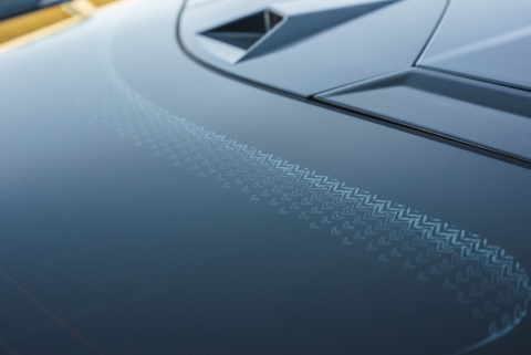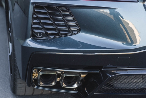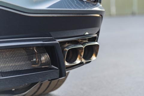 Carbon-flash-painted aluminum wheels feature a machined edge and measure 19? and 20? in diameter. They are mounted with 245/35 front and 305/30 rear Michelin Pilot Sport 4S tires, and the car was optioned with red-painted brake calipers as well as magnetic ride control and a front lift system with memory.