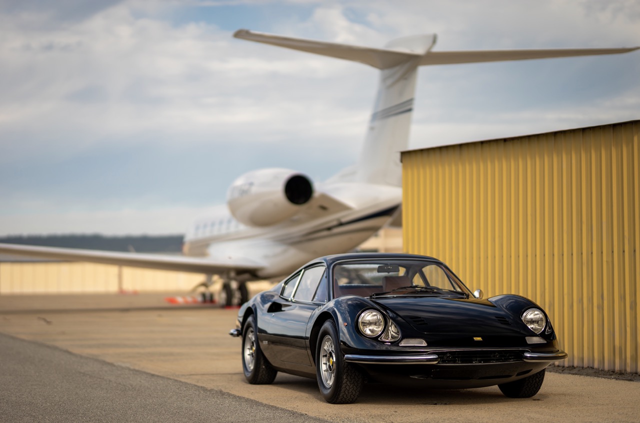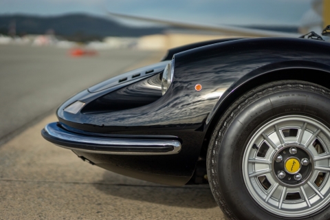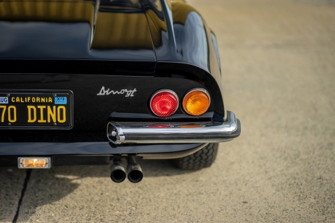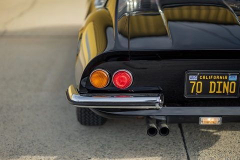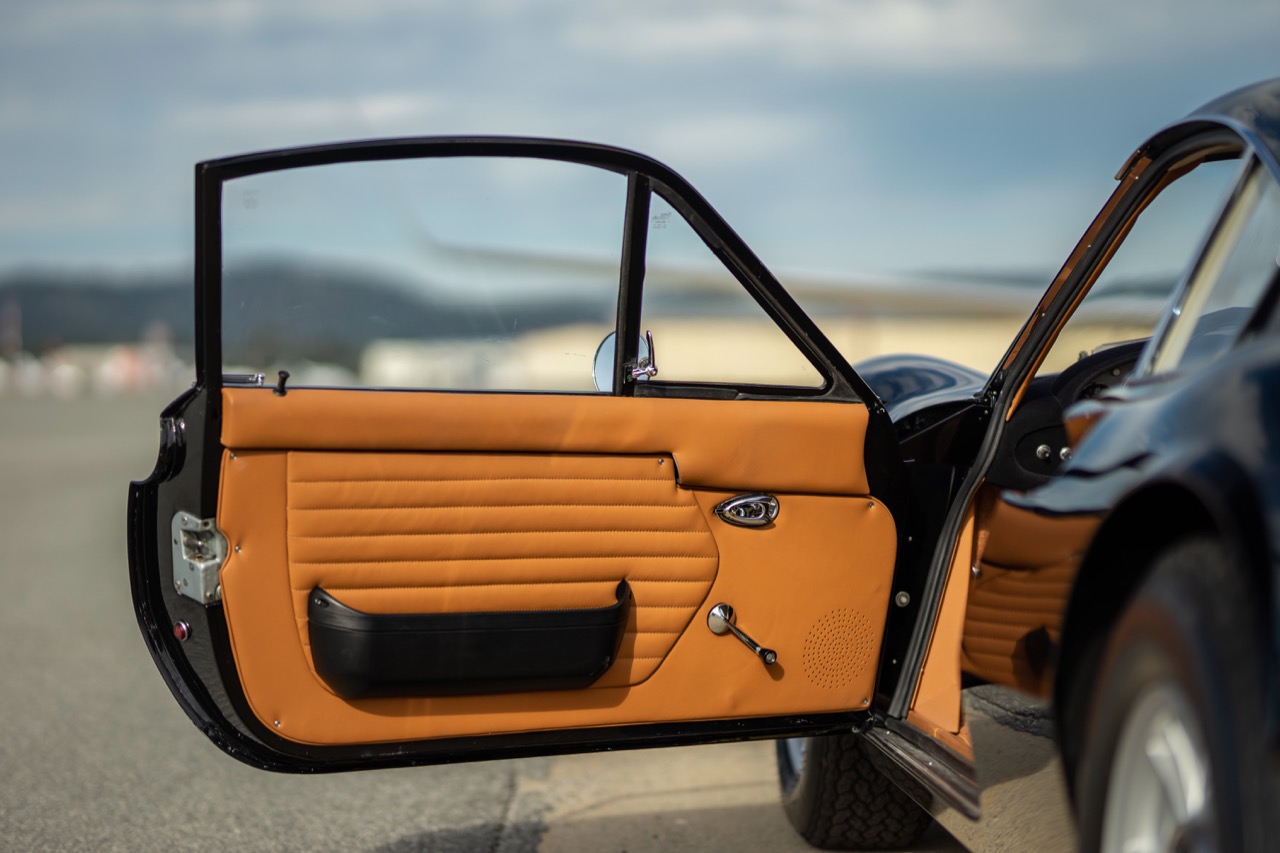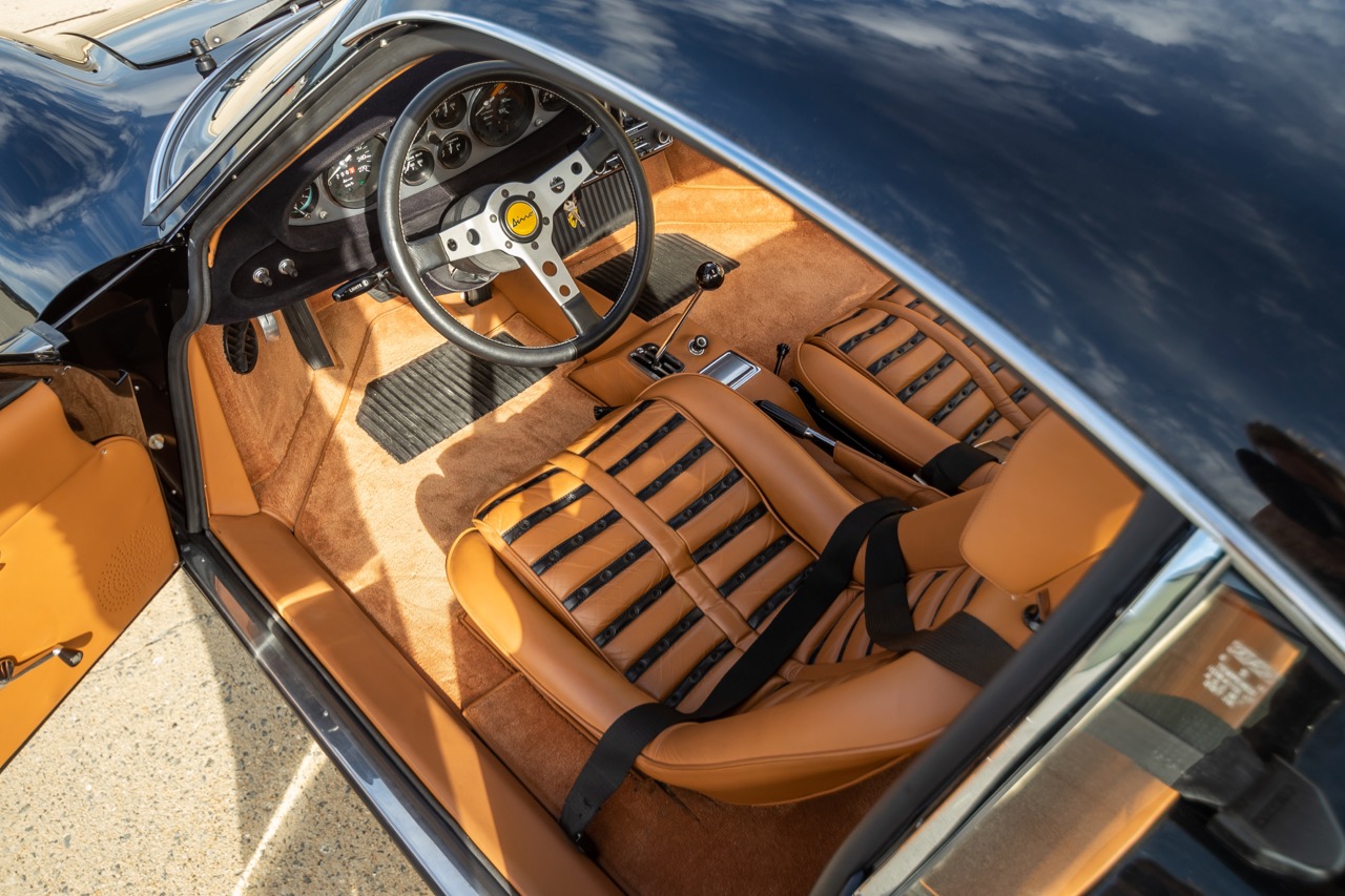 Under the new caretaker the Dino has benefitted from a full restoration from Monterey County local shops and specialists. Originally delivered as a Rosso Corsa over black vinyl. Now presented in Black over Tan Connelly leather with Daytona style inserted seats and interior.