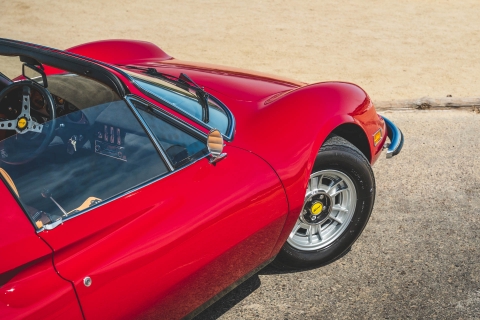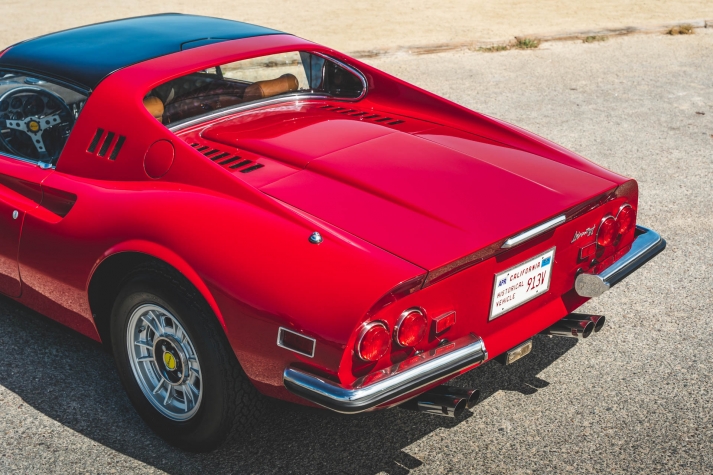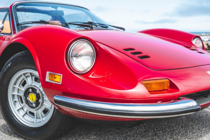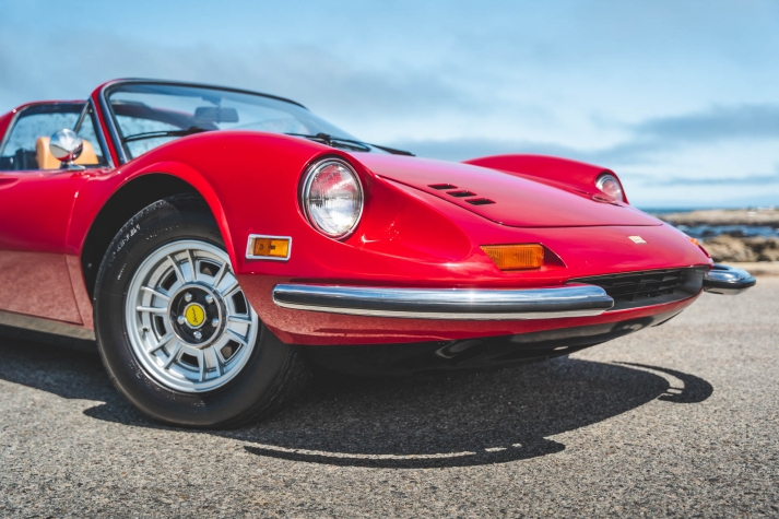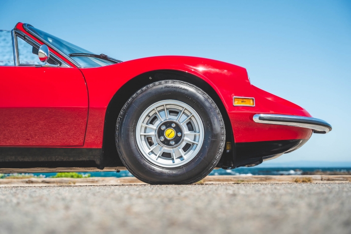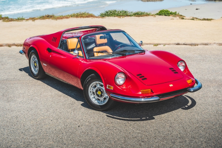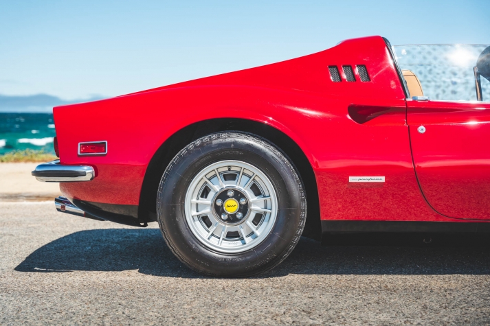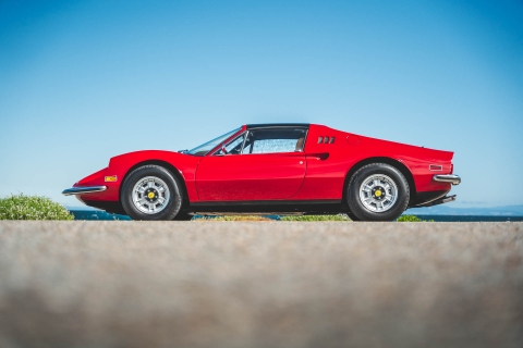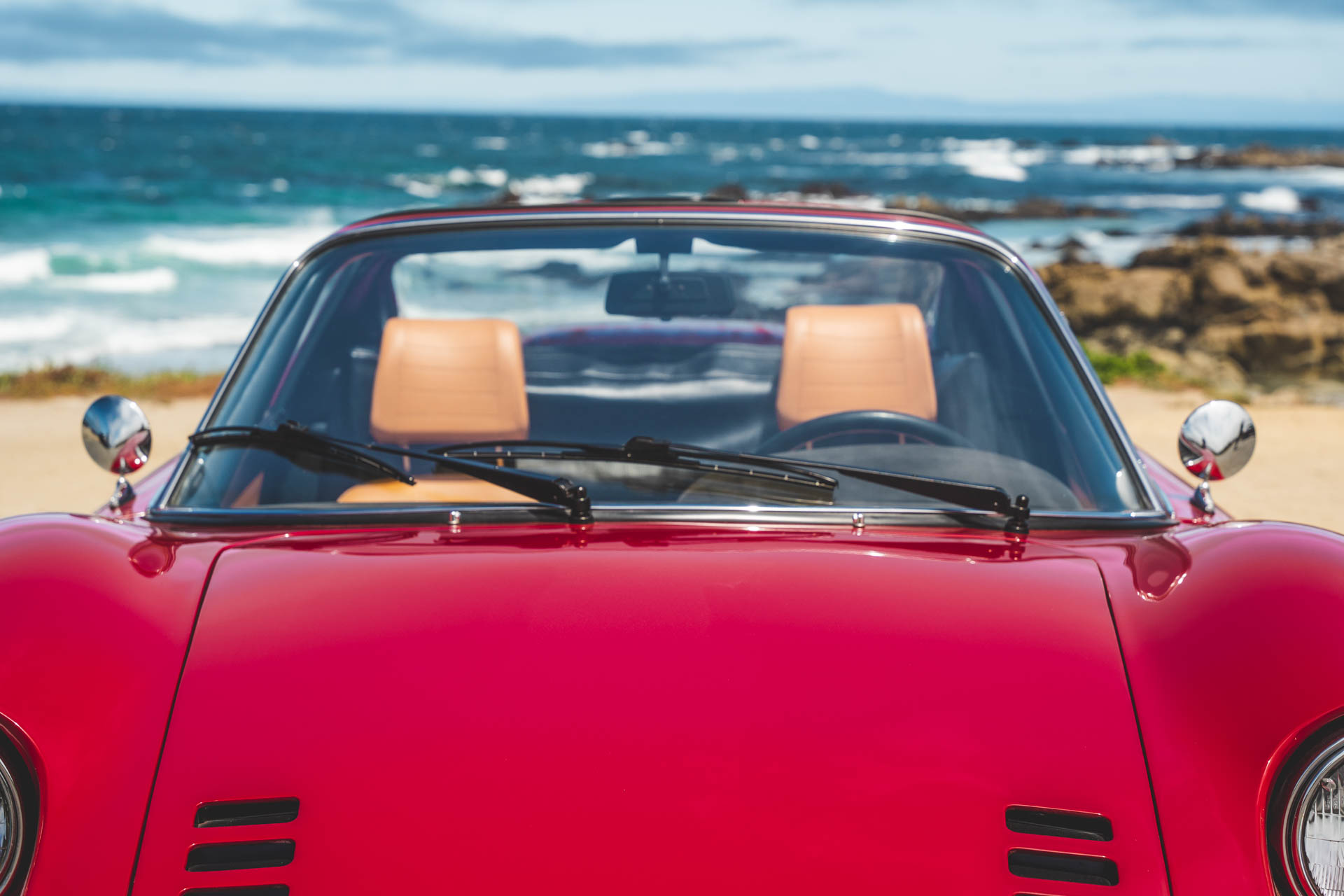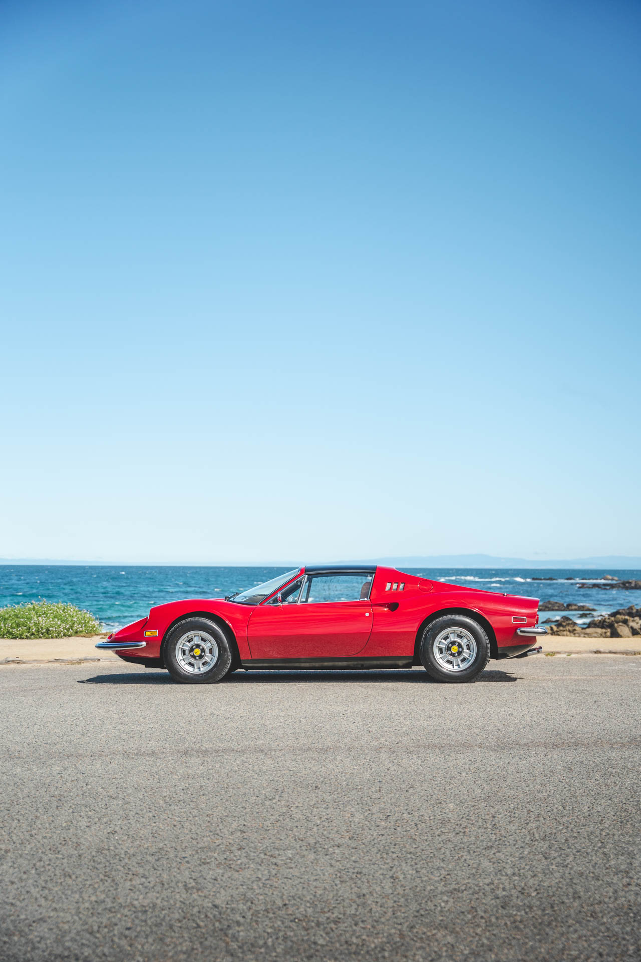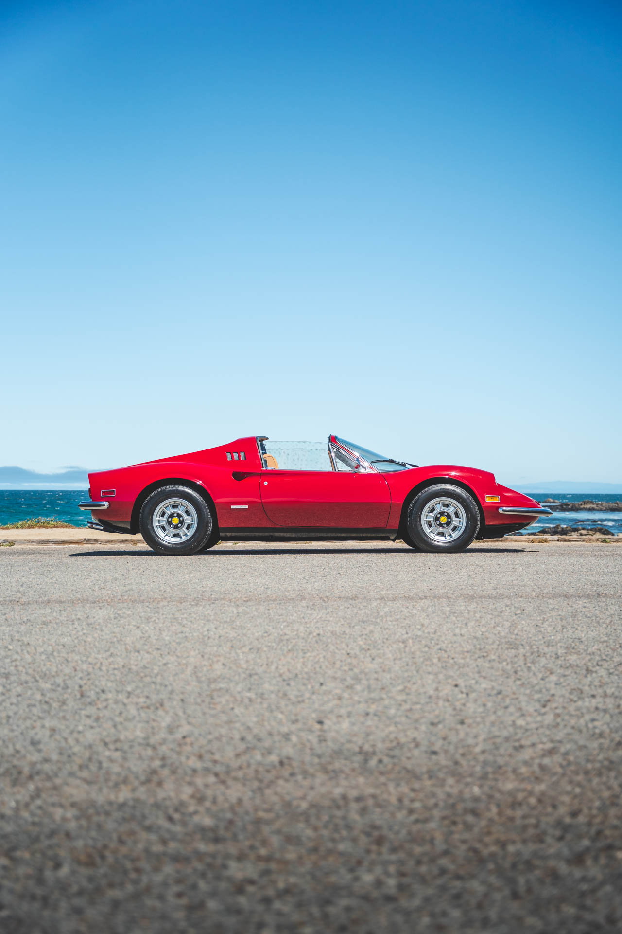 This 1973 Ferrari Dino 246 GTS is said to have been delivered new via Luigi Chinetti Motors to Bill Harrah’s Modern Classic Motors. It spent time in several states and underwent a refurbishment before it was purchased by the current owner in 2014. The car is finished in red over tan leather, and power comes from a 2.4-liter DOHC V6 mated to a five-speed manual transaxle. Features include triple Weber carburetors, four-wheel ventilated disc brakes, 14” Cromodora alloy wheels, Daytona-style seats, a black removable targa panel, air conditioning, power windows, and a Becker Mexico cassette player. This 246 GTS is now offered on dealer consignment as part of Mohr Imports’ Monterey Collection Sale with a tool kit and jack, a Marcel Massini Report, service records, and a clean California title in the owner’s name.