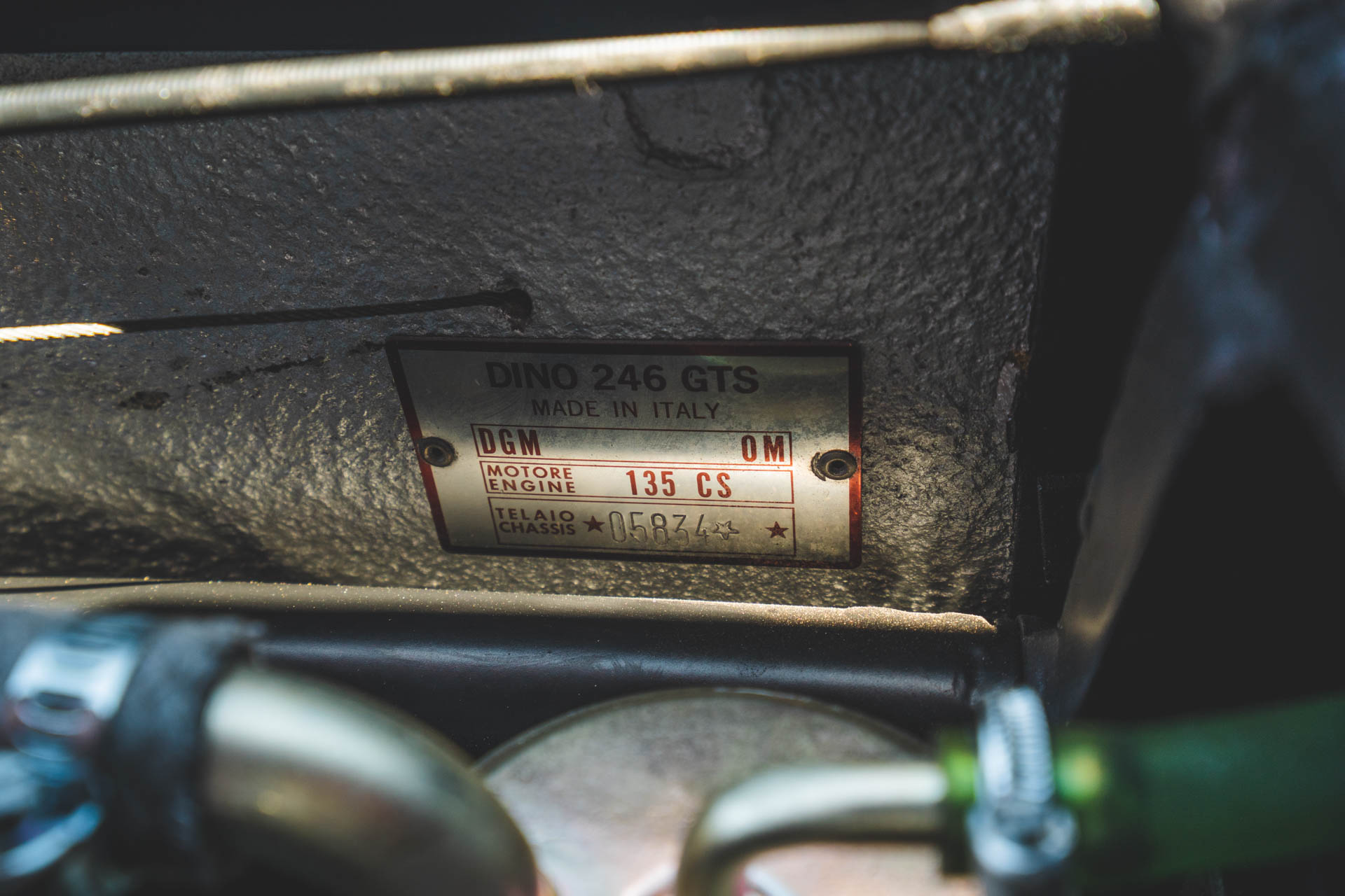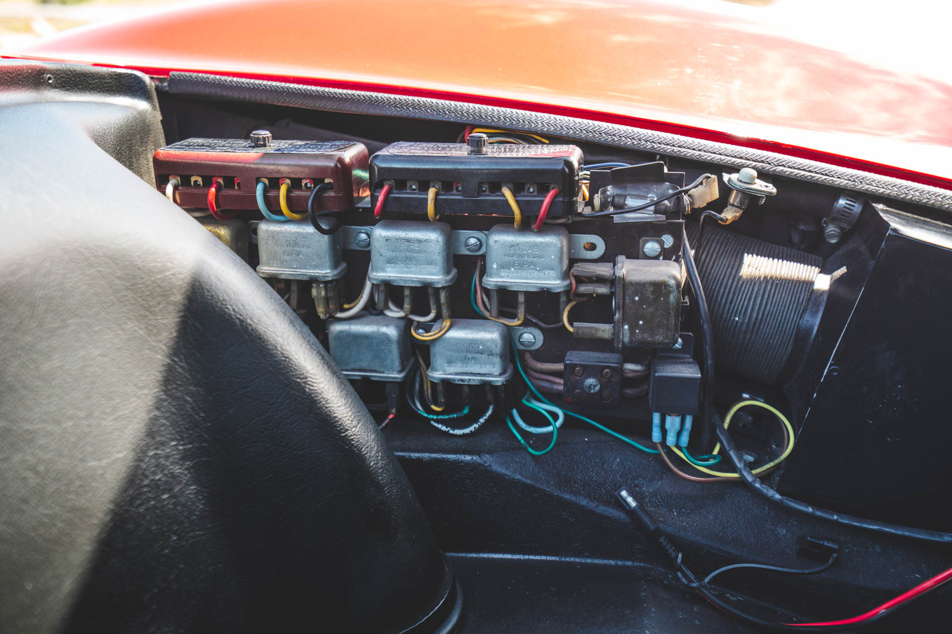 The 2.4-liter Tipo 135CS DOHC V6 features a 65° angle between cylinder banks, dual overhead camshafts, Magneti Marelli ignition, and a trio of two-barrel Weber carburetors. The engine was rebuilt by Grand Prix Motors of Campbell, California in February 2015. Invoices from the work can be seen in the gallery.