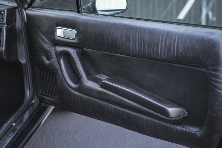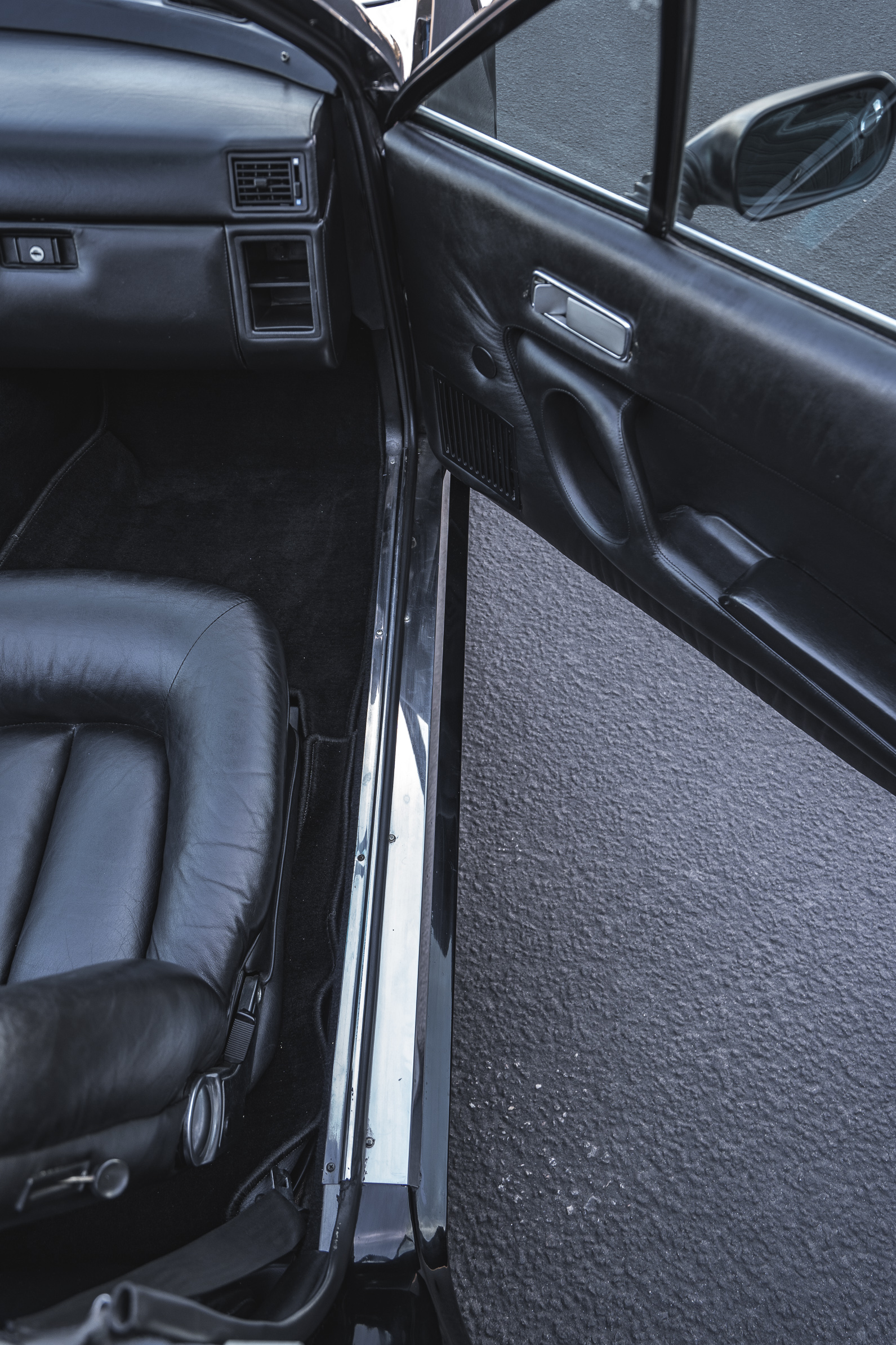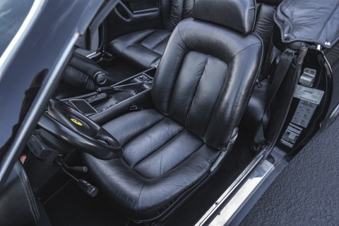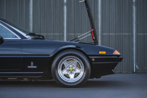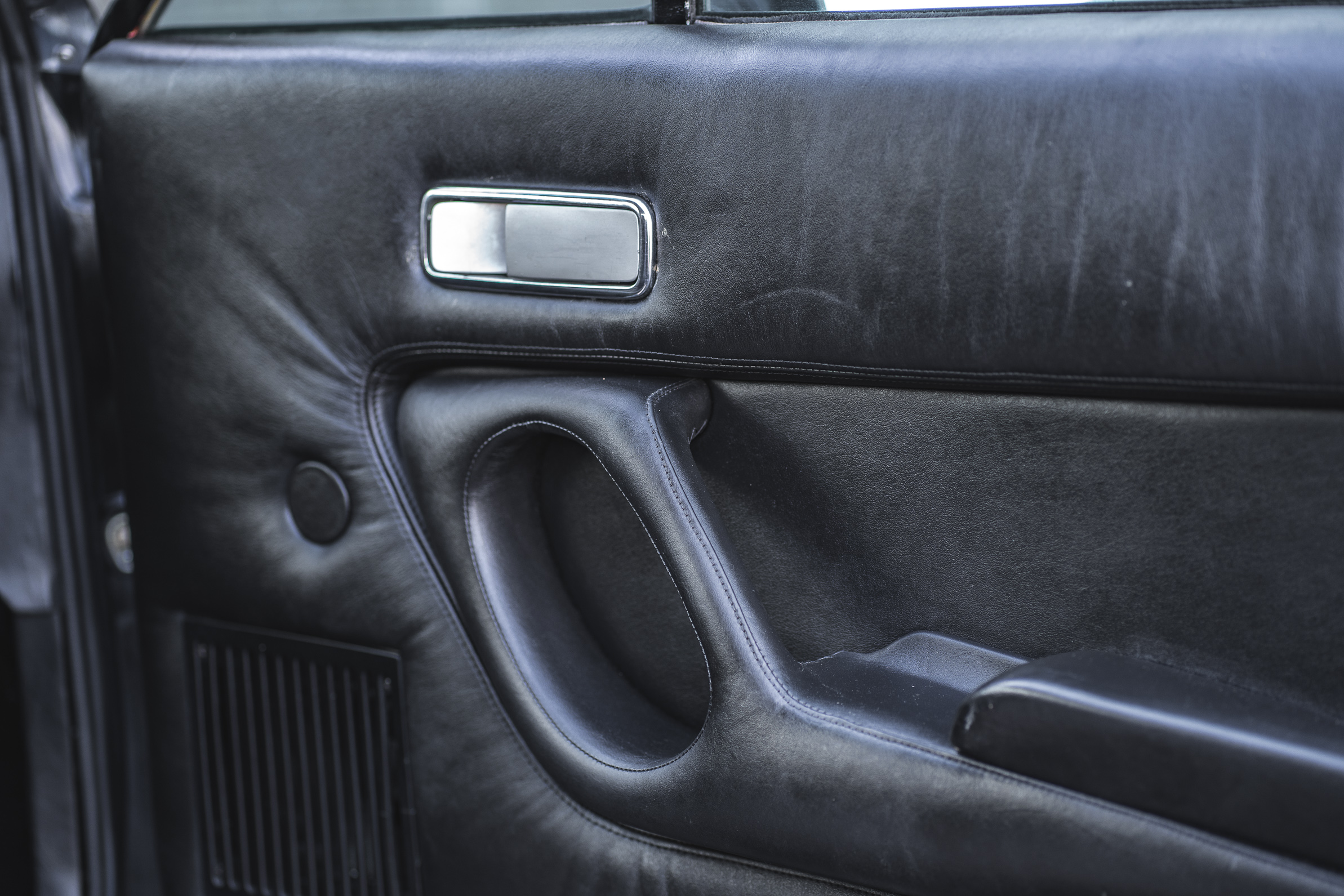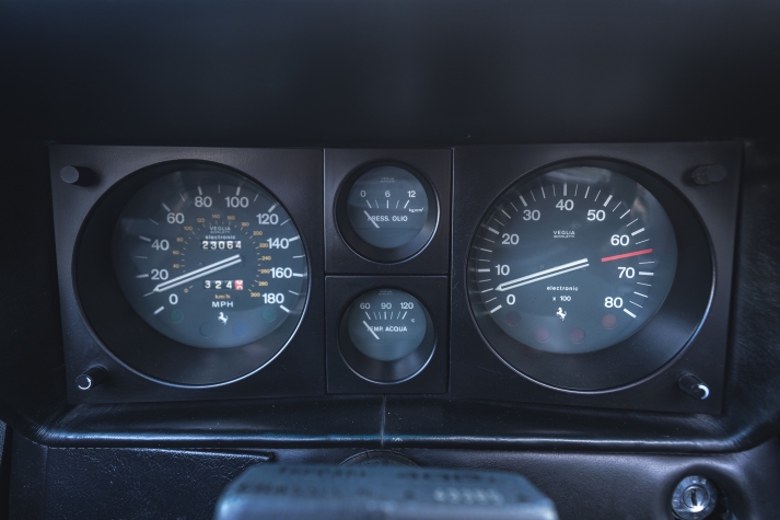 A Momo steering wheel sits ahead of Veglia Borletti instrumentation that consists of a 180-mph speedometer, a tachometer with a 6,500-rpm redline, and auxiliary gauges that extend to the center stack. The five-digit odometer shows 23k miles, approximately 500 of which have been added by the current owner.The 4.8-liter quad-cam V12 features Bosch K-Jetronic fuel injection, and an MSD 6AL-2 ignition box has been installed. Output was rated at 315 horsepower when new, which is delivered to the rear wheels through a three-speed automatic transmission.