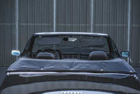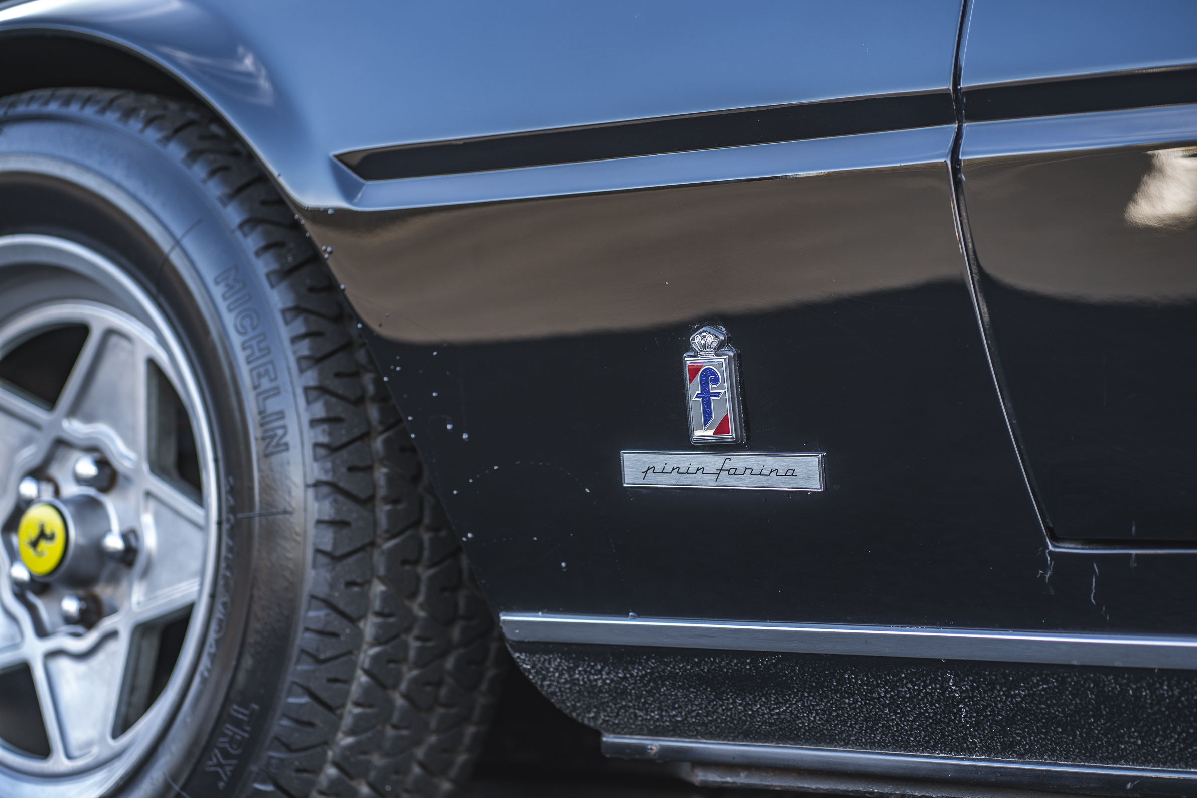 This 1983 Ferrari 400i underwent a convertible conversion under prior ownership, and the car was owned by Rock & Roll Hall of Fame member Rod Stewart in the early 1990s. Finished in black over black, the car is powered by a 4.8-liter V12 paired with a three-speed automatic transmission. Features include a black soft top and matching boot cover, metric five-spoke wheels, Bosch fuel injection, MSD ignition, and a Sony stereo. The current owner acquired the car in 2016 and has since added about 500 of its 23k indicated miles. This 400i convertible is now offered on dealership consignment with a copy of a 1991 title in Roderick Stewart’s name as well as a clean California title.