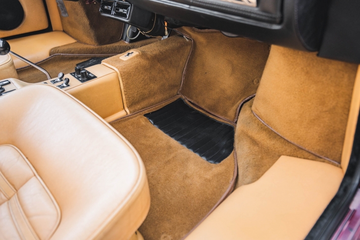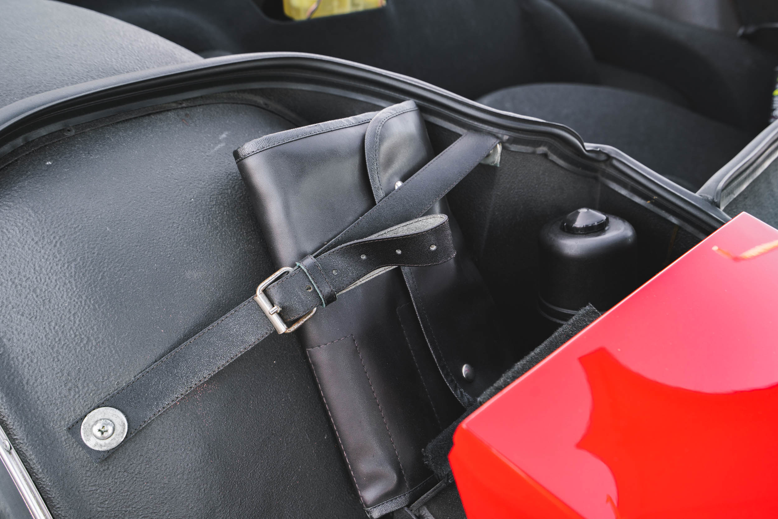 This 1984 Ferrari 512 BBi is one of 1,007 fuel-injected Berlinetta Boxers built over a four-year production run, and it is powered by a mid-mounted 4.9L flat-12 paired with a five-speed manual transaxle. Finished in Rosso Corsa over tan leather, the car features center-lock metric wheels, disc brakes, Bosch fuel injection, air conditioning, a Bluetooth stereo, aftermarket speakers, and a gated shifter. The car is said to have been individually imported from Europe to the United States when new and remained in Georgia with its original owner until 1999, when it was acquired by an owner in California’s Bay Area, from whom the current owner acquired it in 2011. Work in 2022 included a timing-belt service, adjusting the valves, setting the timing, resealing the transaxle, and replacing the tires, axle boots, spark plugs, air filters, exhaust gaskets, and drive belts. Now showing 18k miles, this 512 BBi is offered on dealer consignment as part of the Mohr Imports Monterey Collection Sale with recent service records, manufacturer’s literature, uninstalled audio equipment, a tool roll, a clean Carfax report, and a clean California title.