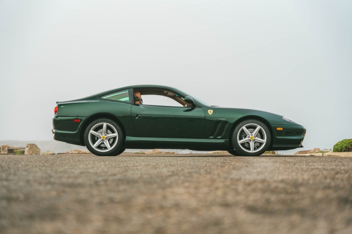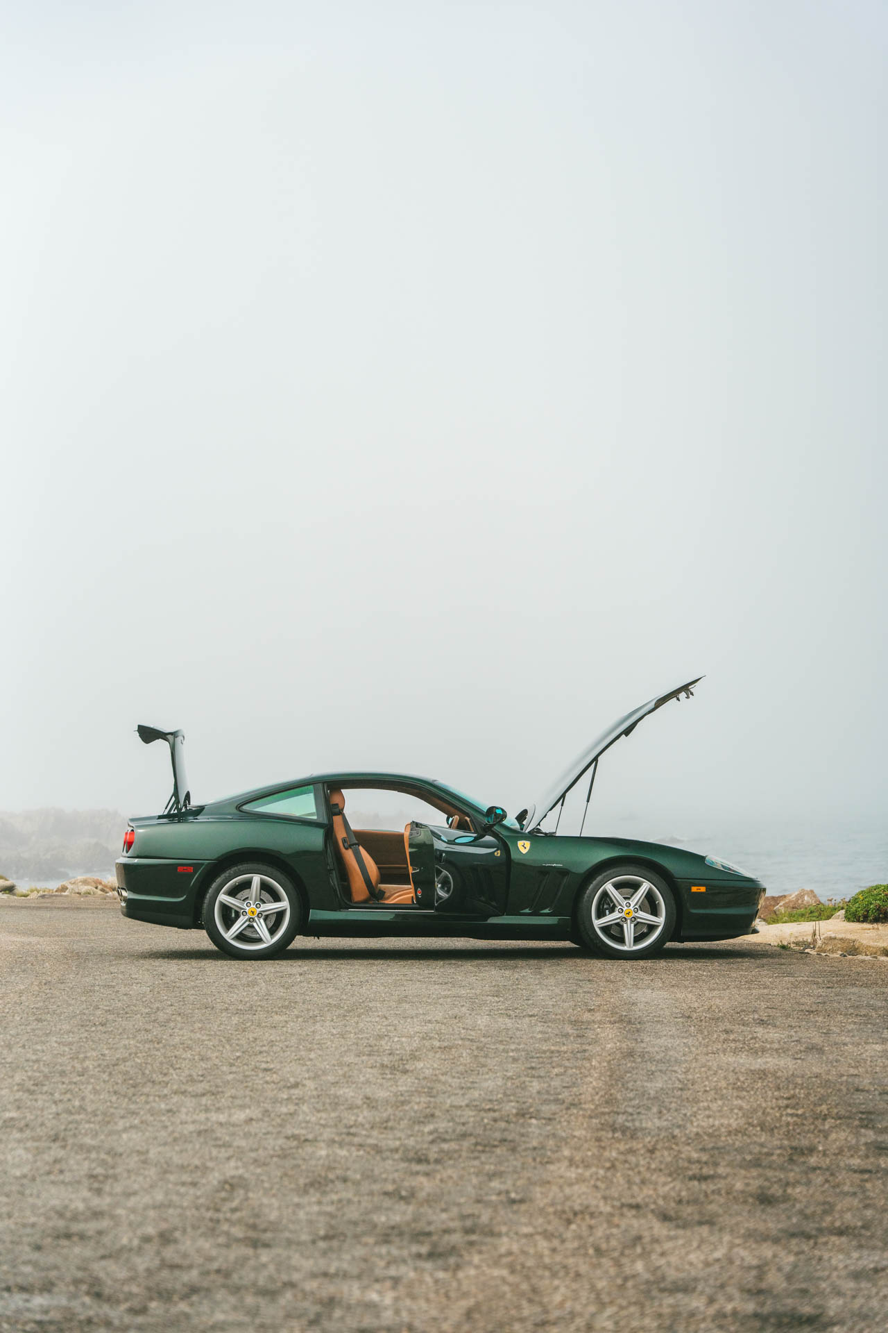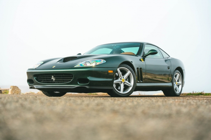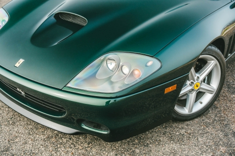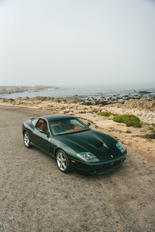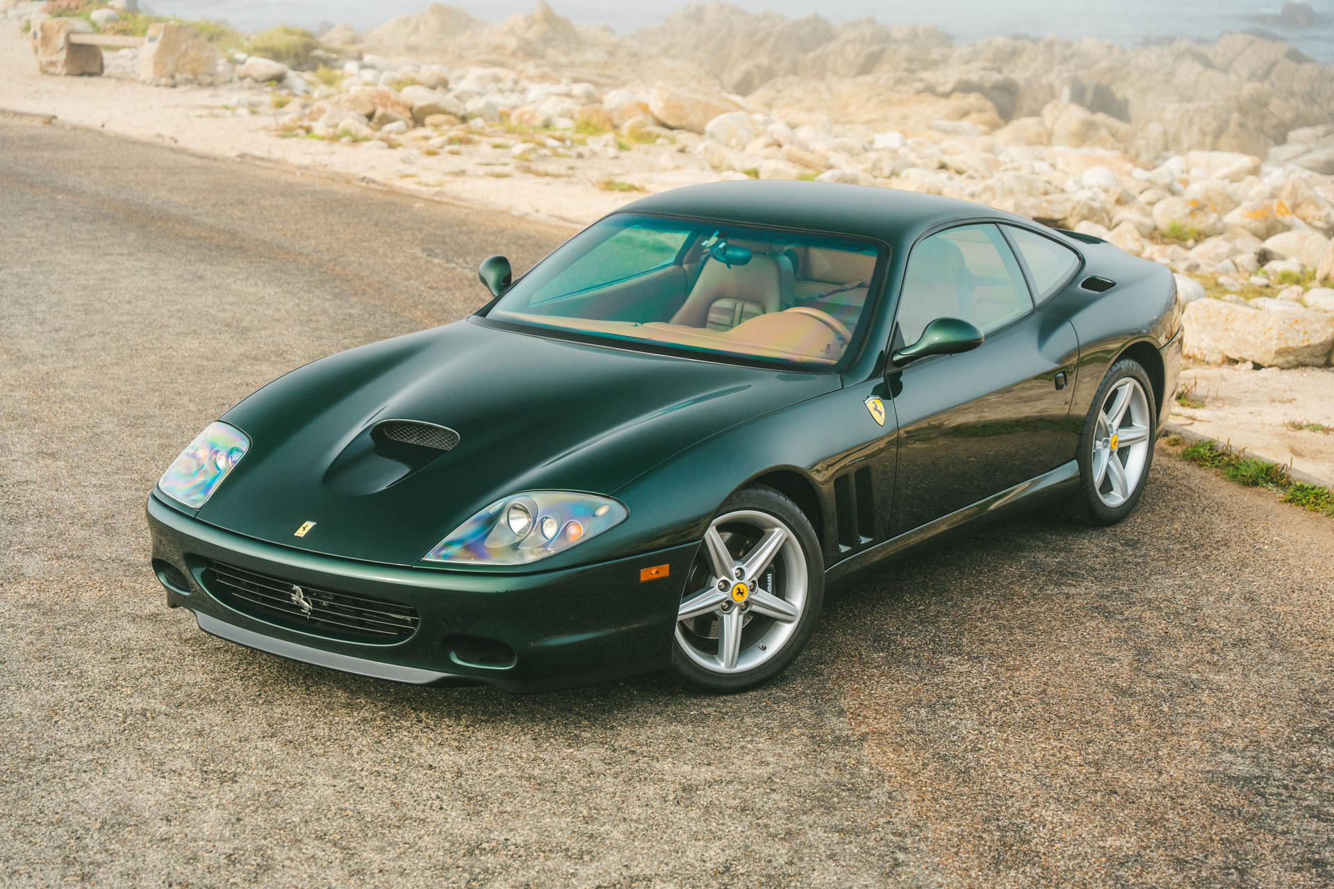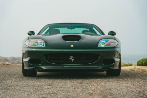 This 2002 Ferrari 575M Maranello is powered by a 5.7-liter V12 paired with a six-speed gearbox that was converted to manual operation in August 2016. It is finished in Verde Zeltweg over Cuoio leather, and it is equipped with a Tubi exhaust, a limited-slip differential, 18? five-spoke alloy wheels, a Scud Ing LED light kit, xenon headlights, Scuderia Ferrari fender shields, power-adjustable Daytona-style seats, a Continental CD stereo, and automatic climate control. A timing belt service was performed in July 2022 following the car’s acquisition one month prior by the current owner, who has since driven it approximately 5,500 miles. This 575M Maranello is now offered on dealer consignment as part of Mohr Imports’ Monterey Car Week Collection with the owner’s manual, a decade of service records, a typed maintenance log, spare parts, tools, and a clean California title.