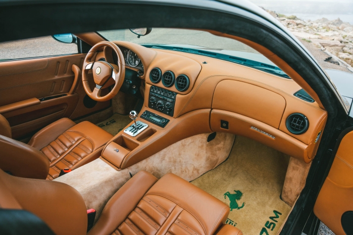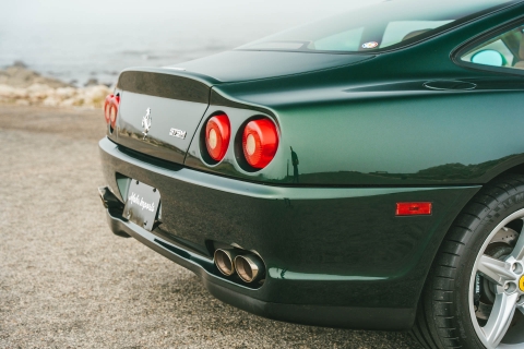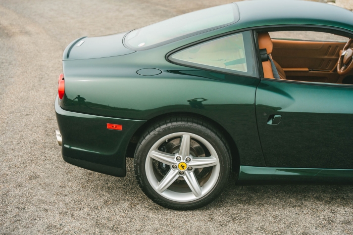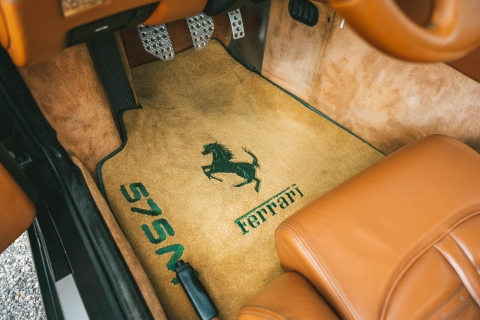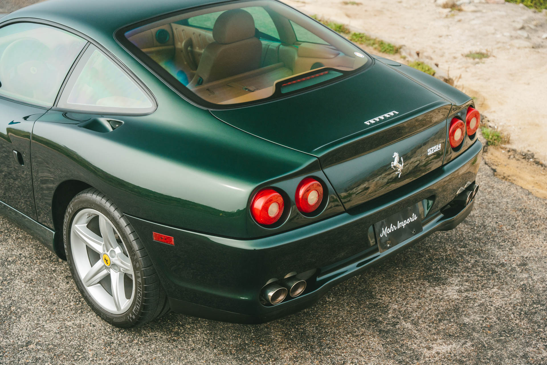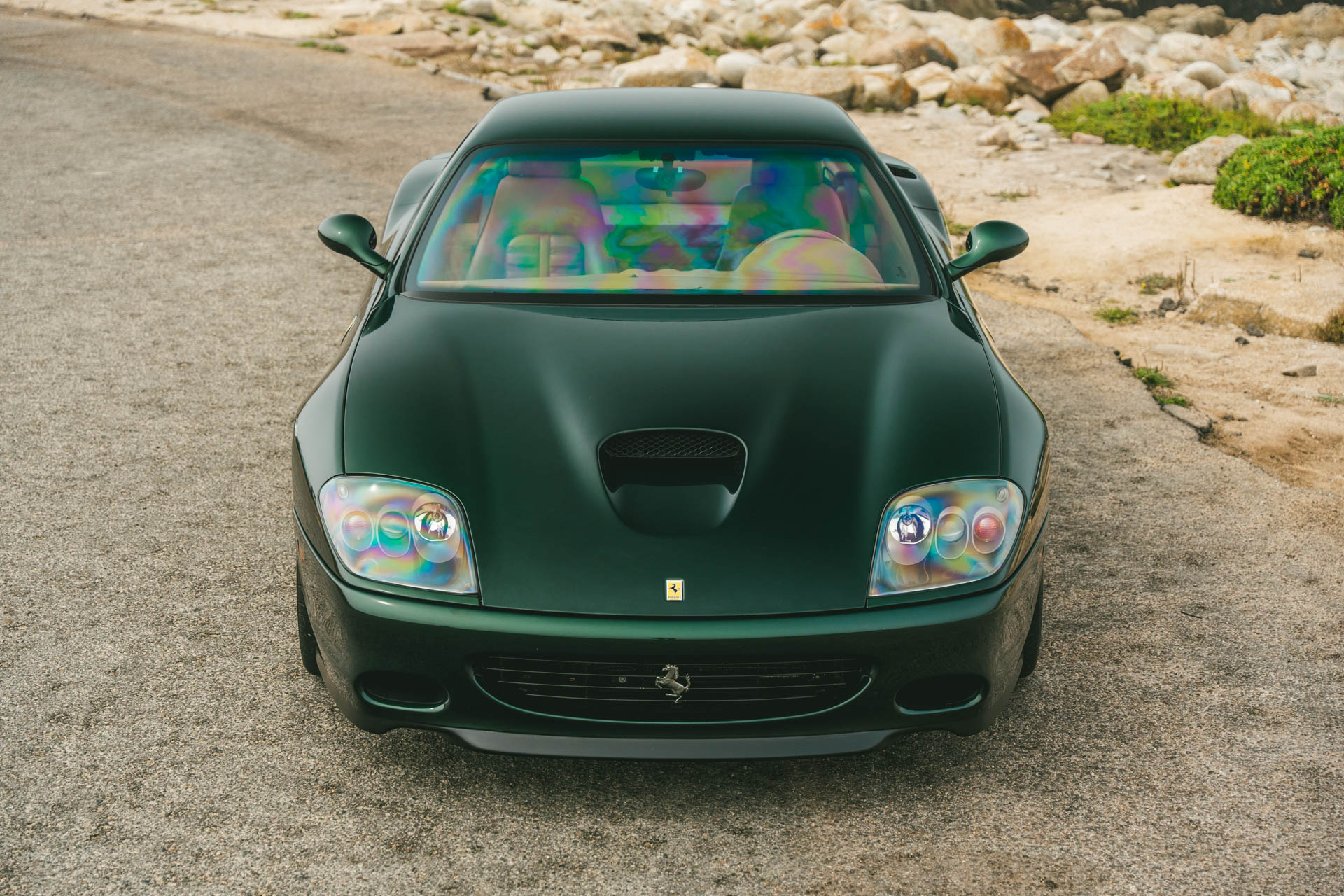 This 2002 Ferrari 575M Maranello is powered by a 5.7-liter V12 paired with a six-speed gearbox that was converted to manual operation in August 2016. It is finished in Verde Zeltweg over Cuoio leather, and it is equipped with a Tubi exhaust, a limited-slip differential, 18? five-spoke alloy wheels, a Scud Ing LED light kit, xenon headlights, Scuderia Ferrari fender shields, power-adjustable Daytona-style seats, a Continental CD stereo, and automatic climate control. A timing belt service was performed in July 2022 following the car’s acquisition one month prior by the current owner, who has since driven it approximately 5,500 miles. This 575M Maranello is now offered on dealer consignment as part of Mohr Imports’ Monterey Car Week Collection with the owner’s manual, a decade of service records, a typed maintenance log, spare parts, tools, and a clean California title.