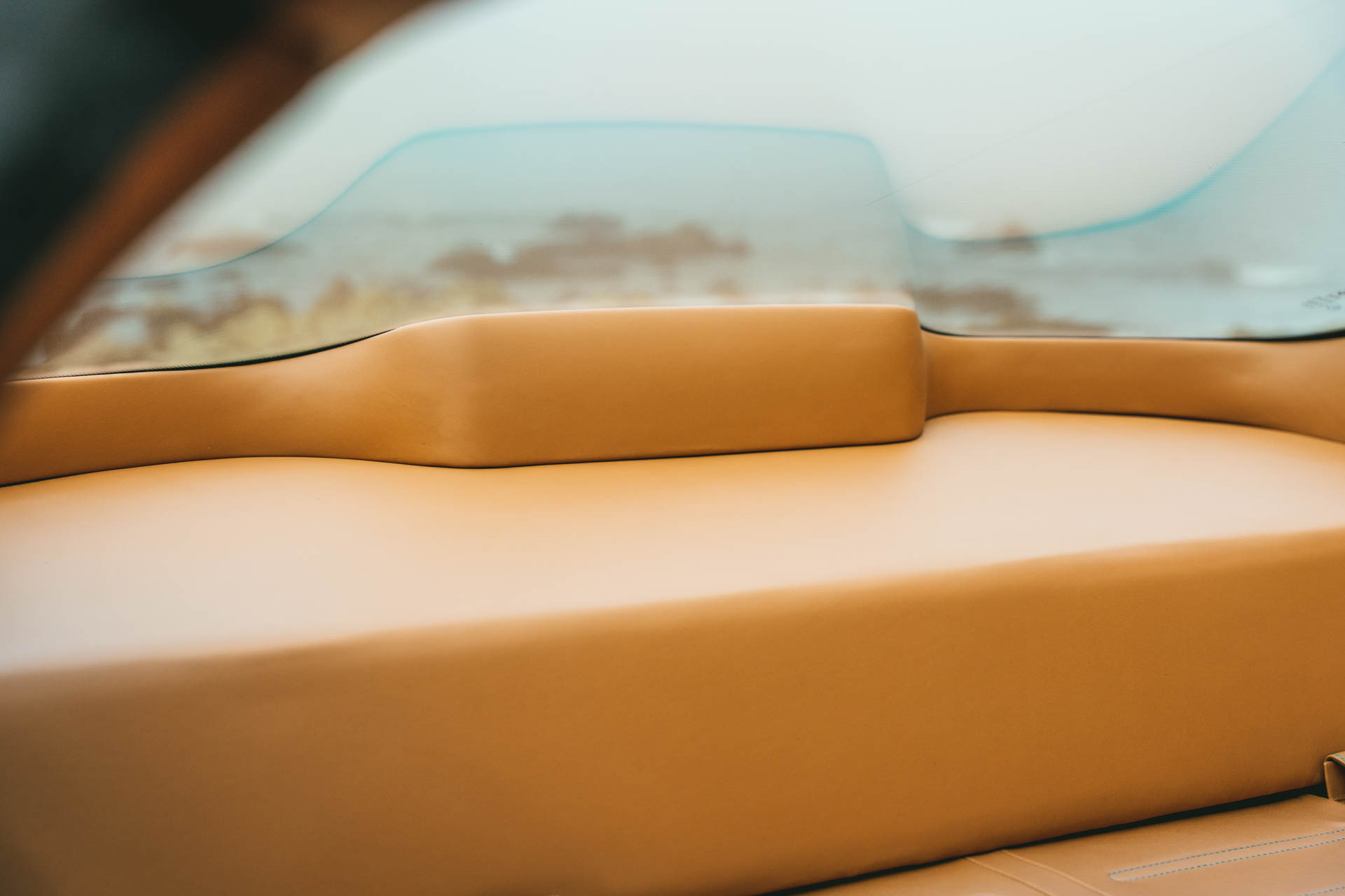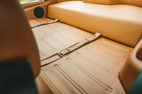 The cabin features power-adjustable Daytona-style seats upholstered in Cuoio leather. Amenities include automatic climate control, electric windows, a Continental CD stereo, and rear luggage straps.