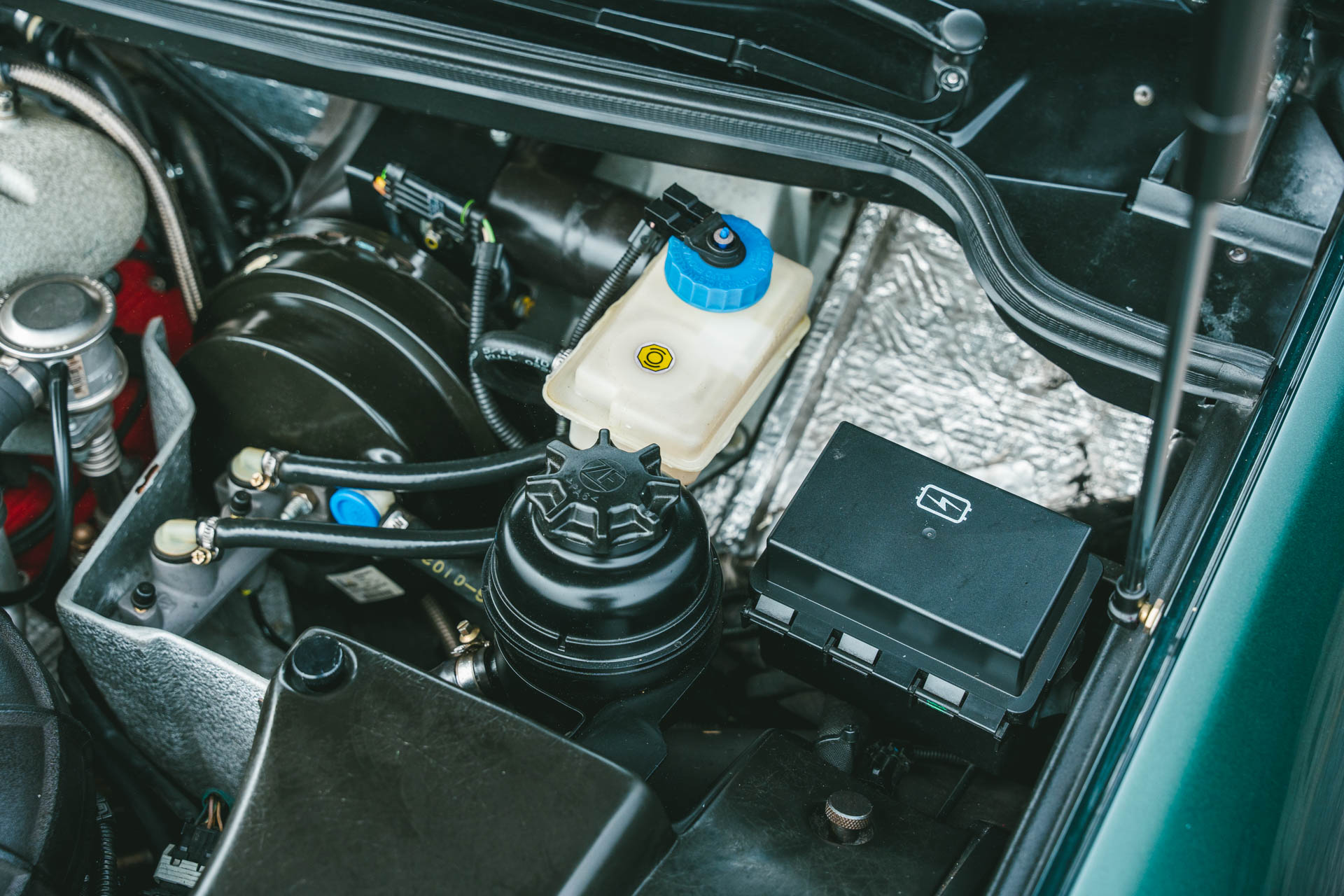 Power is sent to the rear wheels through a six-speed F1 transaxle that was converted to manual operation by Exoticars USA of Milford, New Jersey, in August 2016. Related invoices are shown in the gallery below, and the clutch throwout bearing, pilot bearing, and transmission mounts were changed in January 2024.