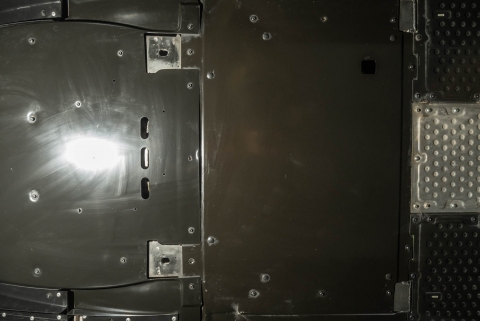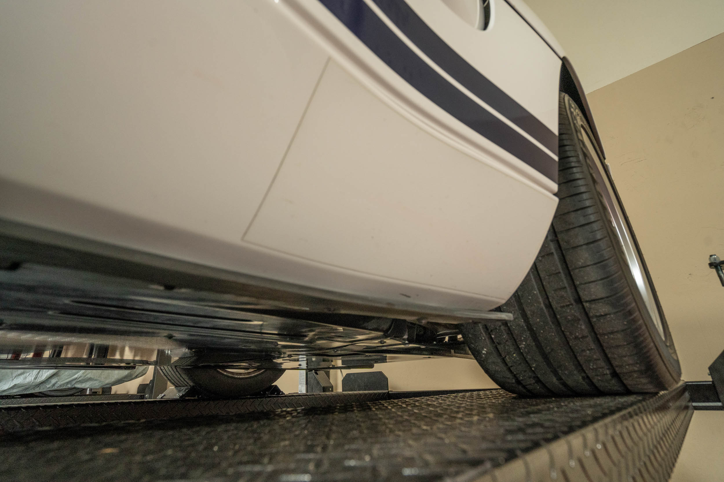 Power is sent to the rear wheels through a Ricardo six-speed manual transaxle and a helical limited-slip differential. Additional photographs of the underside are shown in the gallery below.