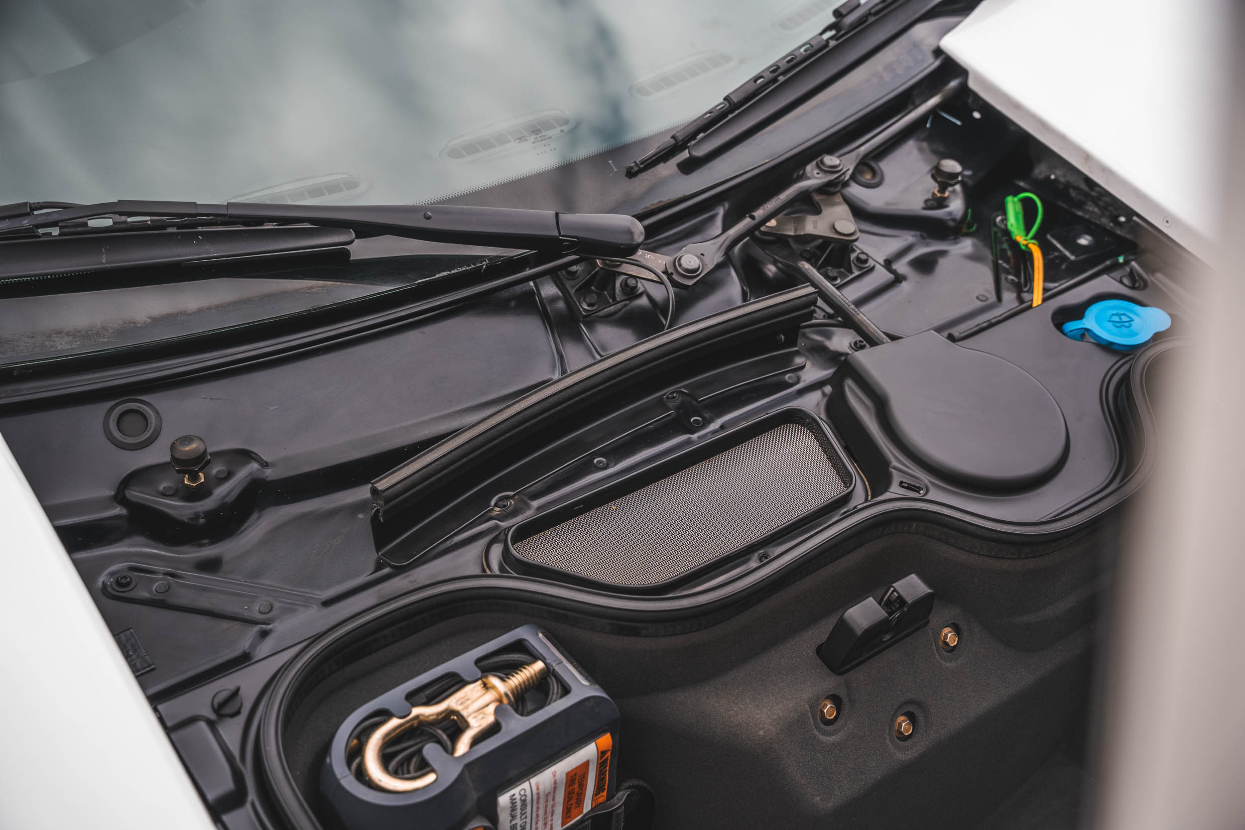 The mid-mounted 5.4-liter DOHC V8 features an aluminum block, cylinder heads, and pistons in addition to a Lysholm screw-type supercharger, a dry-sump lubrication system, and a water-to-air intercooler. Factory-rated output was 550 horsepower and 500 lb-ft of torque. Work in February 2021 included an oil change and replacing the air filter and fuel filter.