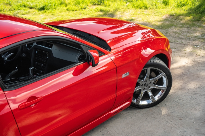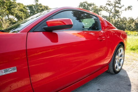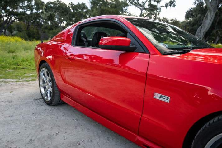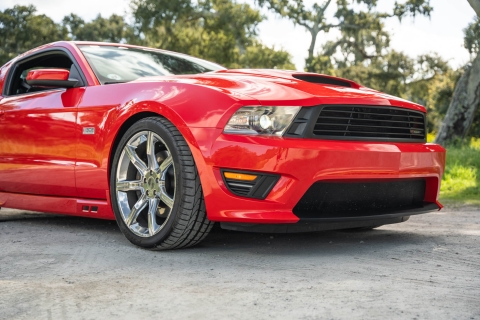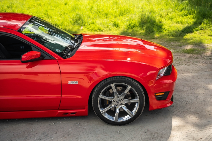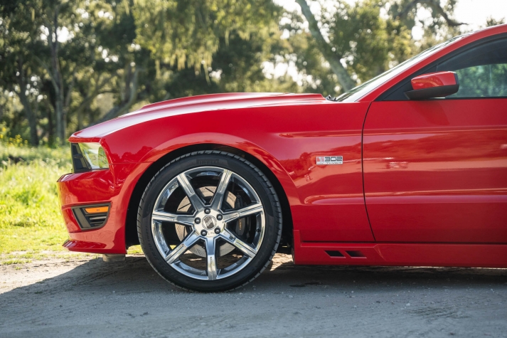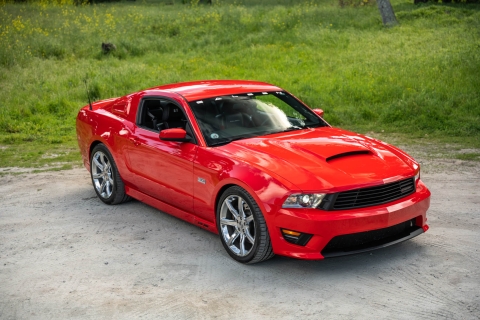 This 2011 Ford Mustang Saleen S302 coupe was sold new at Gullo Ford in Conroe, Texas, and it was acquired by the current owner on BaT in April 2021. Now indicating 25k miles, the car is finished in Race Red over black leather with Ultrasuede inserts. Power is provided by a 5.0-liter V8 linked to a six-speed manual transmission and a limited-slip differential, and equipment includes a Saleen exhaust system with Borla mufflers as well as a front shock tower brace, Saleen-specific suspension components and body panels, 20? wheels, air conditioning, heated front sport seats, illuminated sills, and a factory sound system with SYNC mobile phone integration. This Saleen Mustang is offered on dealer consignment with a Saleen window sticker and brochure, service records, a clean Carfax report, and a clean California title.