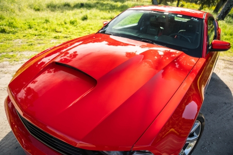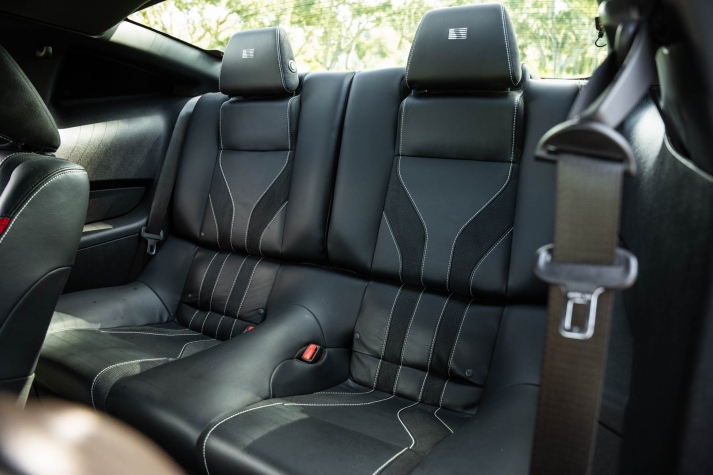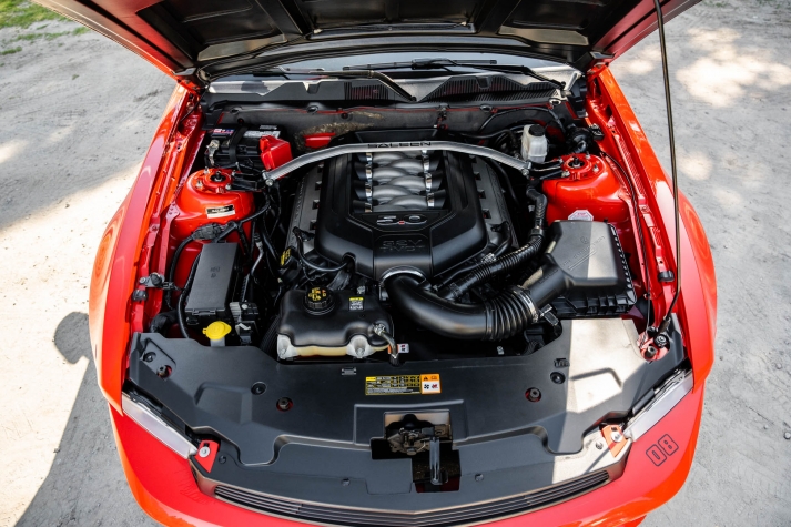 The 5.0-liter Coyote V8 features four valves per cylinder, and it was rated by Saleen at 425 horsepower and 395 lb-ft of torque when new. Power is sent to the rear wheels through a six-speed manual transmission and a limited-slip differential with 3.73:1 gearing.