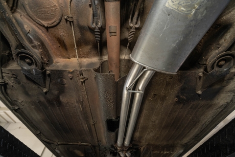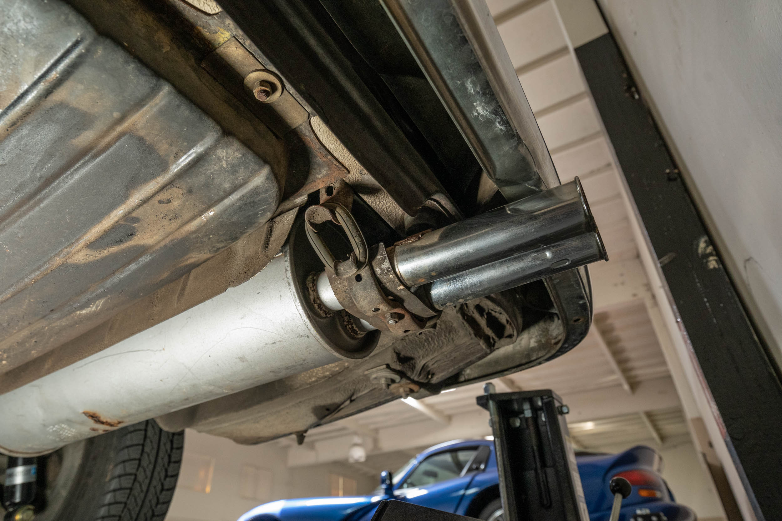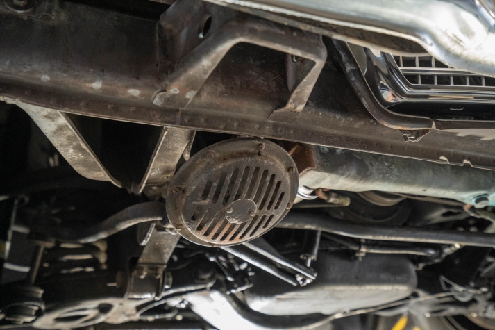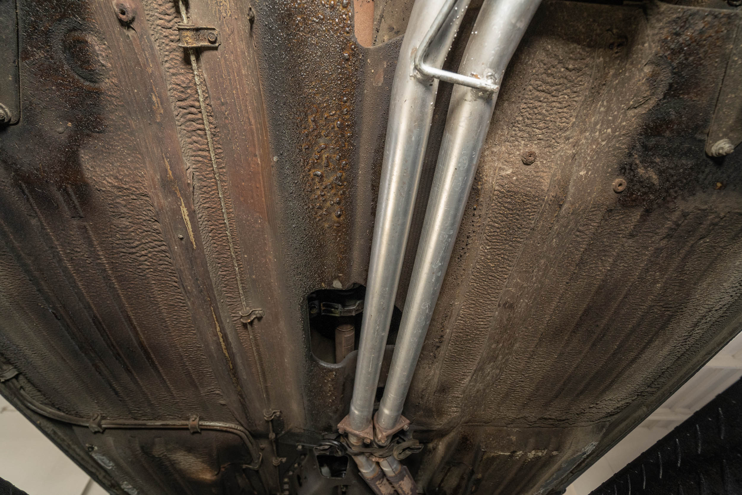 Power is delivered to the rear wheels through a four-speed automatic transmission. Additional photos of the underside are presented in the gallery.
