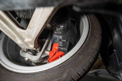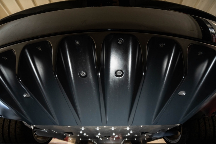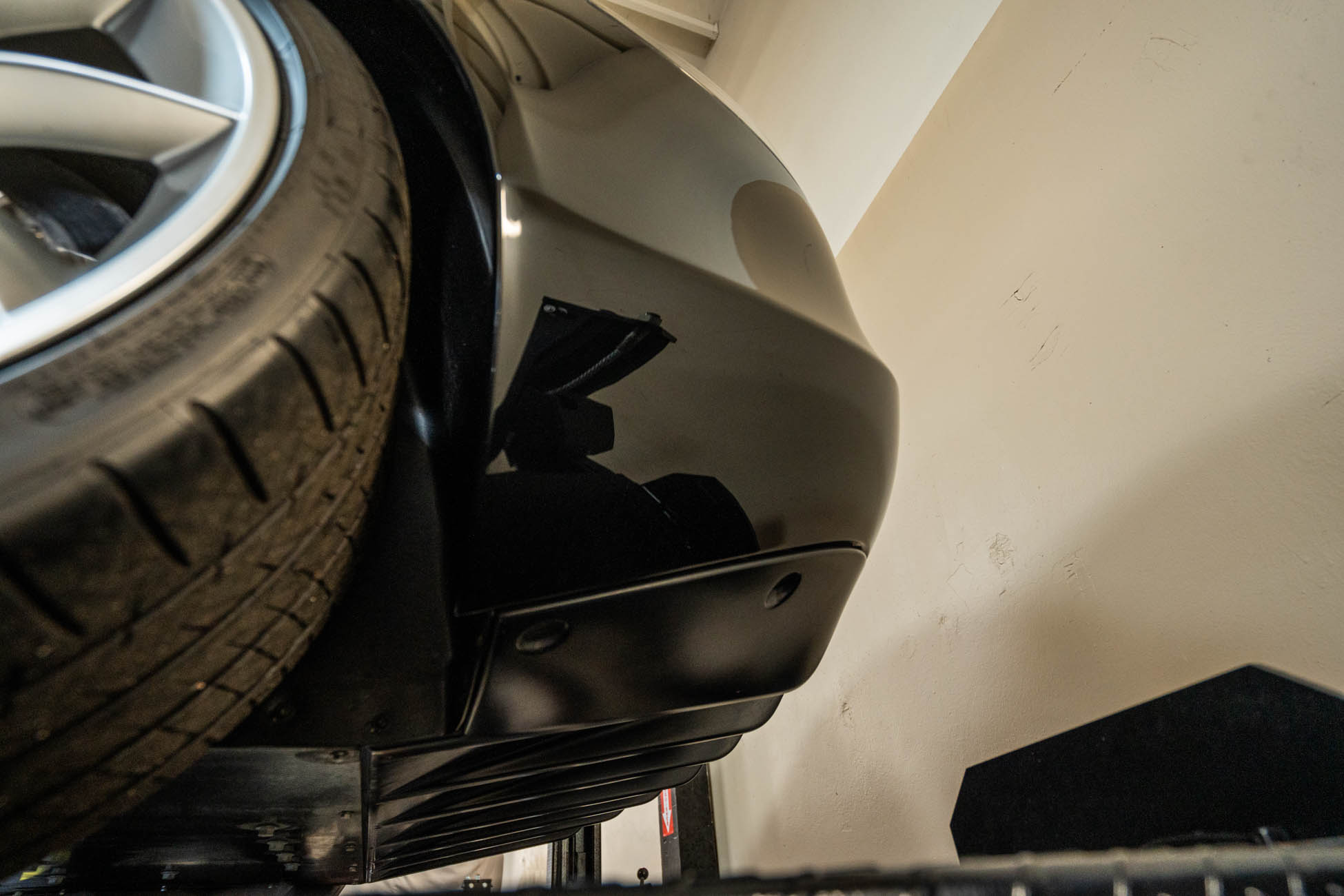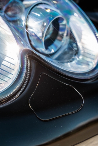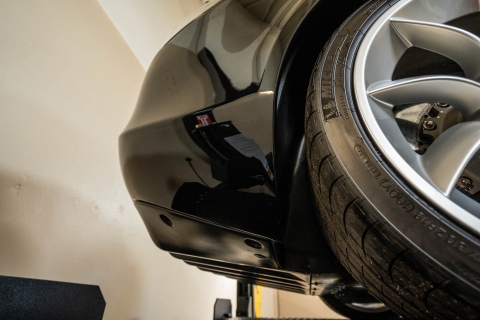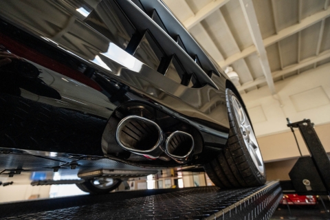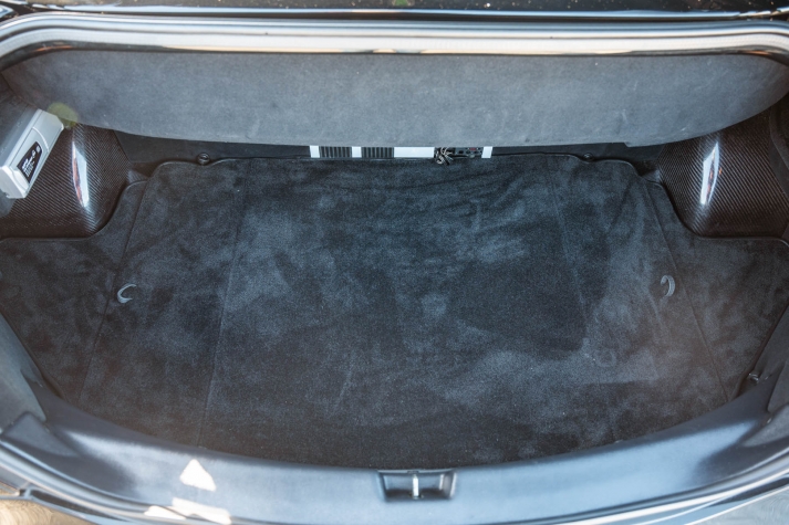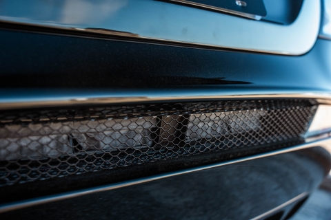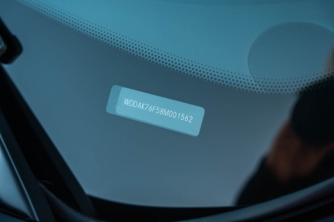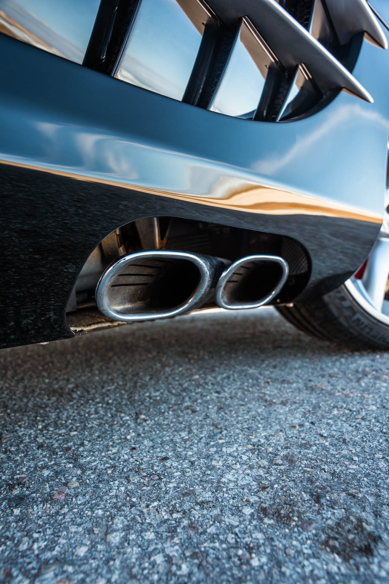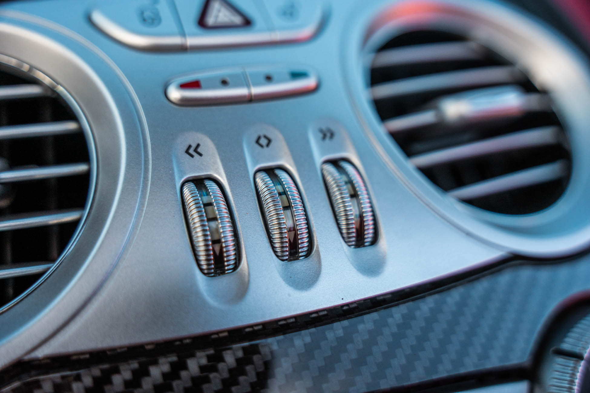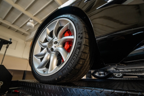 Asymmetrical turbine-style 19? alloy wheels are mounted with Michelin Pilot Sport tires that have 2015 and 2016 date codes. Stopping power is provided by red Mercedes-Benz-branded calipers over carbon-ceramic rotors at all four corners, and the car is equipped with a Sensotronic Brake Control system (SBC).