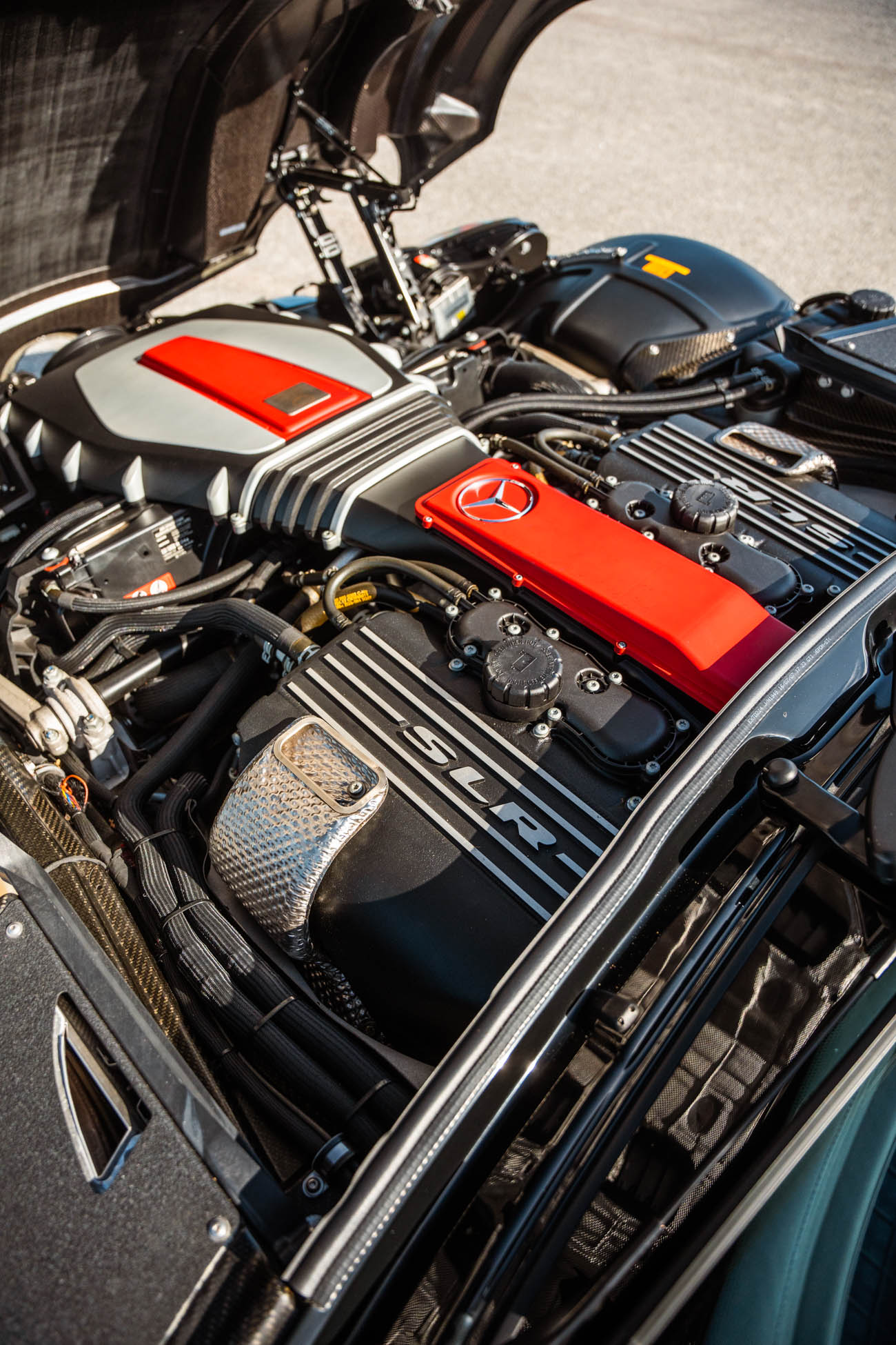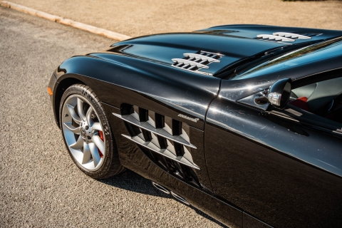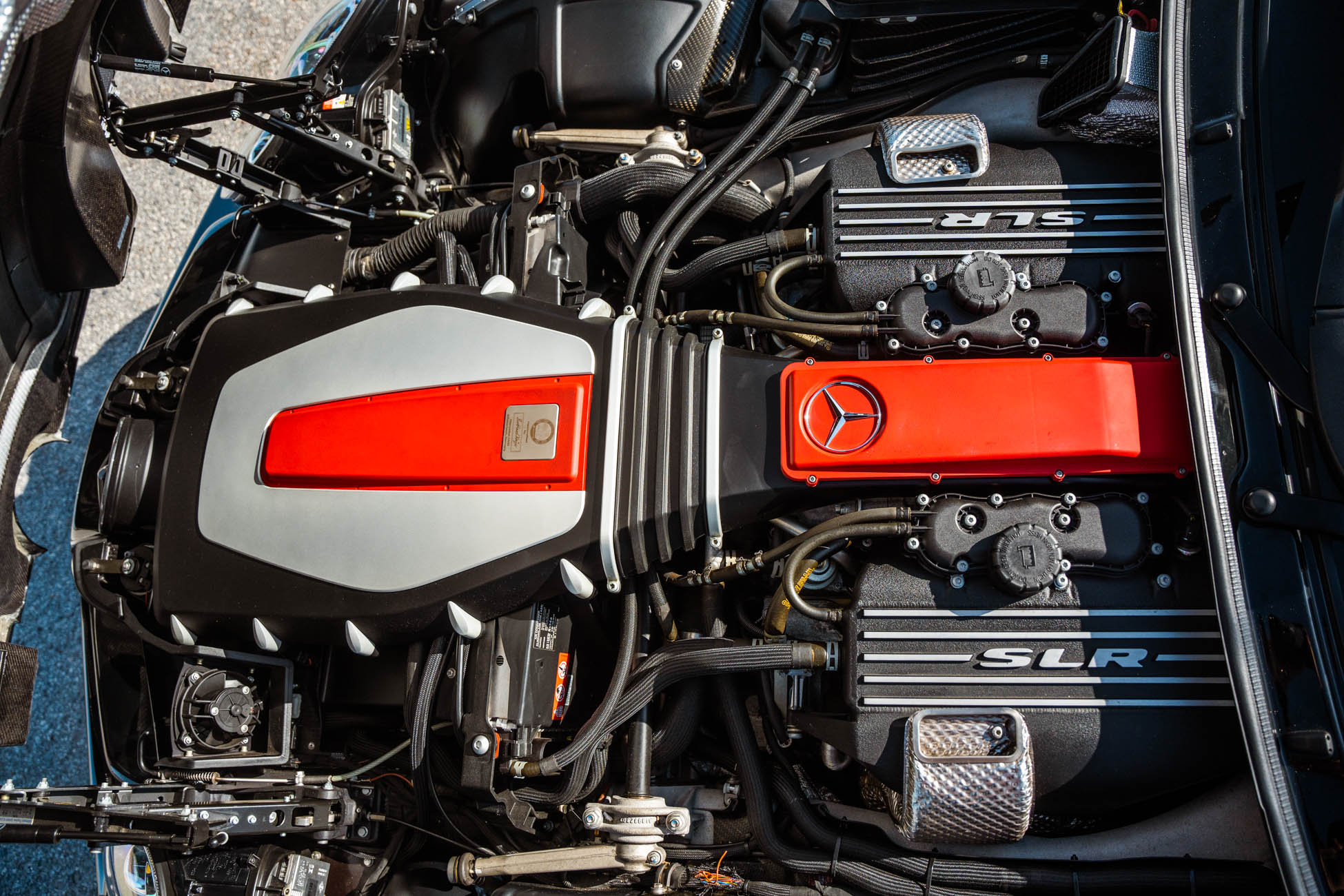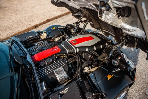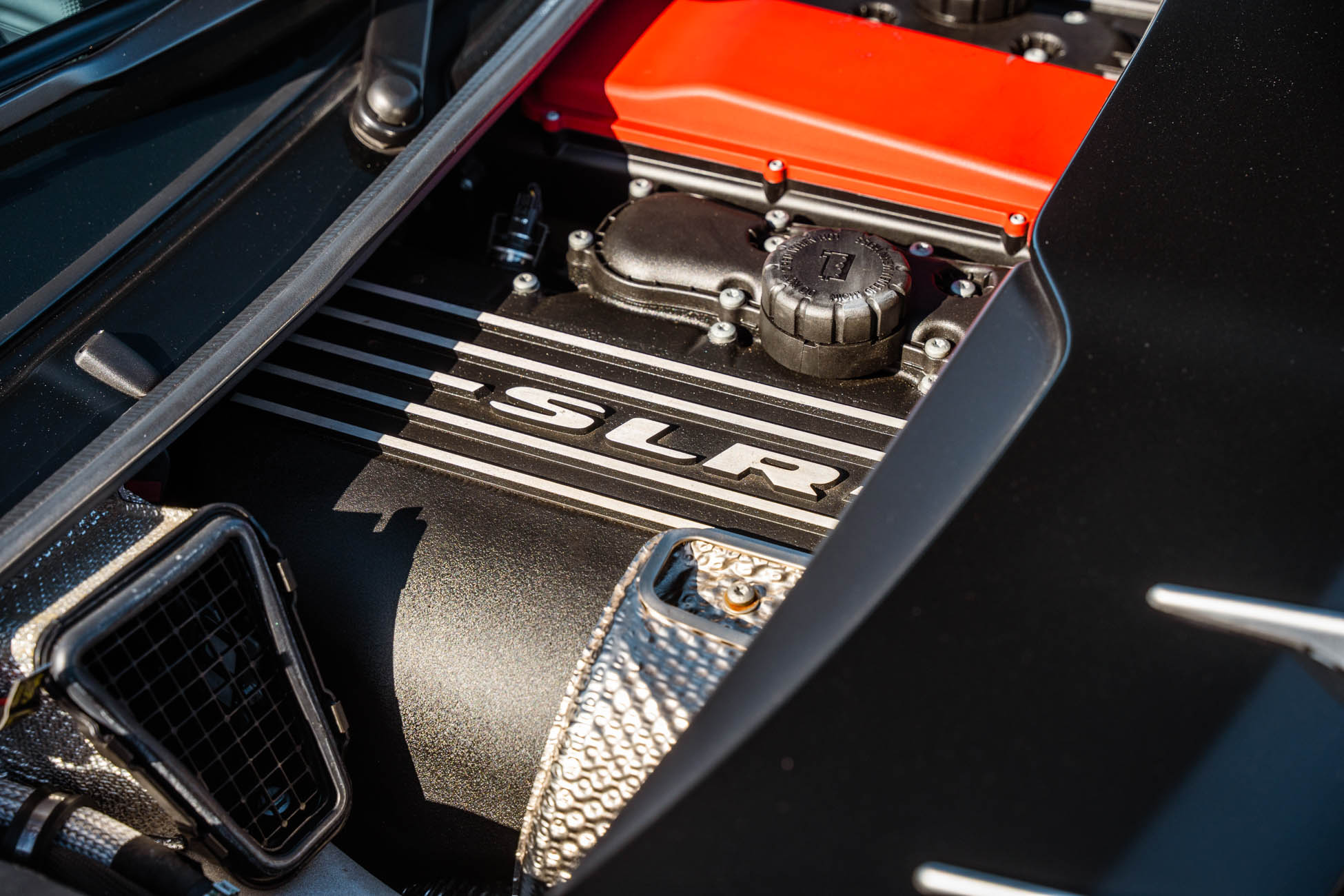 The front-mid-mounted 5.4-liter M155 V8 was factory rated at 617 horsepower and 575 lb-ft of torque and features all-aluminum construction, 24 valves, dry-sump lubrication, and a Lysholm-type twin-screw supercharger.