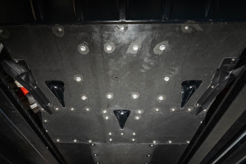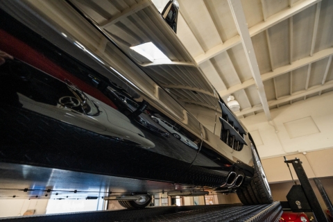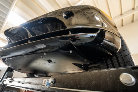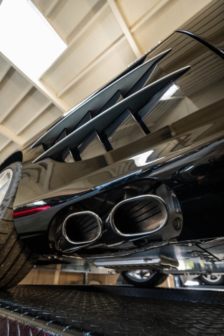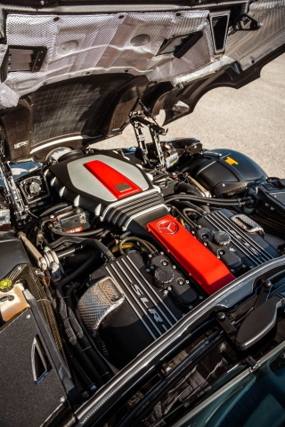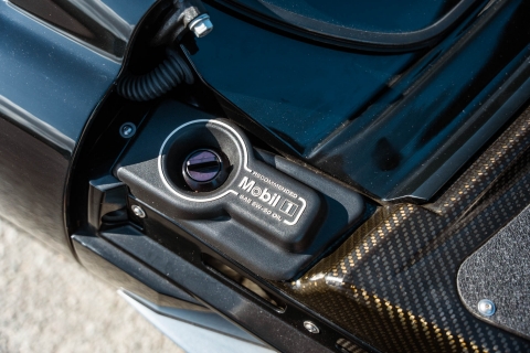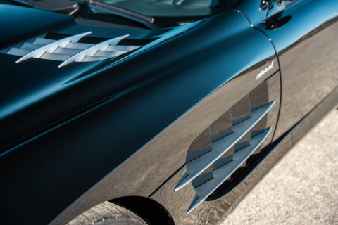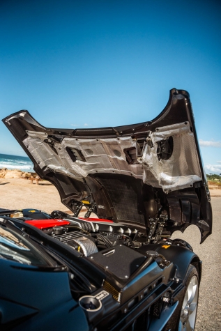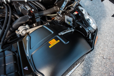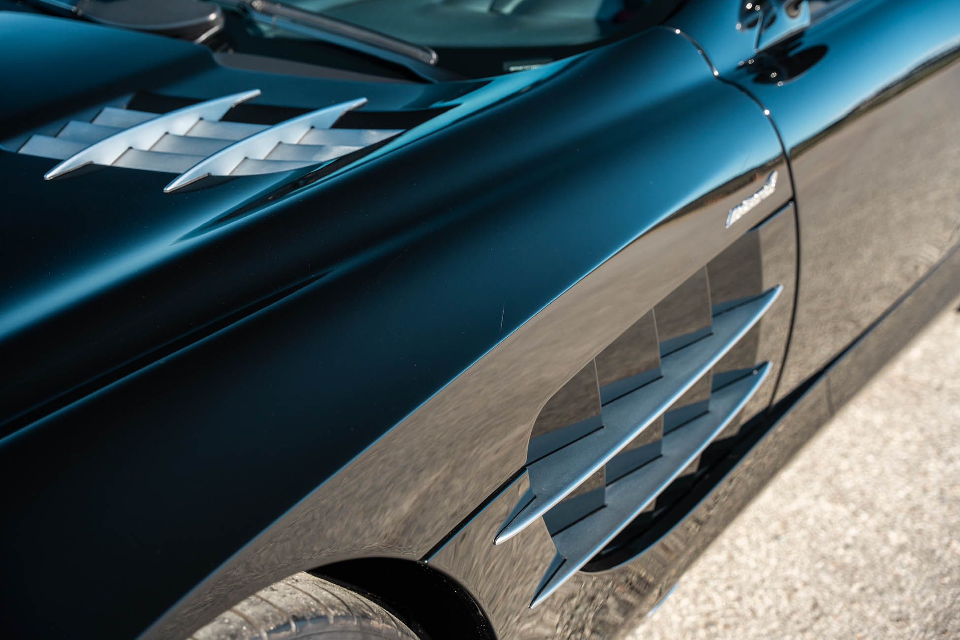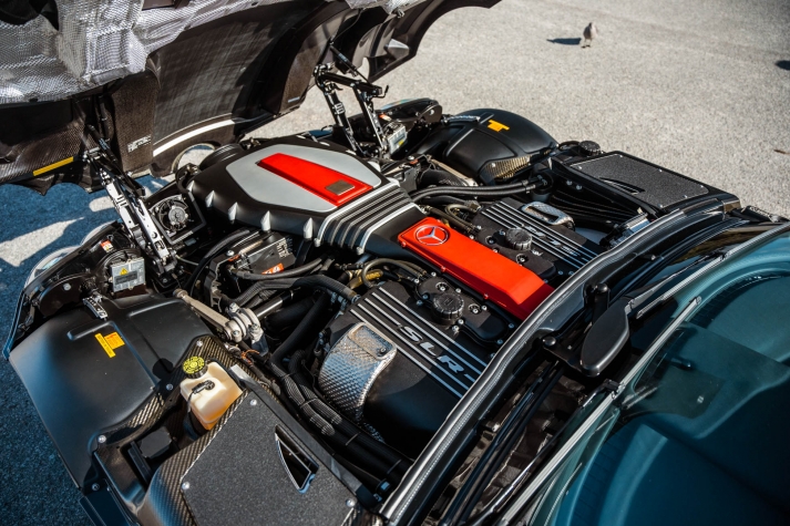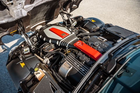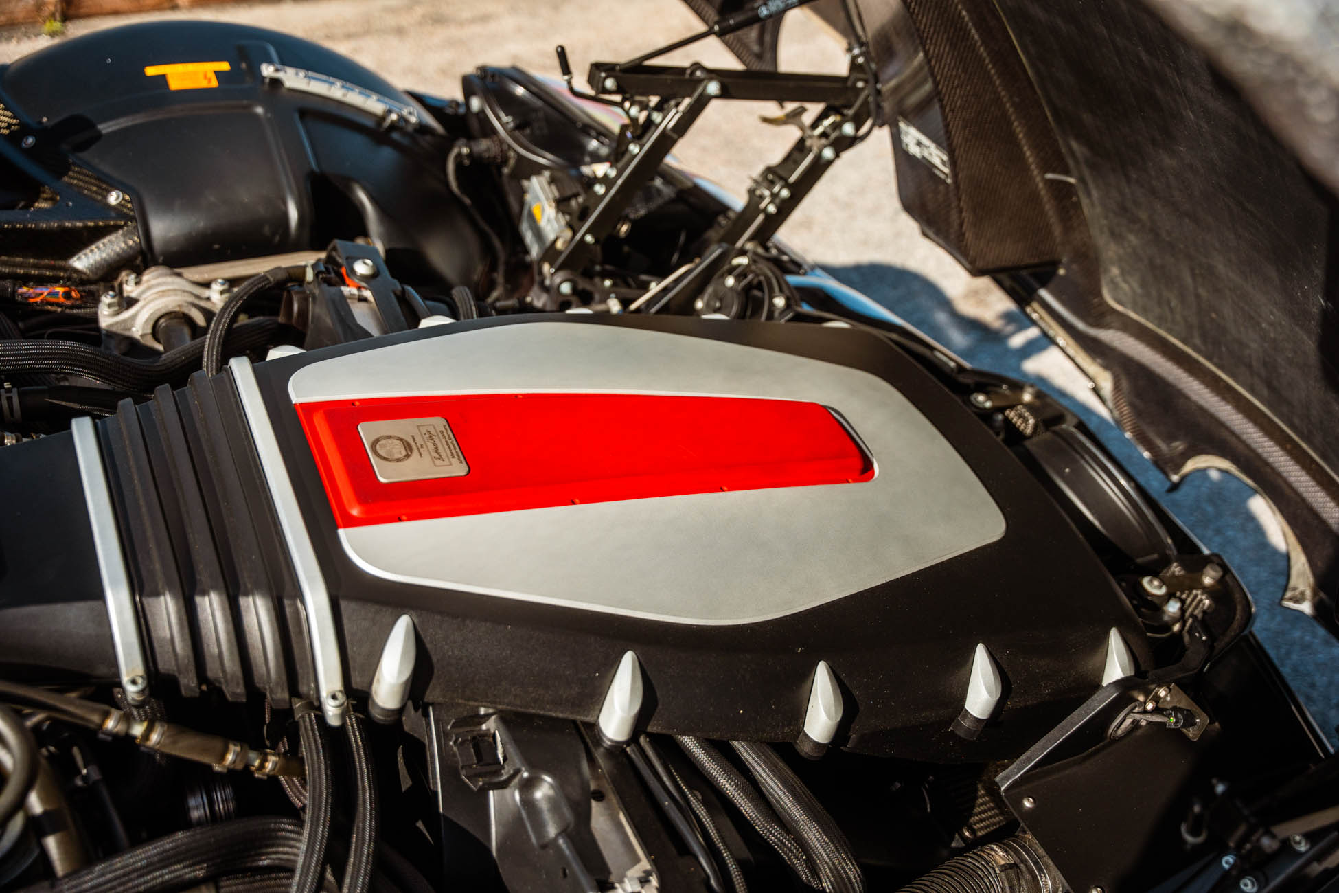 The front-mid-mounted 5.4-liter M155 V8 was factory rated at 617 horsepower and 575 lb-ft of torque and features all-aluminum construction, 24 valves, dry-sump lubrication, and a Lysholm-type twin-screw supercharger.