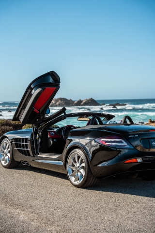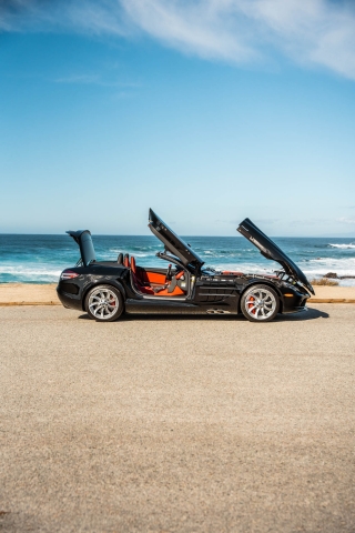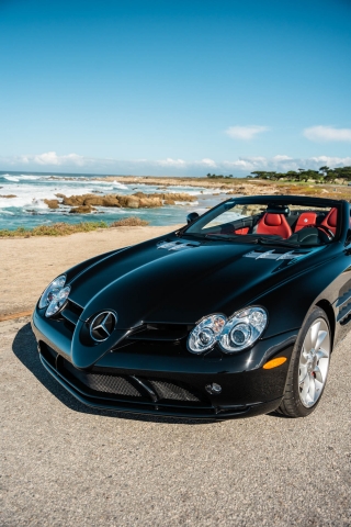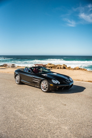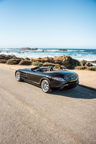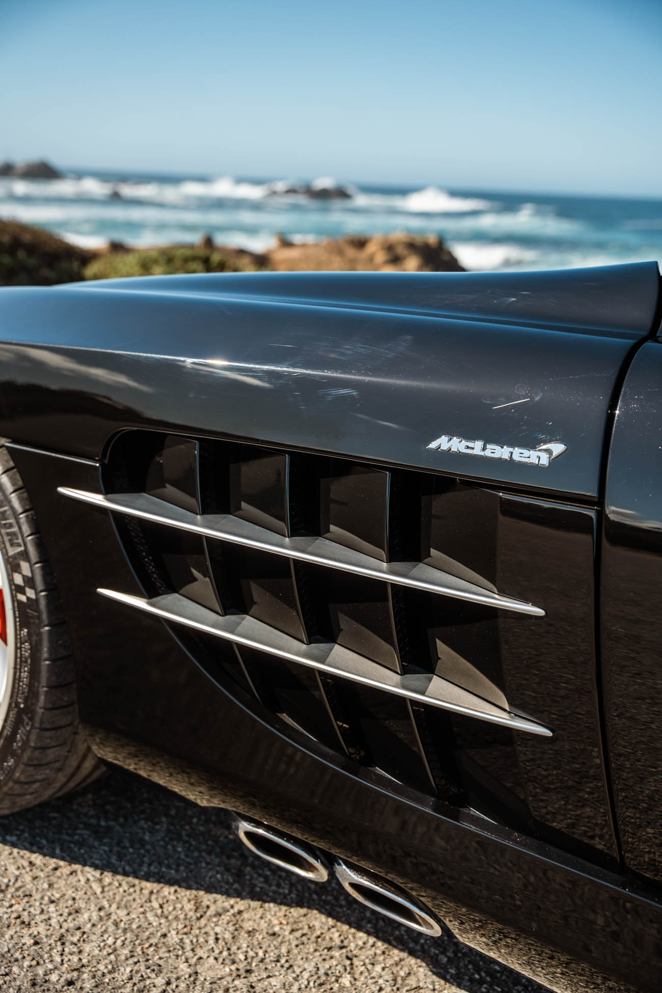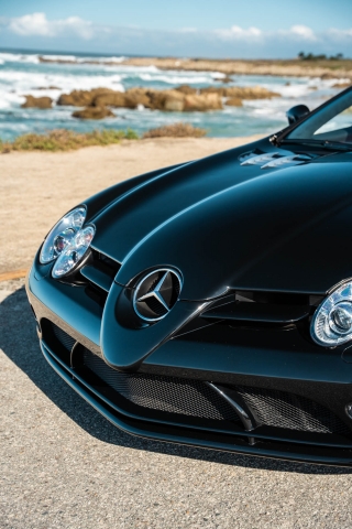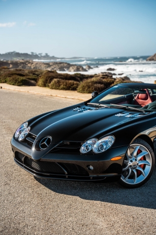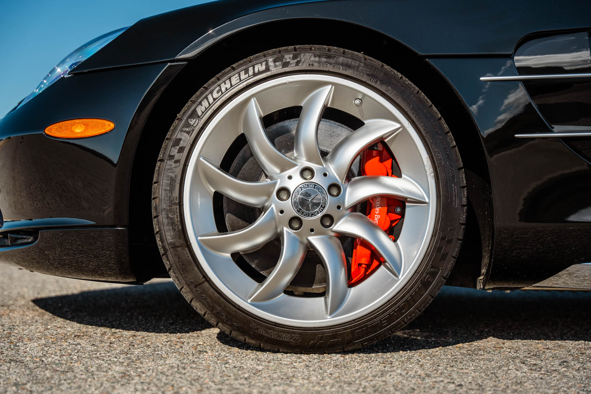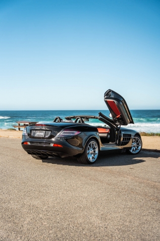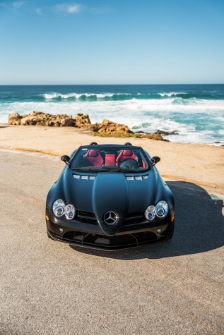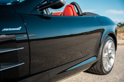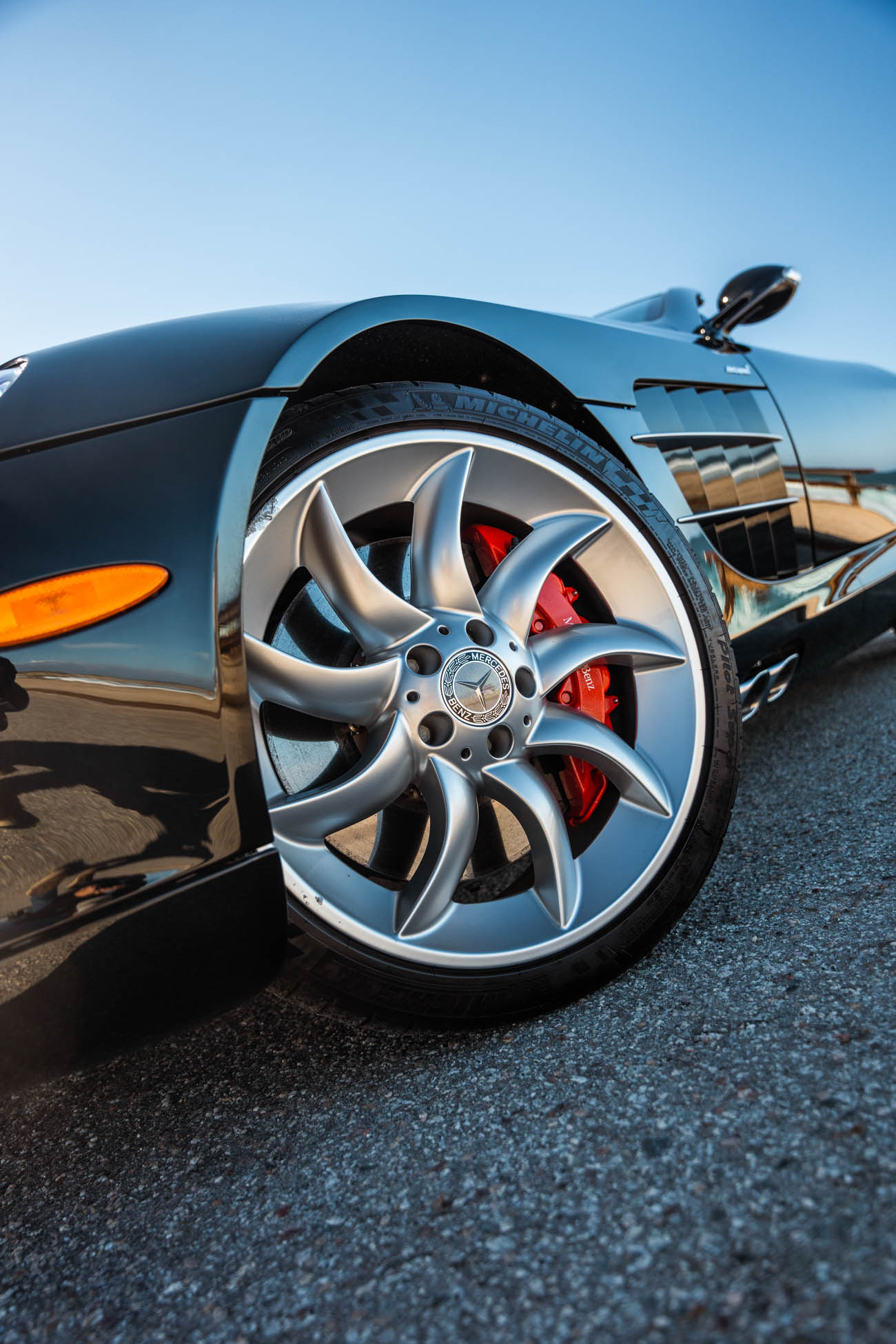 This Canadian-market 2008 Mercedes-Benz SLR McLaren roadster spent time in Nova Scotia before relocating to the US in 2010 and later to Sweden. It is powered by a supercharged 5.4-liter M155 V8 paired with an AMG Speedshift R five-speed automatic transmission and is finished in Pure Black over 300SL Red Silver Arrow leather upholstery. Equipment includes asymmetrical 19? turbine-spoke alloy wheels, carbon-ceramic disc brakes, butterfly doors, xenon headlights, an Anthracite Black soft top, side-exit exhaust pipes, carbon-fiber seats, an Alpine head unit, a Bose sound system, and dual-zone automatic climate control. Purchased by the current owner in 2024, this SLR McLaren roadster is offered on consignment in California by the selling dealer, a BaT Local Partner, with manufacturer’s literature, a Mercedes-Benz build sheet, a clean Carfax report, and a clean Montana title.