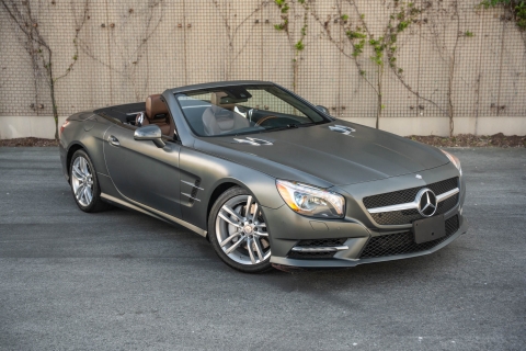 This 2013 Mercedes-Benz SL550 was purchased new by its current owner, and it was collected via European Delivery Program. The car has 80k miles, and it has been registered in California from new. It was specified in Cerussite Gray Magno Metallic over brown semi-aniline Nappa leather and is powered by a twin-turbocharged 4.7-liter V8 paired with a seven-speed automatic transmission. Equipment includes a power-retractable hardtop with a glass roof as well as bi-xenon headlights, 18? twin five-spoke wheels, heated and ventilated power-adjustable seats, navigation, Keyless Go, Airscarf neck warmers, a Harman Kardon sound system, Active Park Assist, a rear-view camera, a wind deflector, and dual-zone automatic climate control. This R231 is now offered by the selling dealer, a BaT Local Partner, on consignment with the owner’s manual, service records, and a clean California title.
