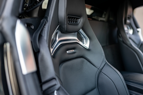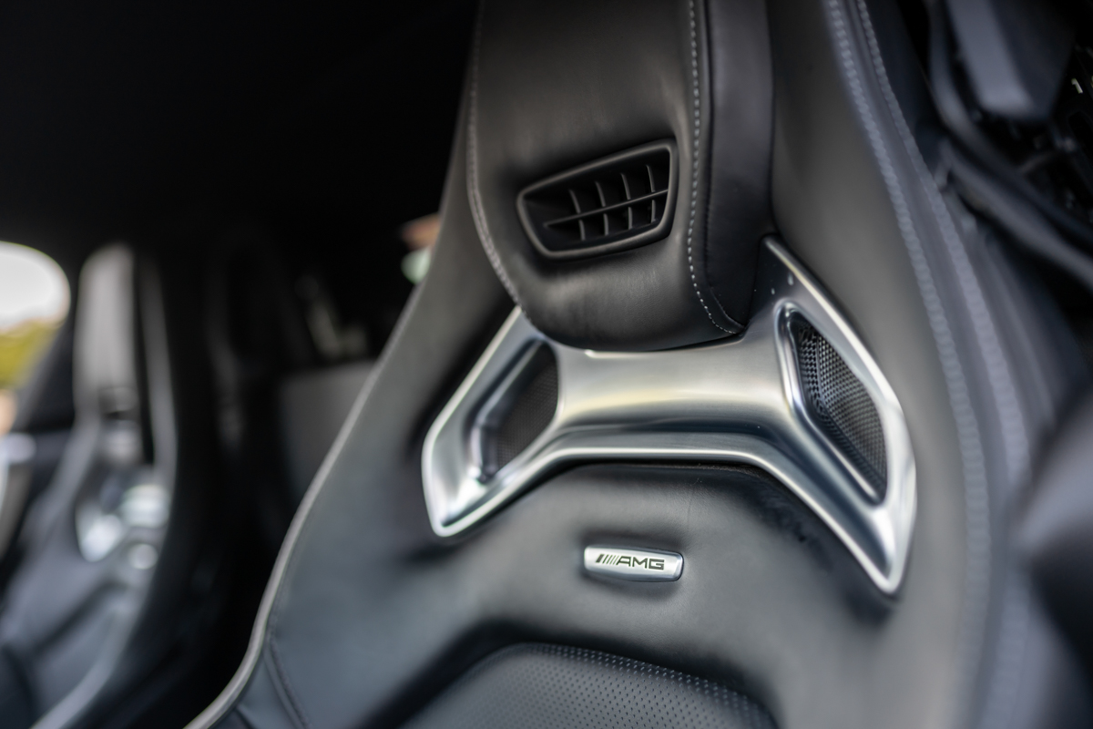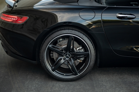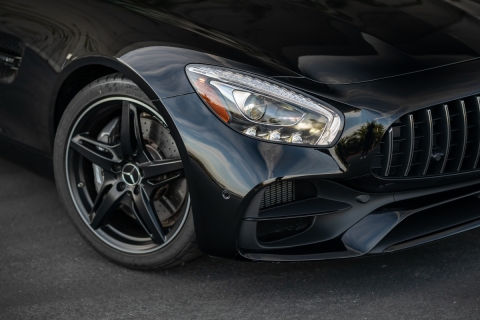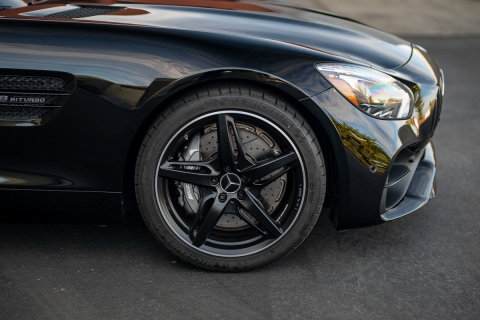The AMG GT’s standard features include eight airbags, Adaptive Highbeam Assist, a rearview camera, blind-spot monitoring, Lane Keeping Assist, and the Attention Assist system that alerts the driver if the system detects drowsiness. Collision Prevention Assist Plus alerts the driver of a possible collision, applies the ideal amount of braking, and can autonomously apply the brakes at speeds up to 65 mph. Adaptive braking technology consists of Predictive Brake Priming (sets the pads closer to the discs for a more immediate braking response), Automatic Brake Drying (periodically applies the brakes just enough to remove water from the discs), and Hill-Start Assist.