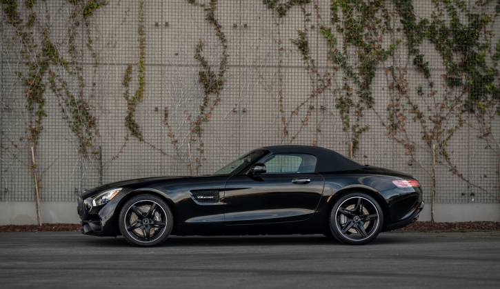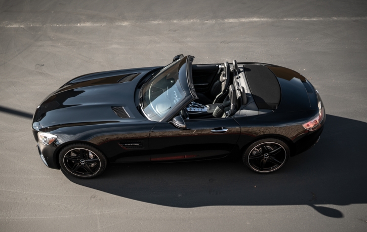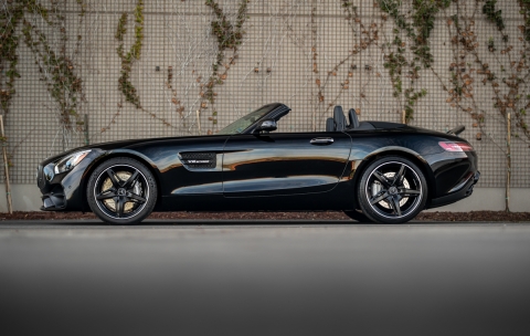 All 2018 AMG GT models come equipped with a 4.0-liter twin-turbo V-8 but the GT Roadster produces 469 hp and 465 lb-ft of torque, mated to AMG’s seven-speed dual-clutch automatic transmission that routes power to the rear wheels.