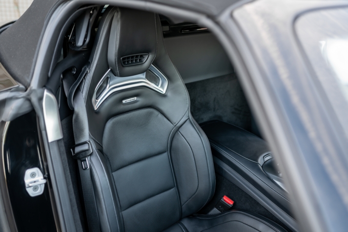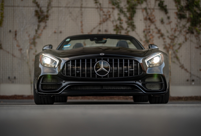 The 2018 AMG GT Roadster came standard with Airpanel active air management (automatic grille shutters), AMG Dynamic Select driving modes, AMG sport suspension, a limited slip rear differential, AMG Performance seats, AMG Panamericana grille reminiscent of a classic Mercedes, and a weight-optimized fabric soft top.