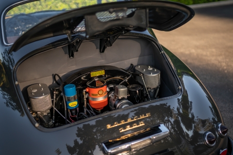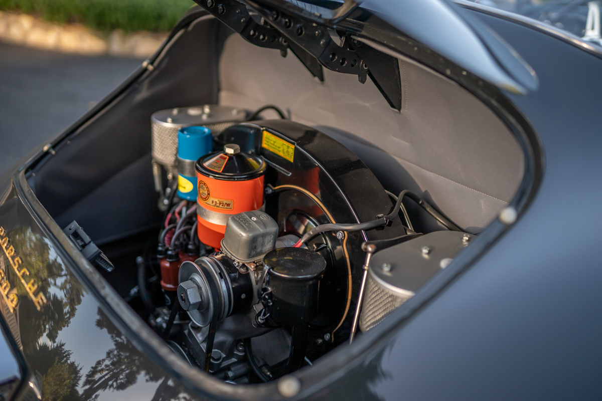 The former owner acquired this car circa 2000 as a project and rebuilt it over the next 18 years. The odometer reads less than 78,000 miles but the correct total is unknown. Very little is known about its early history, as its factory Kardex lists only its chassis, engine, and transmission numbers and the fact that it was a US-specification version shipped to Max Hoffman’s distribution center in New York City. Delivered from the factory in Pascha Red with a tan corduroy fabric interior, it was fitted with a Type 356/1500 delivering 55 brake horsepower through a four-speed manual transmission.