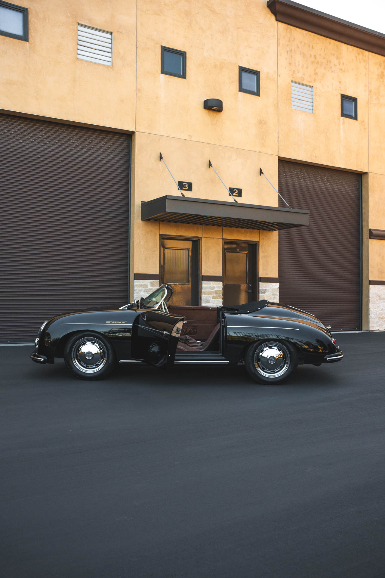 This Porsche 356 Speedster replica was assembled under prior ownership approximately five years ago and was acquired by the current owner from a dealer in Illinois shortly thereafter. The fiberglass body is finished in black and features a matching convertible soft top, side curtains, and boot cover, while the interior is trimmed in brown leather and incorporates a banjo-style steering wheel, lap belts, and a Sony Xplod CD stereo. Power comes from an air-cooled 1.6L flat-four equipped with dual Weber carburetors, a 123Ignition electronic distributor, and an A-1 Sidewinder exhaust system. Additional details include 15? chrome steel wheels, Pirelli tires, front disc brakes, EMPI dampers, and a four-speed manual transaxle. This 356 Speedster replica shows 5k miles and is now offered on dealer consignment as part of Mohr Imports’ UpShift Collection with a clean California title listing it as a 1964 VW.