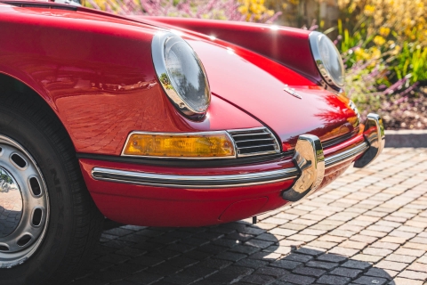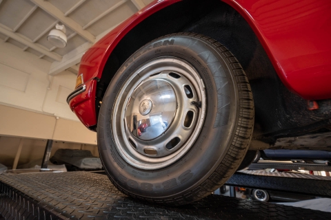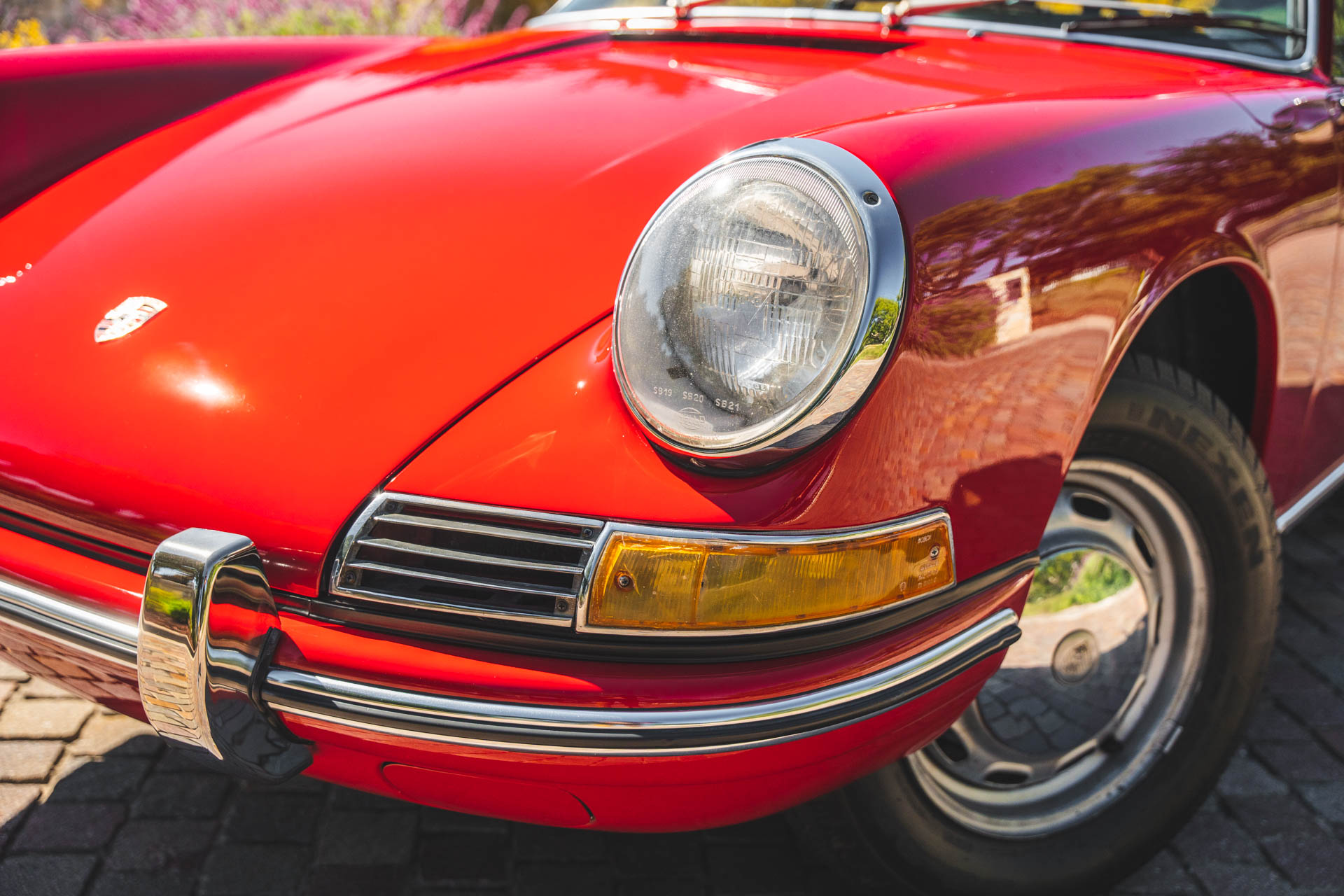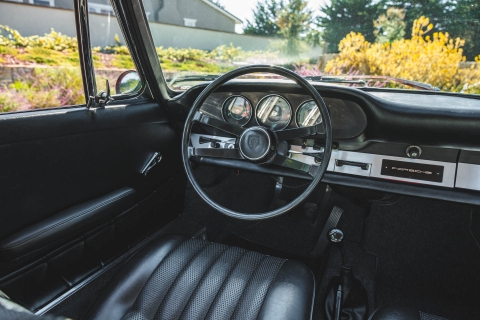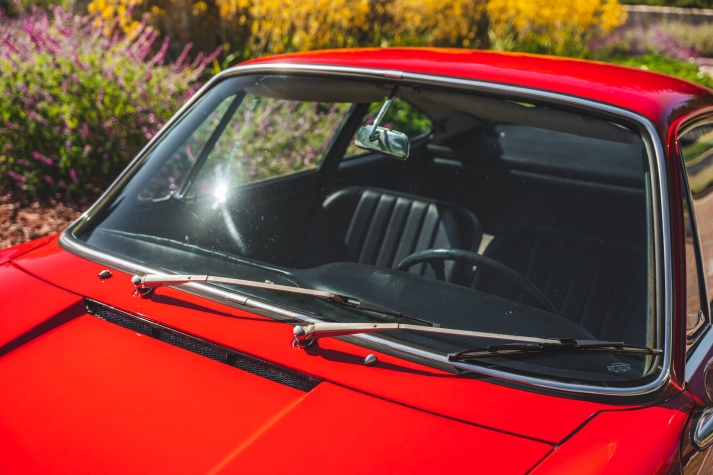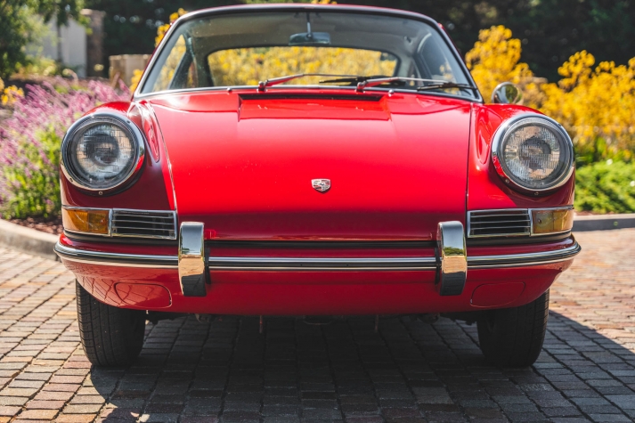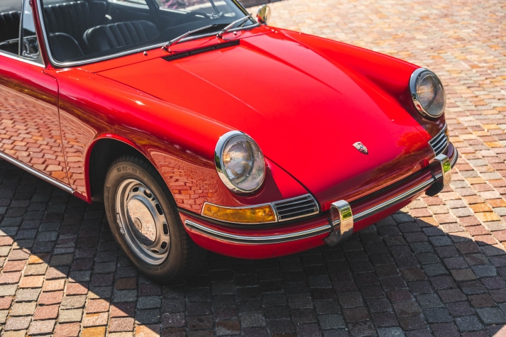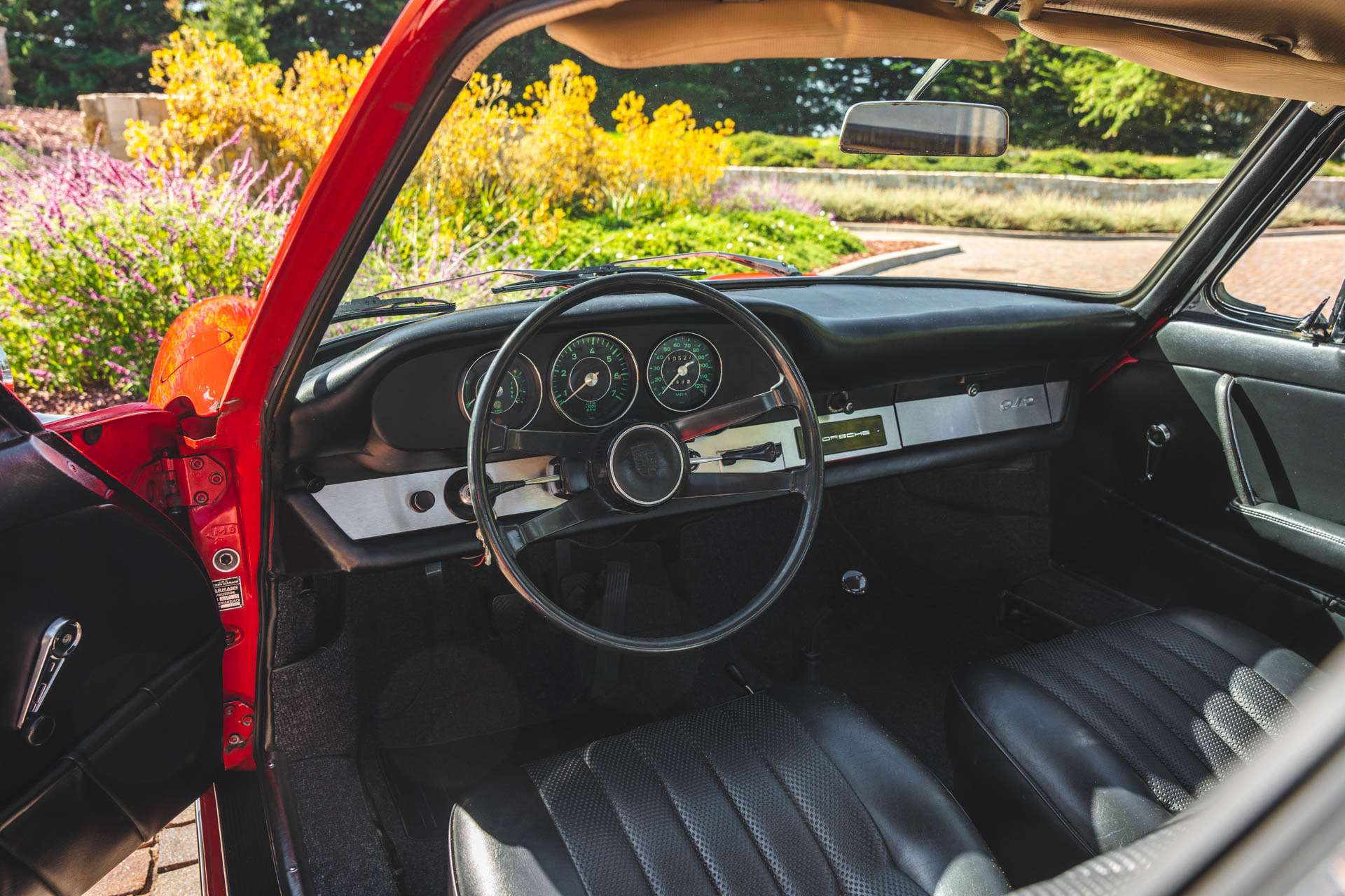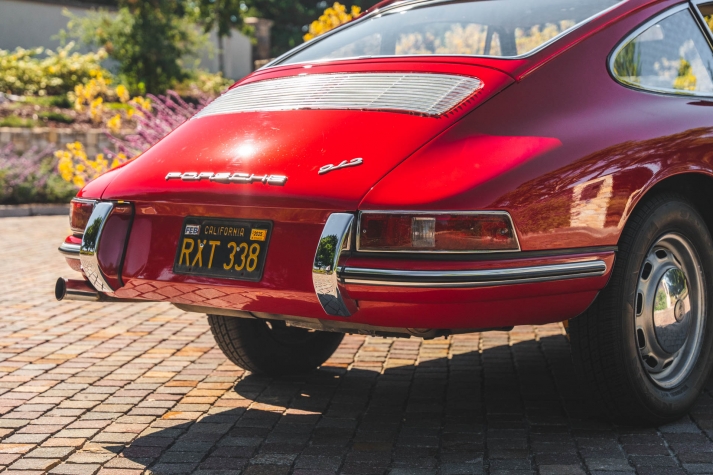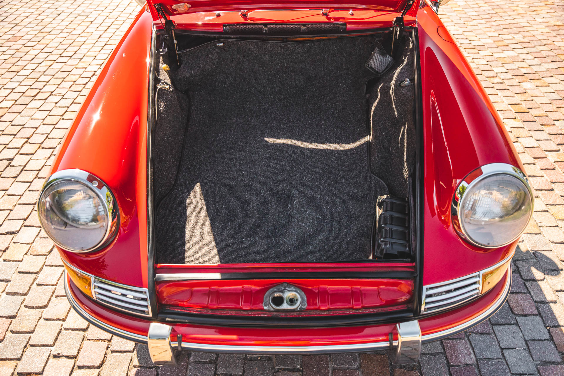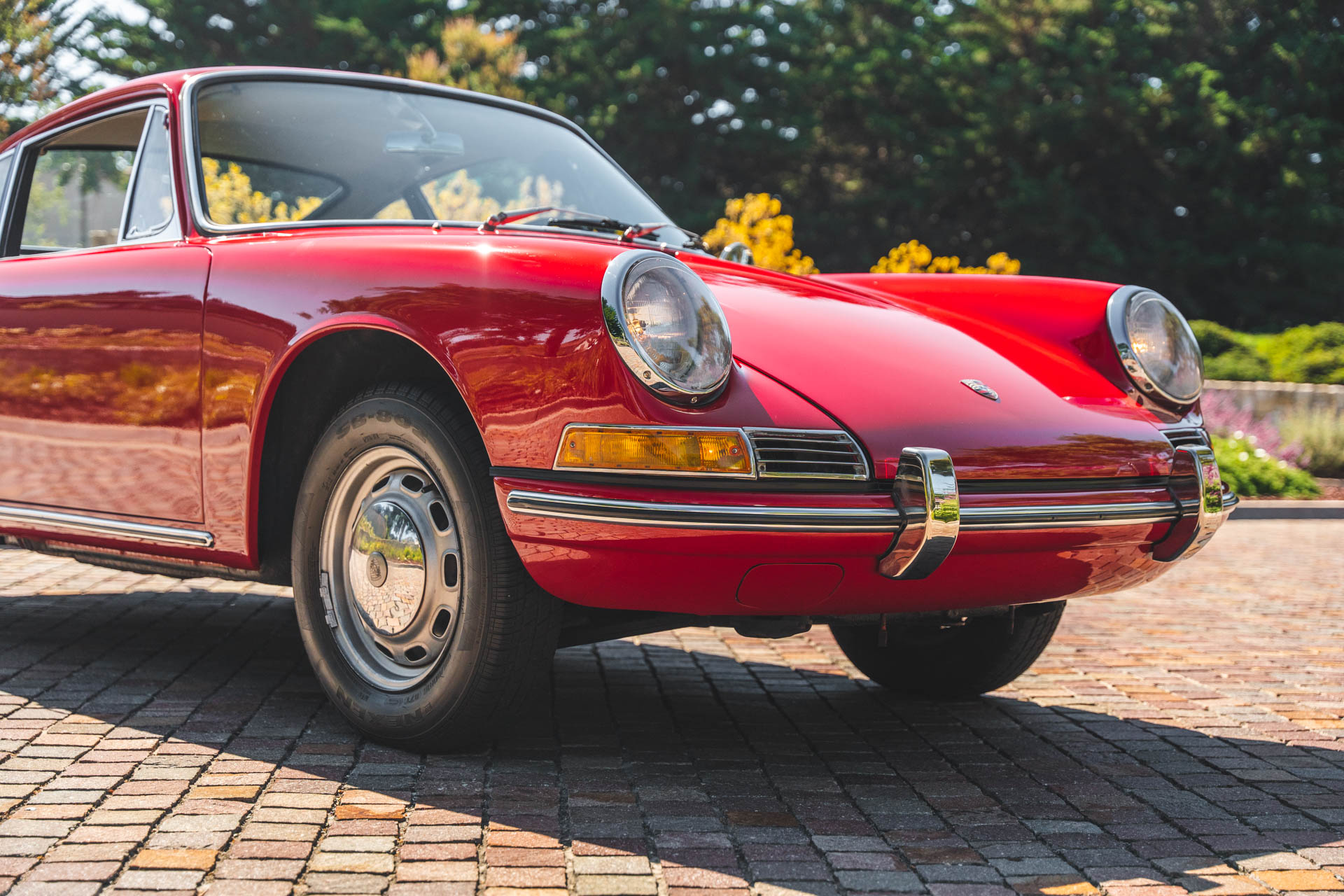 This Porsche 912 coupe was purchased by the current owner’s father as a gift for her upon her discharge from the military in 1965. Delivered in January 1966, it has since remained in the bay area with black-on-yellow California plates and been driven approximately 325k miles. The car has been twice refinished in its original shade of Signal Red, and it was ordered with a five-speed manual gearbox, black leatherette upholstery, and Dunlop tires. Notable work over the past 20 years consisted of a rebuild of the 1.6-liter flat-four, retrimming the interior, and most recently a respray of the exterior in 2016. This SWB 912 coupe is now offered on dealer consignment with a window sticker, service records dating to the 1960s, handwritten notes, black California plates, and a clean California title.