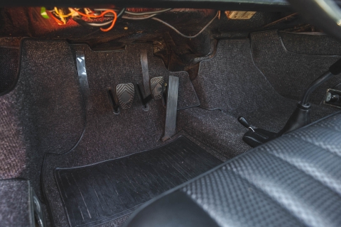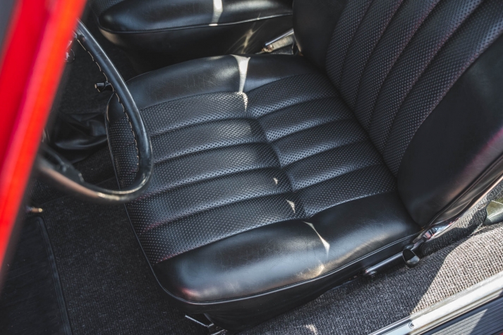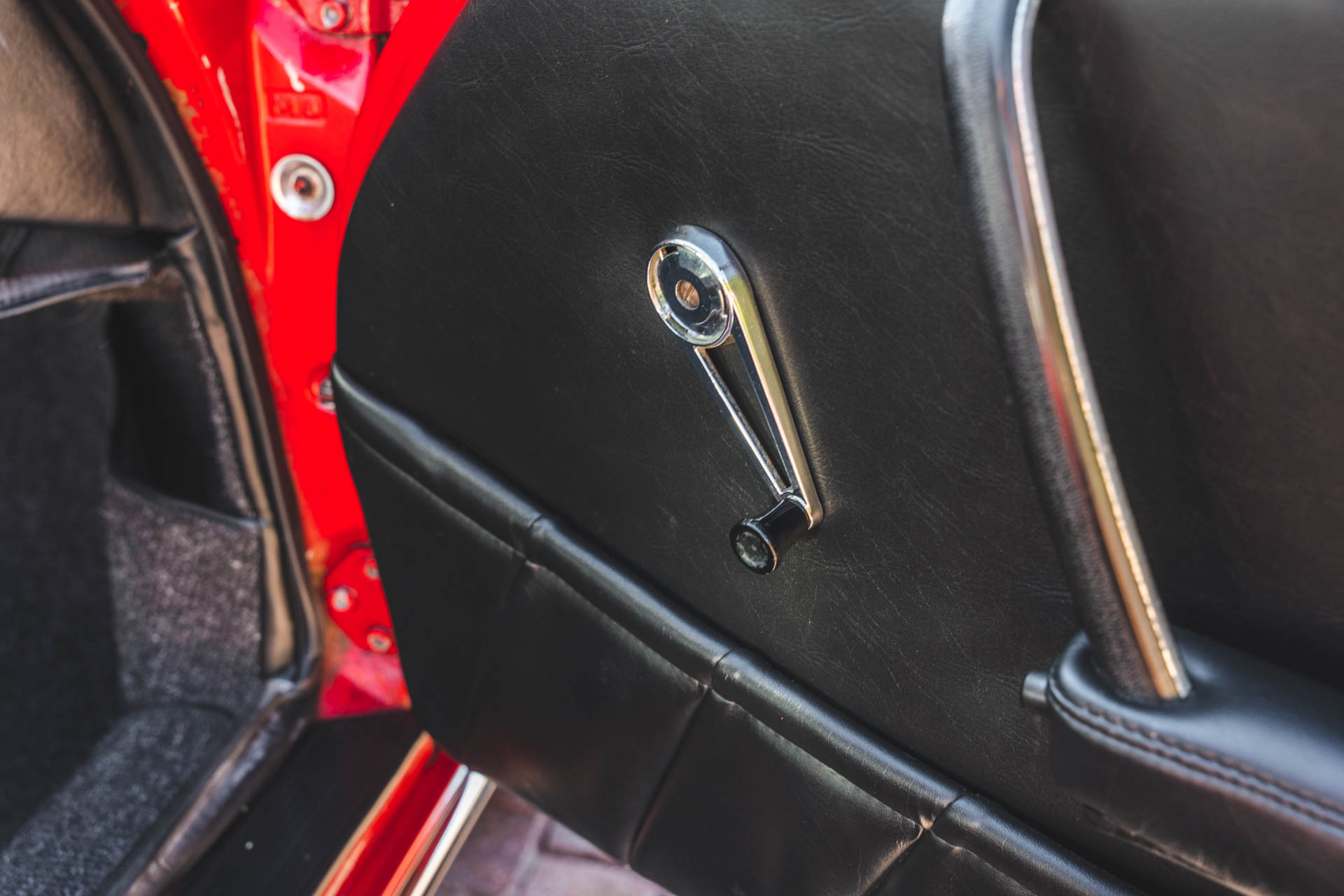 The car was ordered with black leatherette upholstery, and the cabin was retrimmed in 2010 by ABC Auto Upholstery in San Jose.
